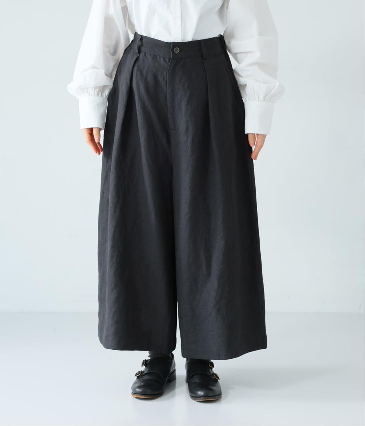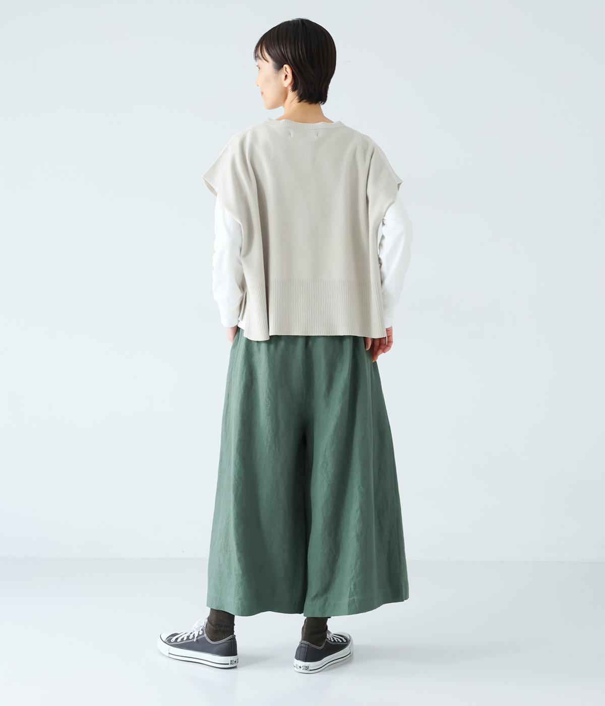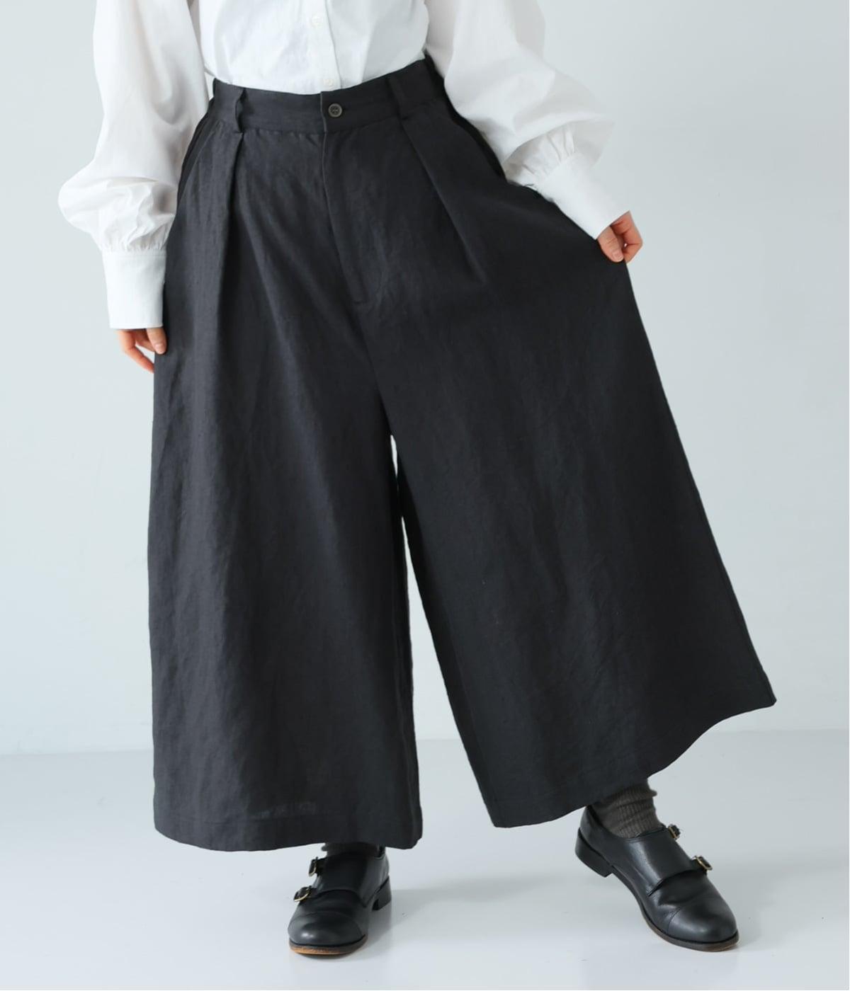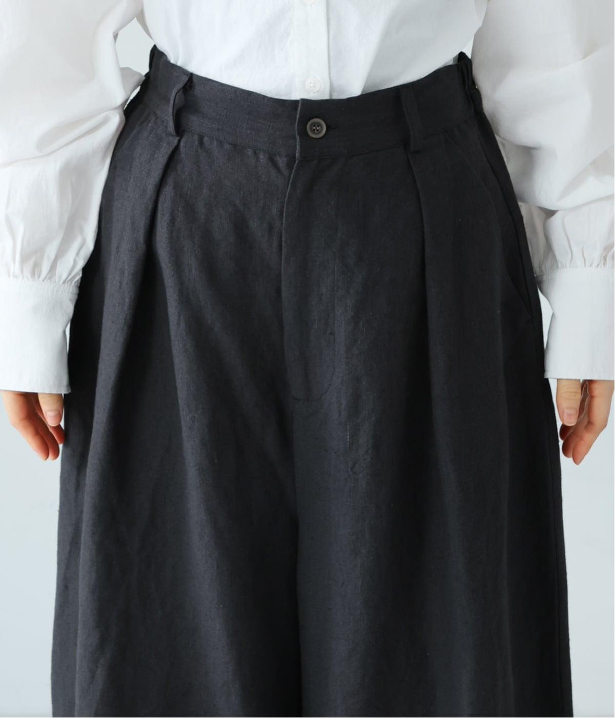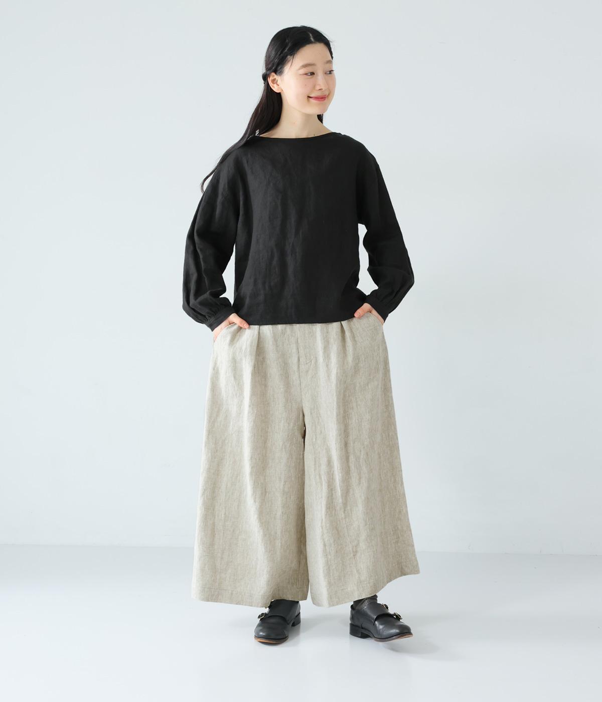 自然な佇まいのリネン生地をたっぷりと使用したワイドパンツ。スカート見えするボリューム感が着こなしのバランスを整え、上半身をすっきりと見せてくれます。両脇には便利なポケットつき。後ろウエストはゴム仕様で、快適なはき心地です。