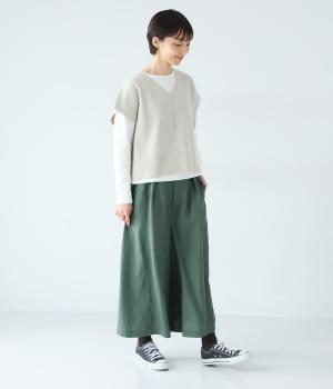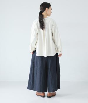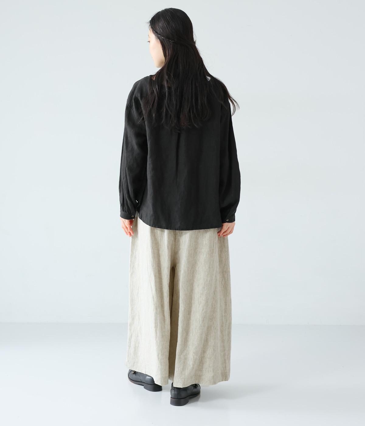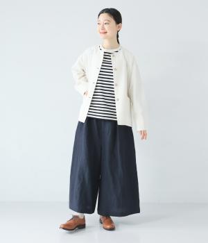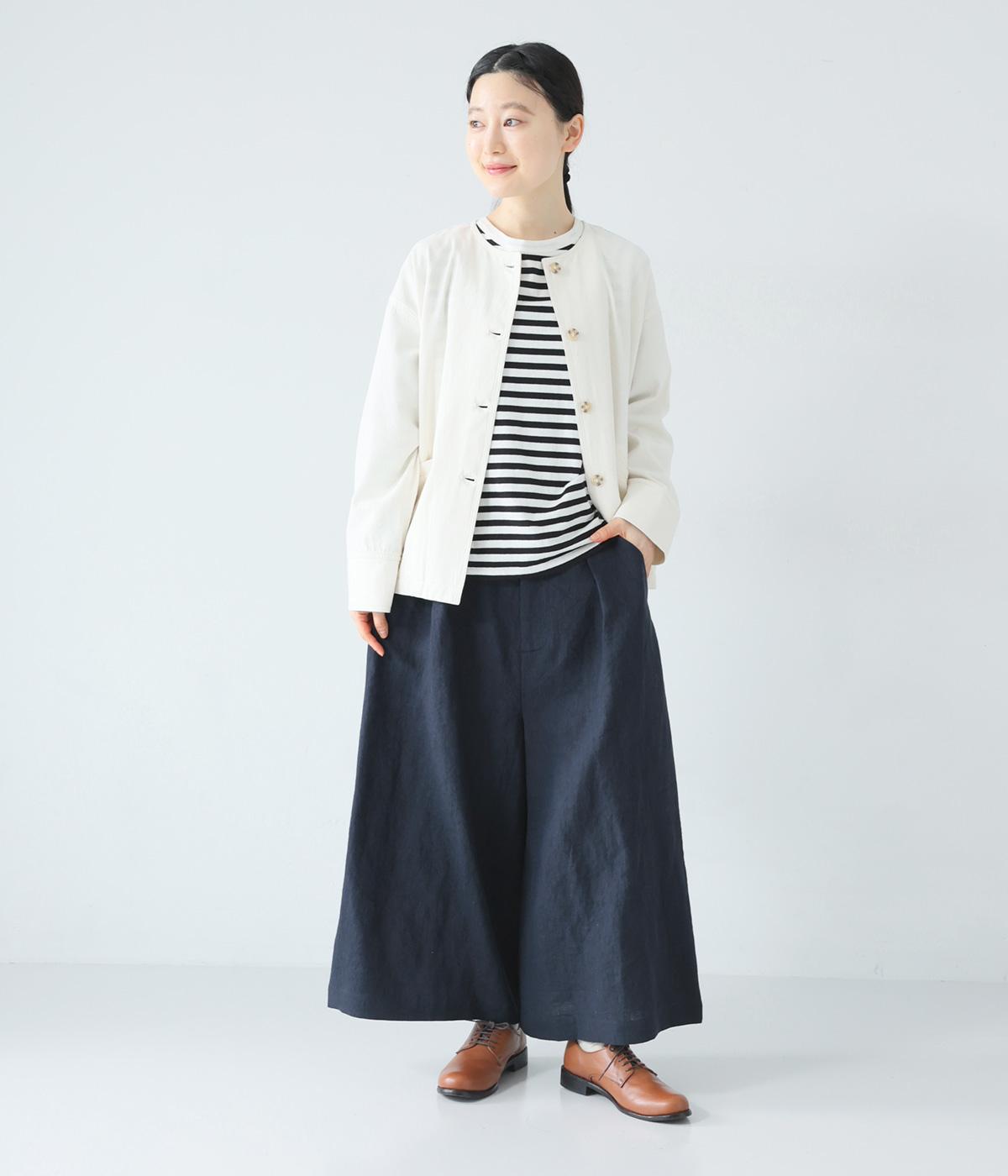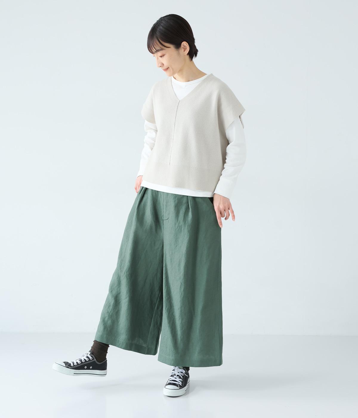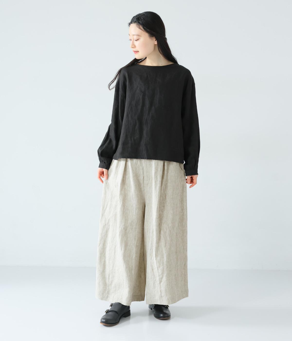 自然な佇まいのリネン生地をたっぷりと使用したワイドパンツ。スカート見えするボリューム感が着こなしのバランスを整え、上半身をすっきりと見せてくれます。両脇には便利なポケットつき。後ろウエストはゴム仕様で、快適なはき心地です。