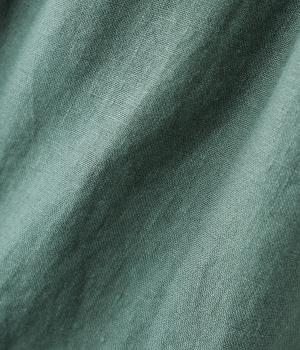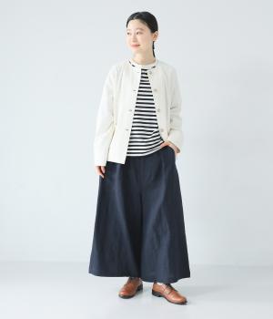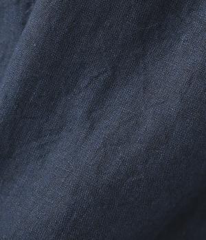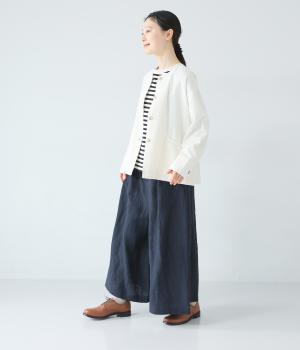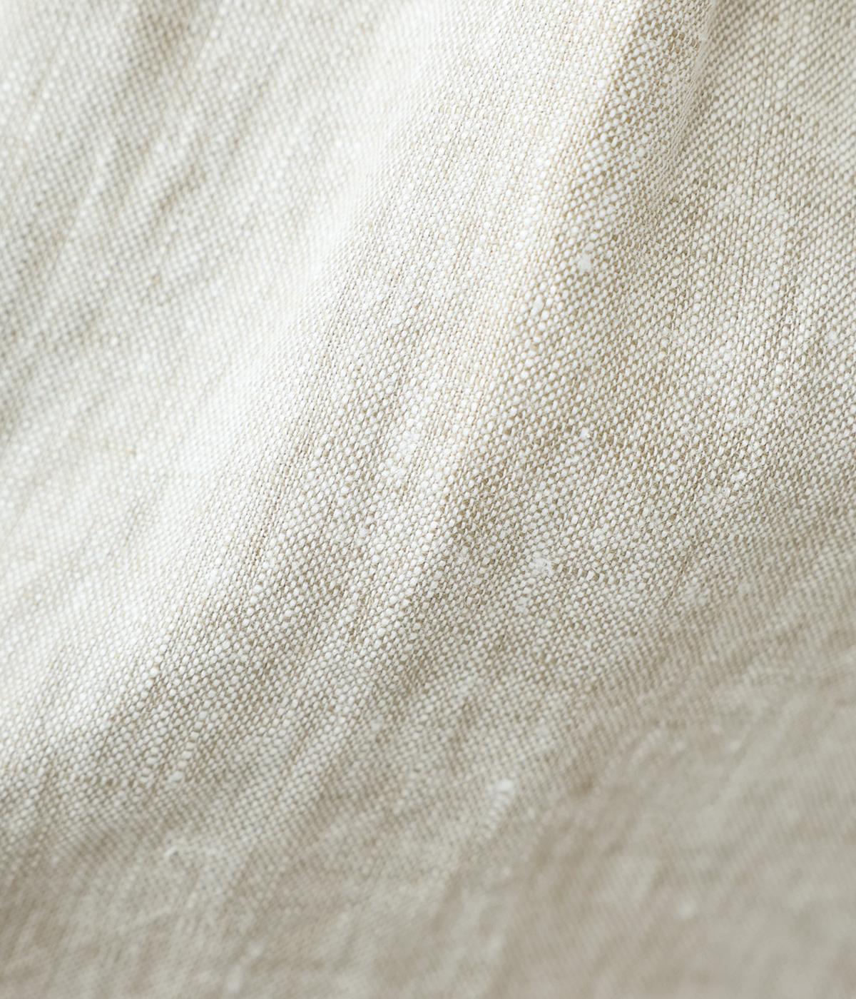 太めのリネン糸を使用した、しっかりとした厚みとハリコシのある生地です。立体的なシルエットをうみ、体のラインを拾いにくいのが魅力。リネン特有のナチュラルで上質な風合いを存分にたのしめます。