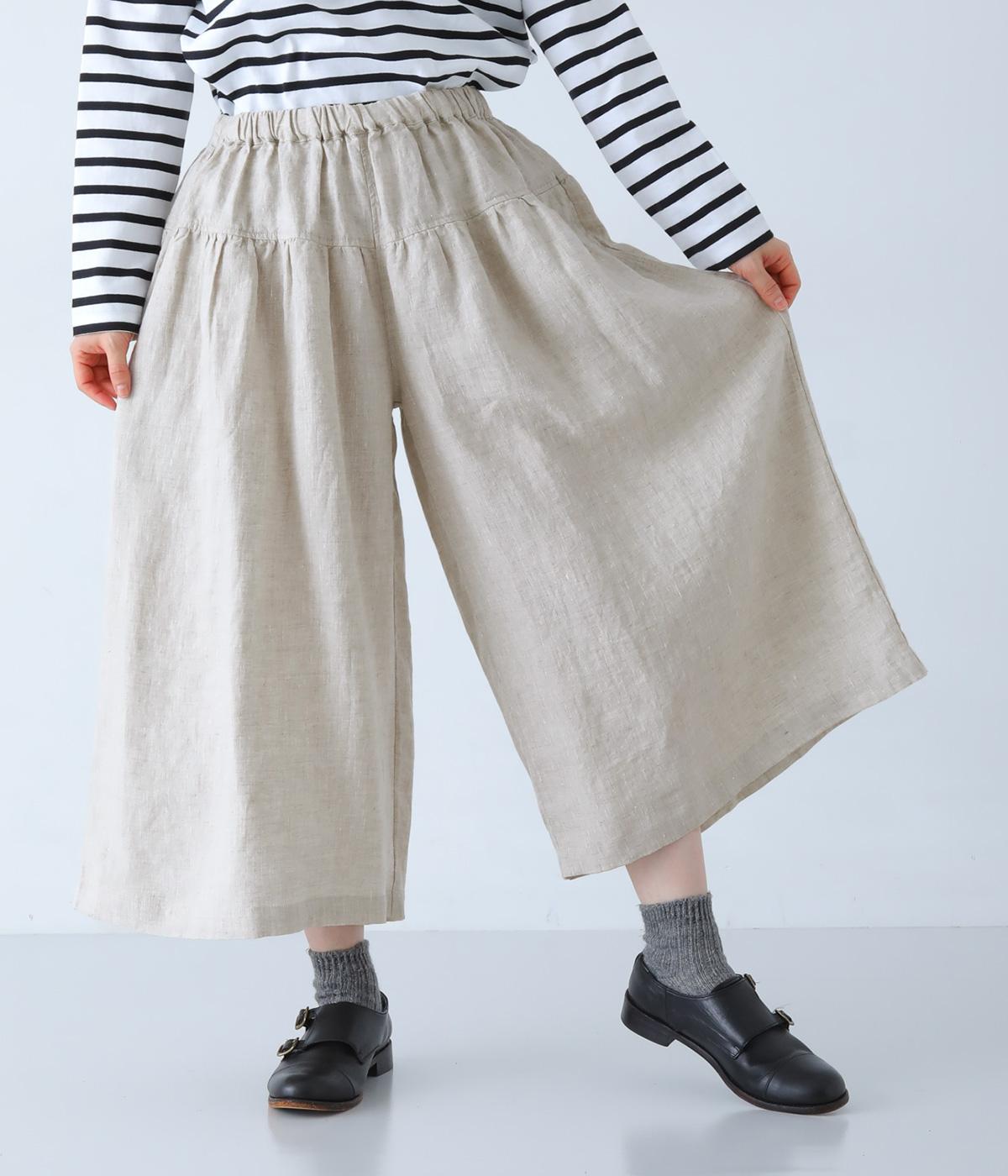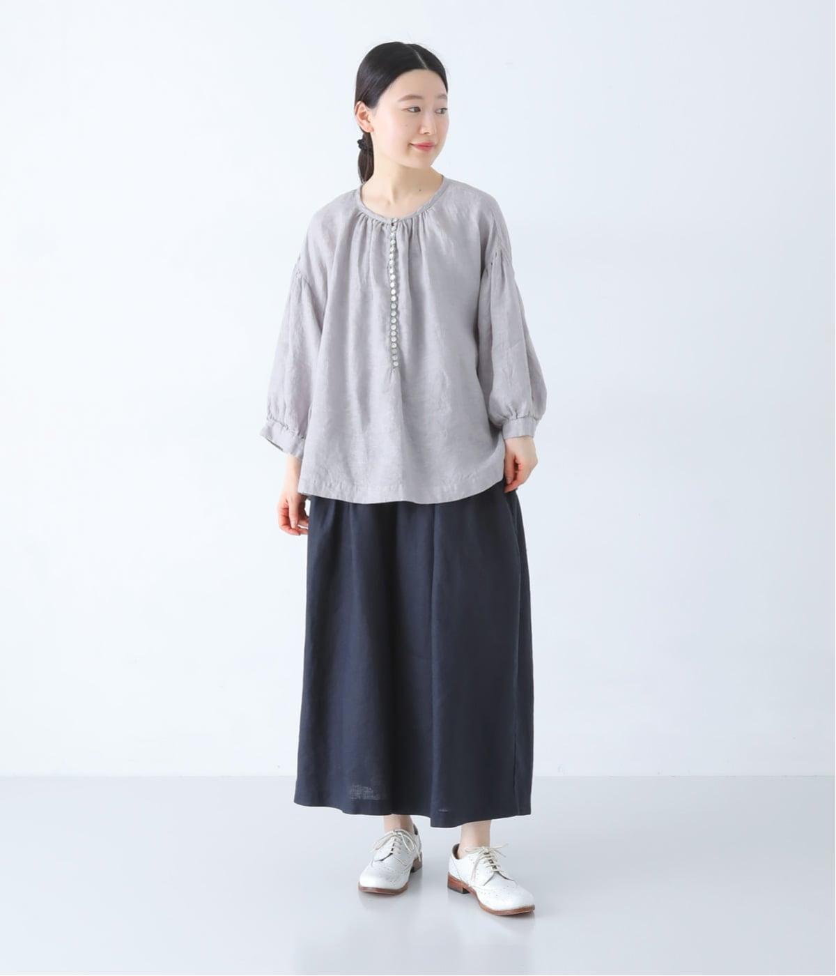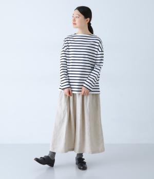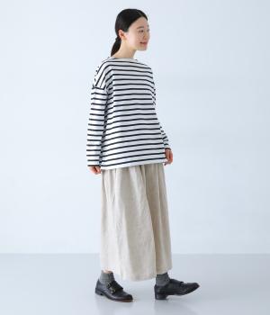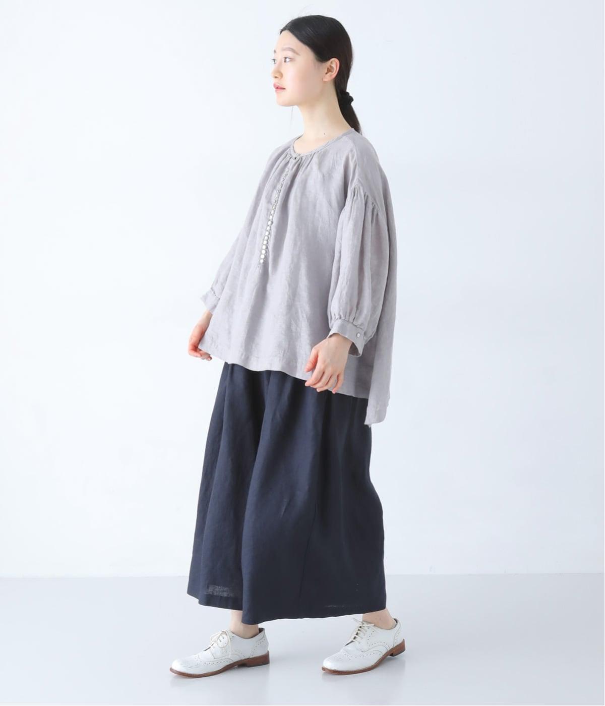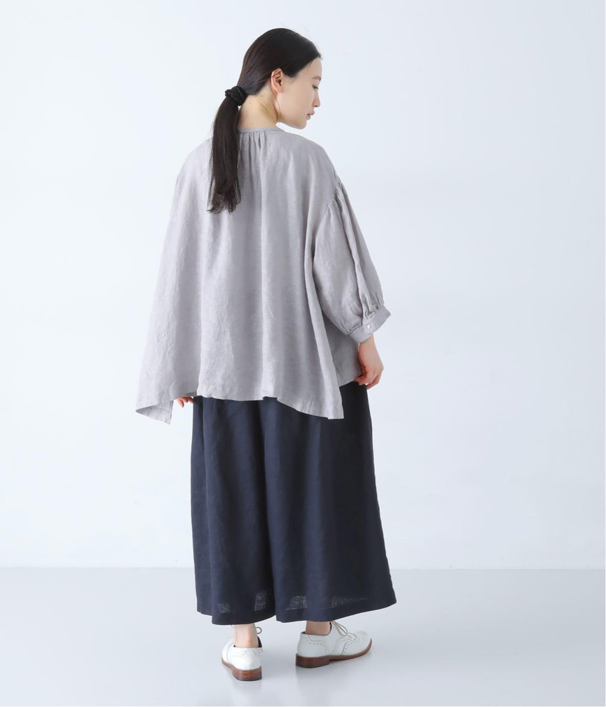 さらりとした肌ざわりのリネン素材を使用。ふんわりとやわらかく、軽やかな風合いです。リラックスして快適に着用できます。