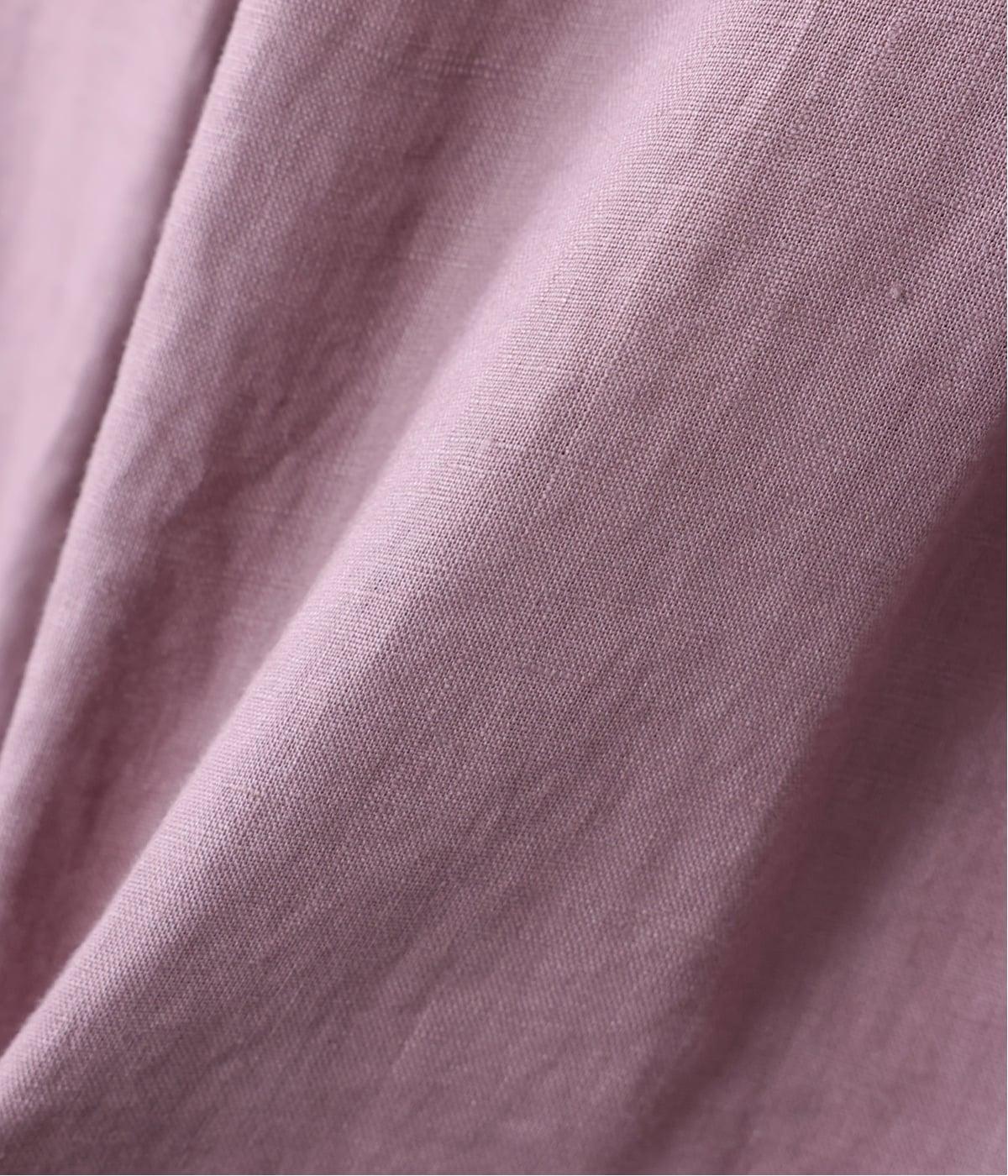 肌にまとわりつかないさらりとした質感のリネン生地です。ハリと落ち感のバランスが丁度よく、自然なシルエットを演出。はき込むほどにやわらかく、肌なじみよく変化します。透けをおさえる裏地つきです。