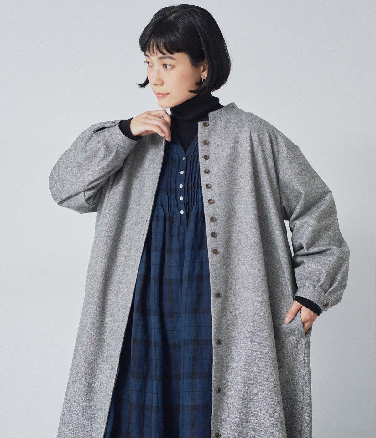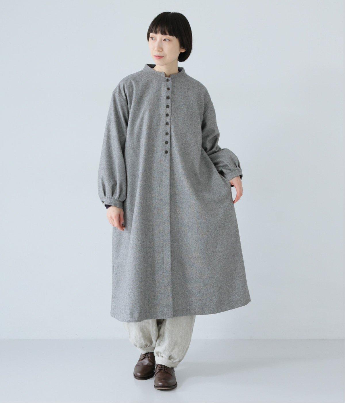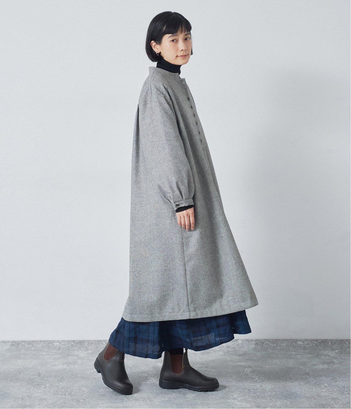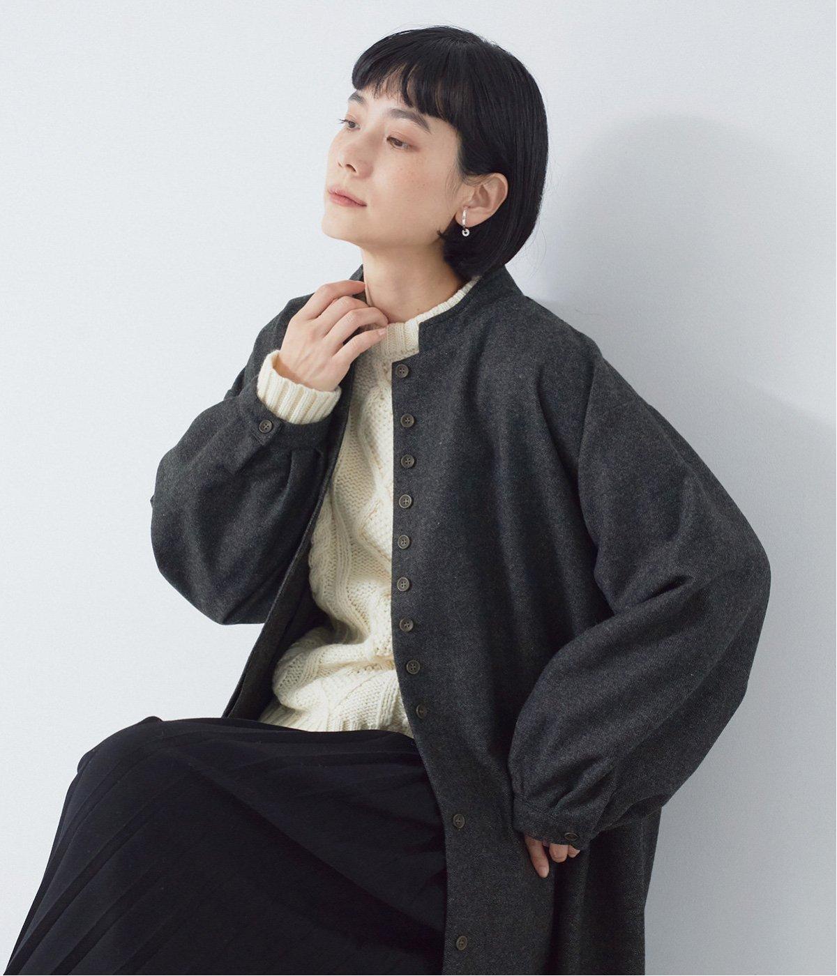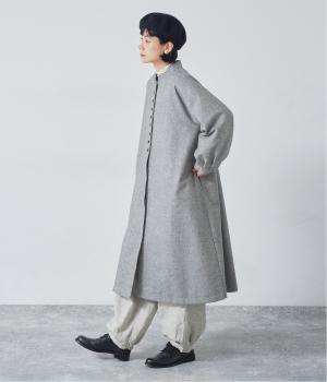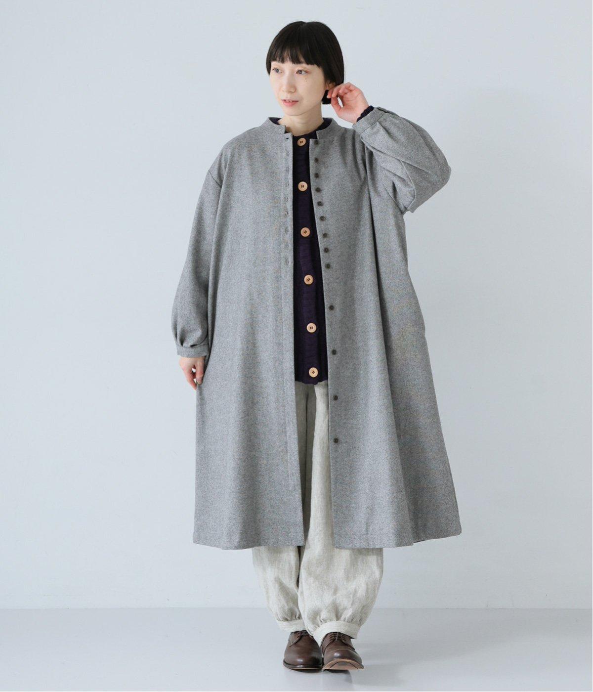 ウールツイードならではの、あたたかな着心地が魅力のロングコート。ふんわりとゆとりを持たせた袖と、裾にかけて自然に広がるシルエットで、軽やかな動きが生まれるデザインです。