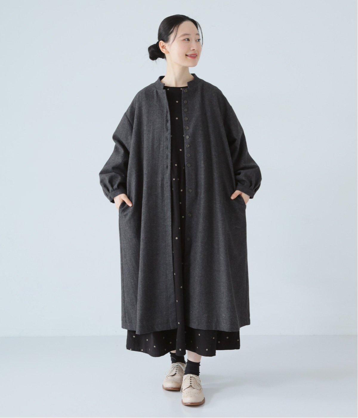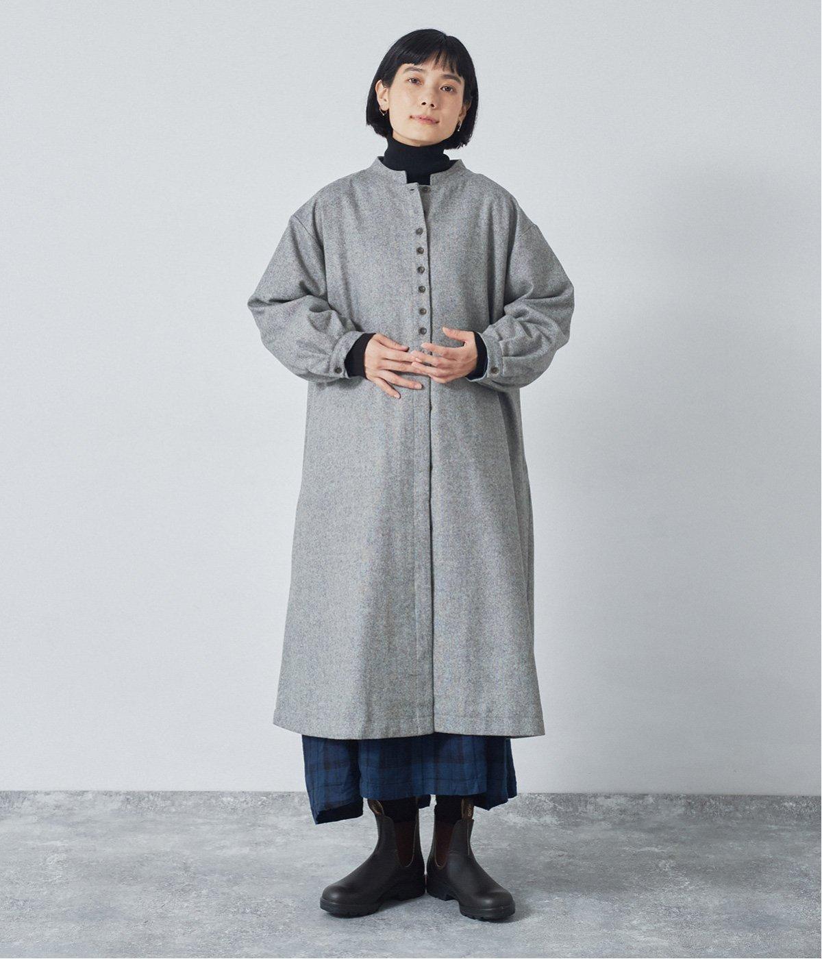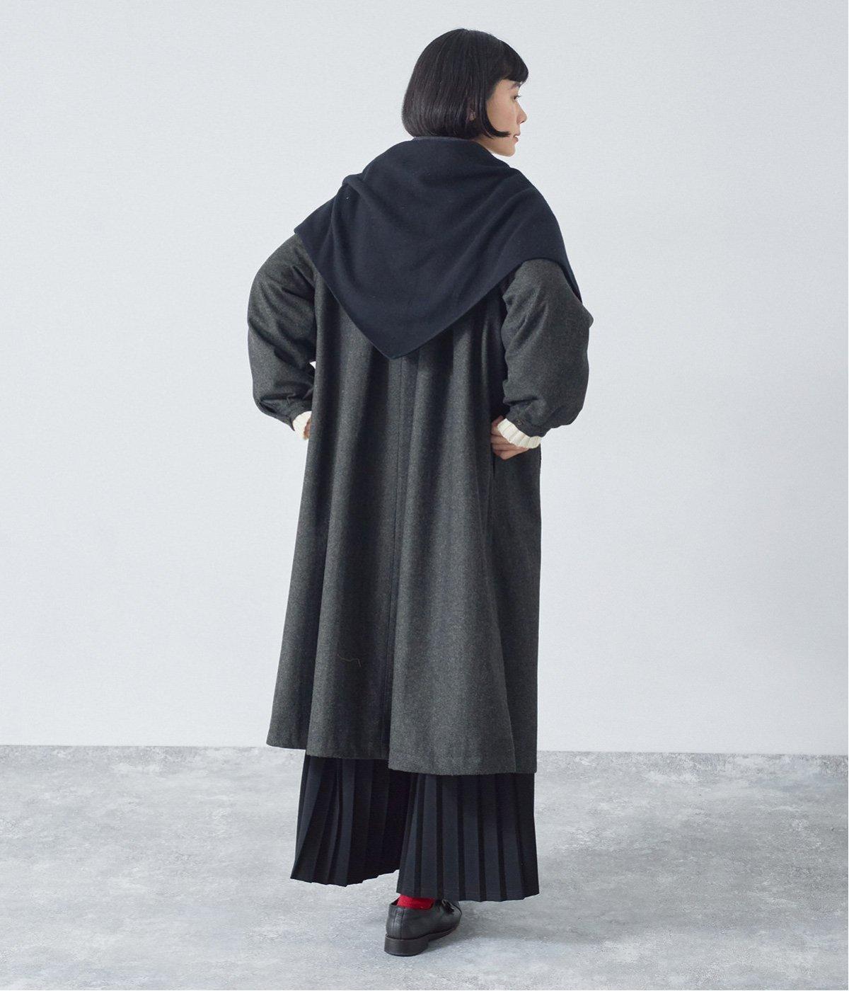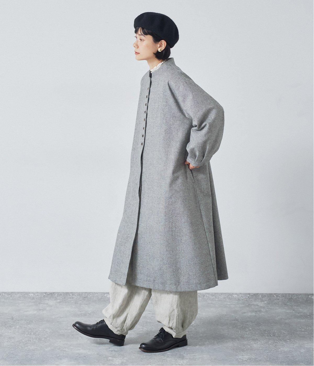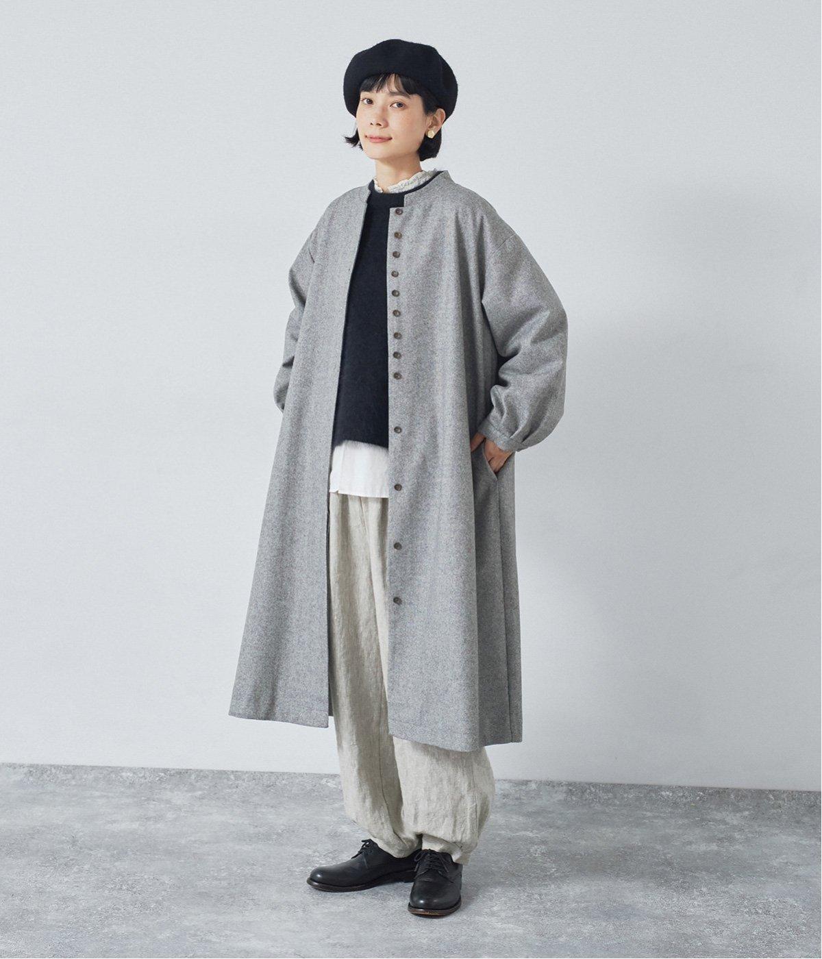 ウールツイードならではの、あたたかな着心地が魅力のロングコート。ふんわりとゆとりを持たせた袖と、裾にかけて自然に広がるシルエットで、軽やかな動きが生まれるデザインです。
