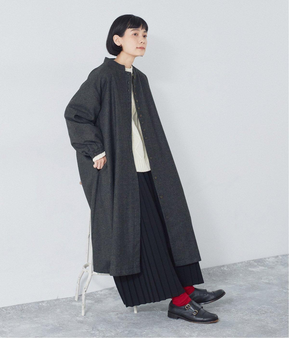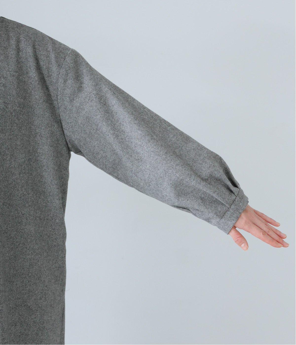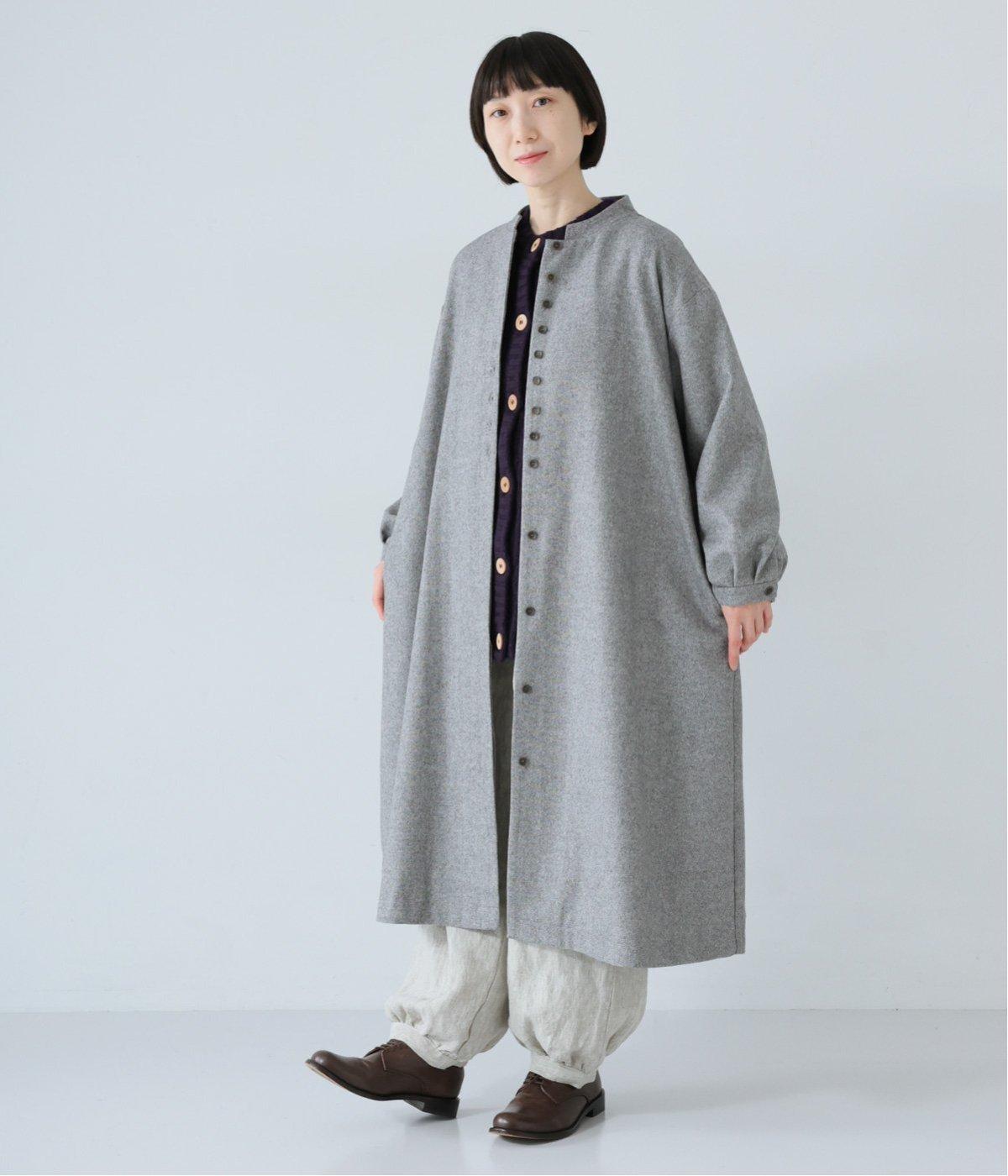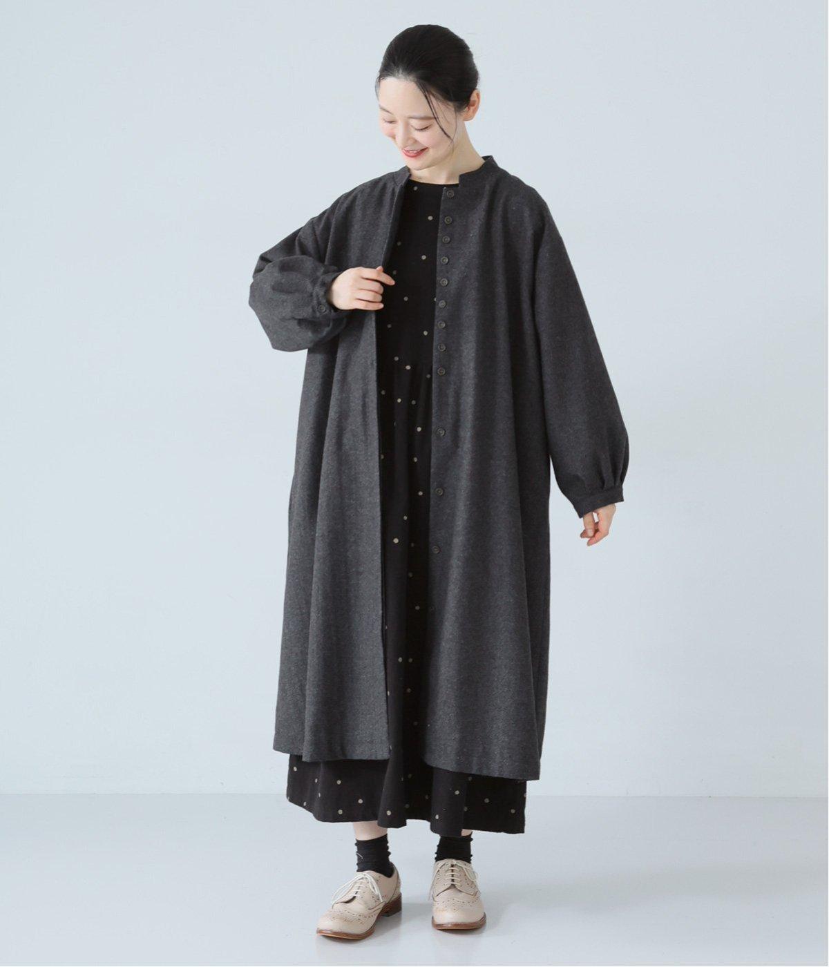 ウールツイードならではの、あたたかな着心地が魅力のロングコート。ふんわりとゆとりを持たせた袖と、裾にかけて自然に広がるシルエットで、軽やかな動きが生まれるデザインです。