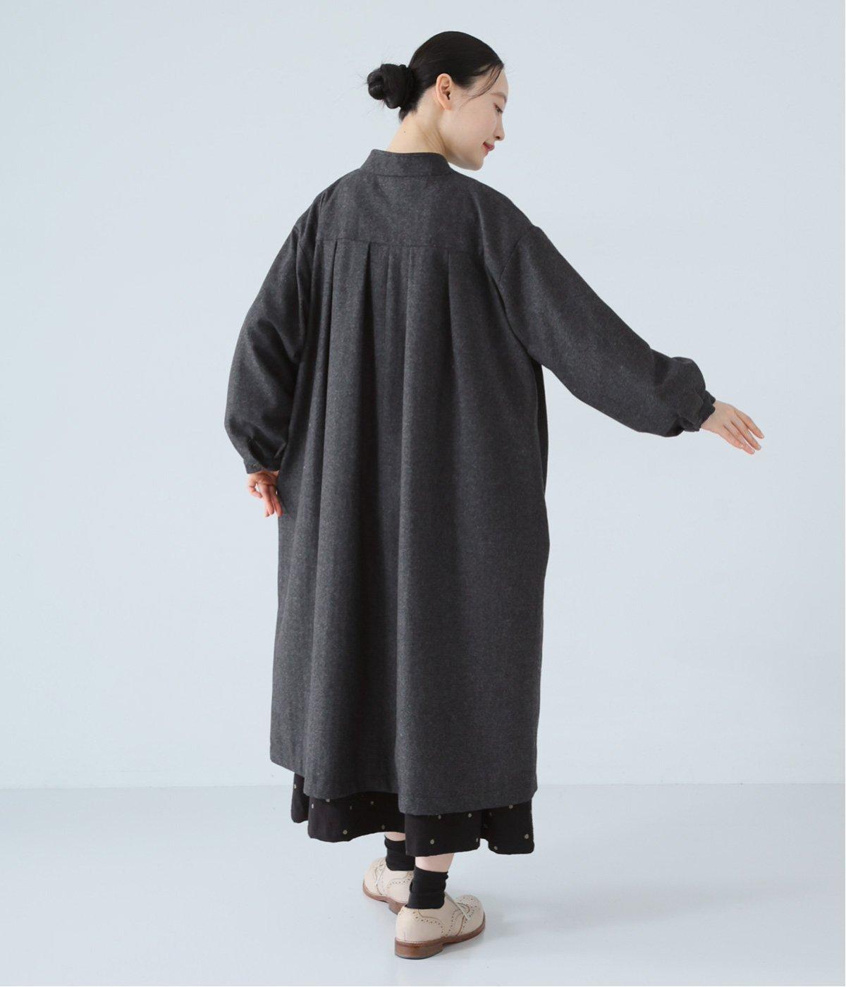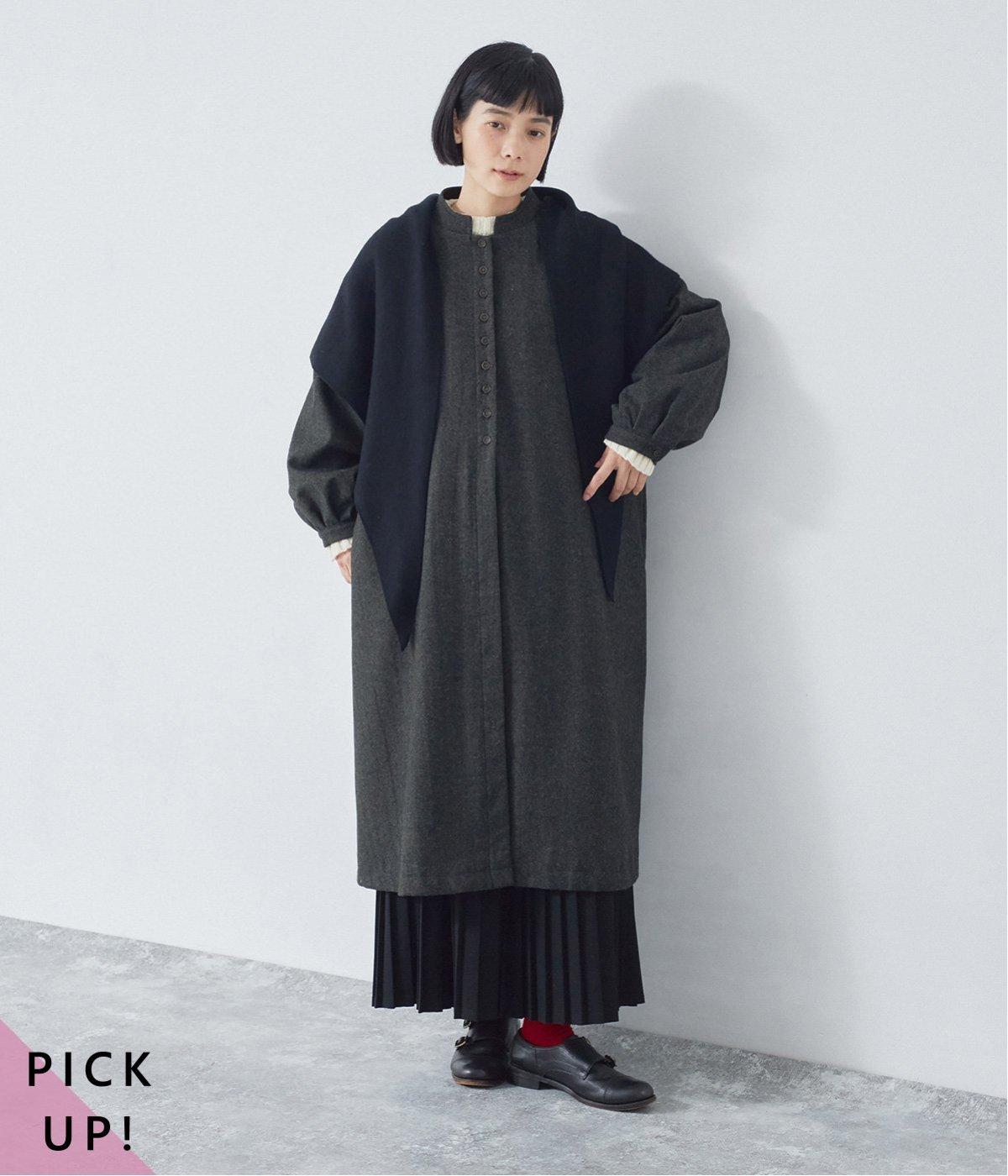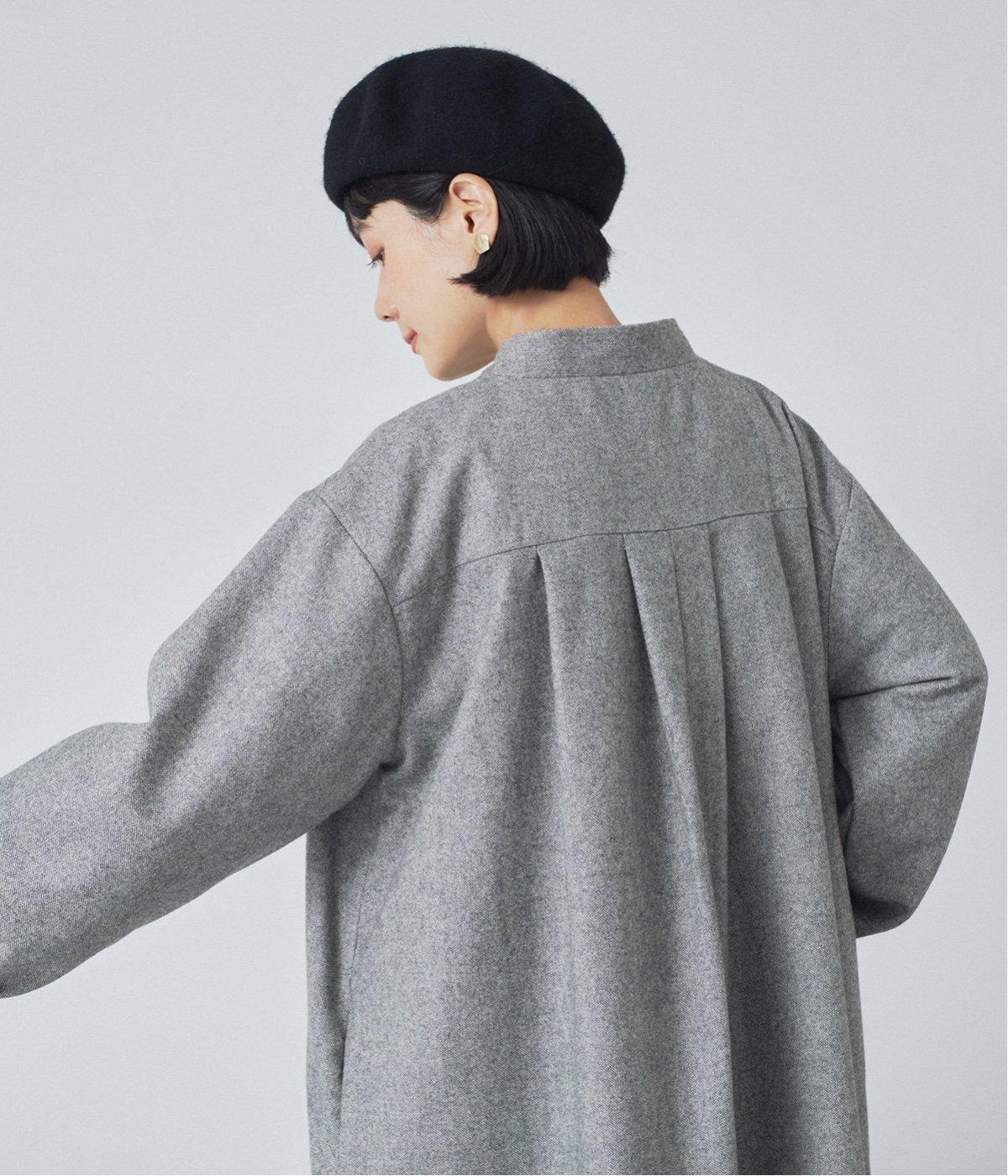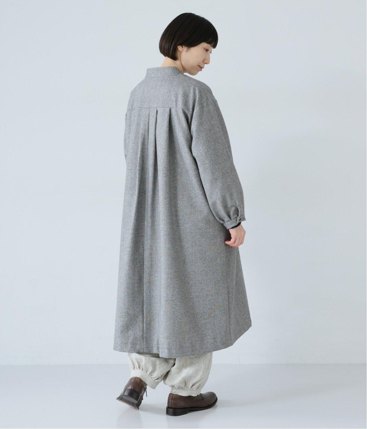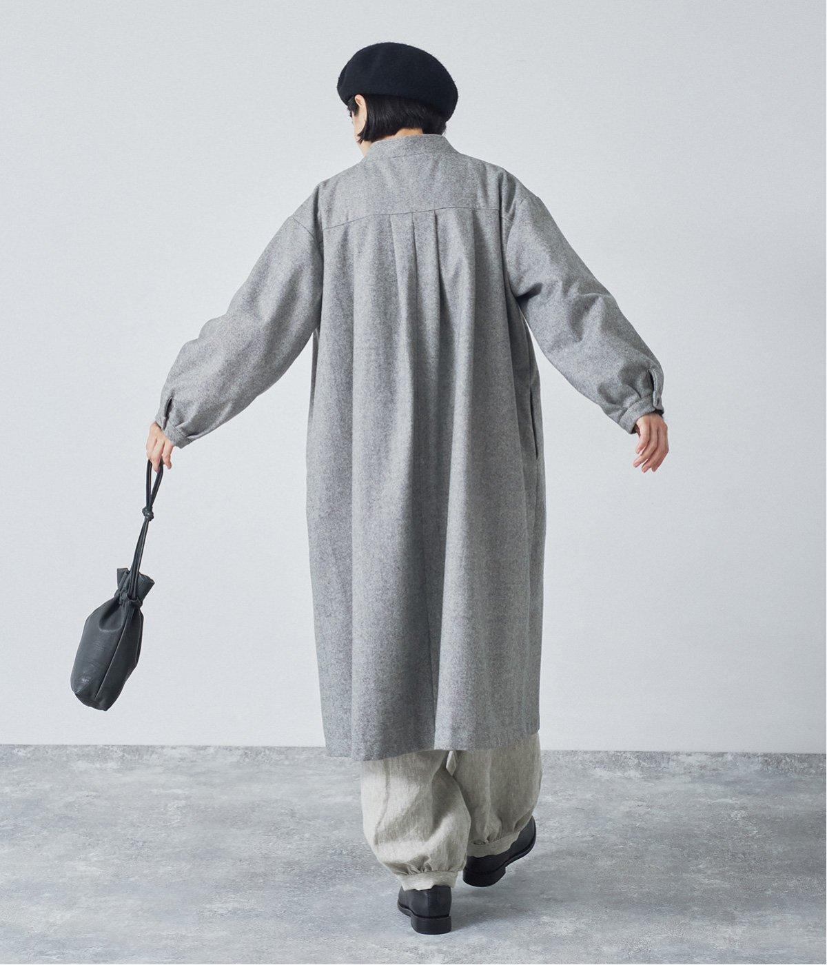 ウールツイードならではの、あたたかな着心地が魅力のロングコート。ふんわりとゆとりを持たせた袖と、裾にかけて自然に広がるシルエットで、軽やかな動きが生まれるデザインです。
