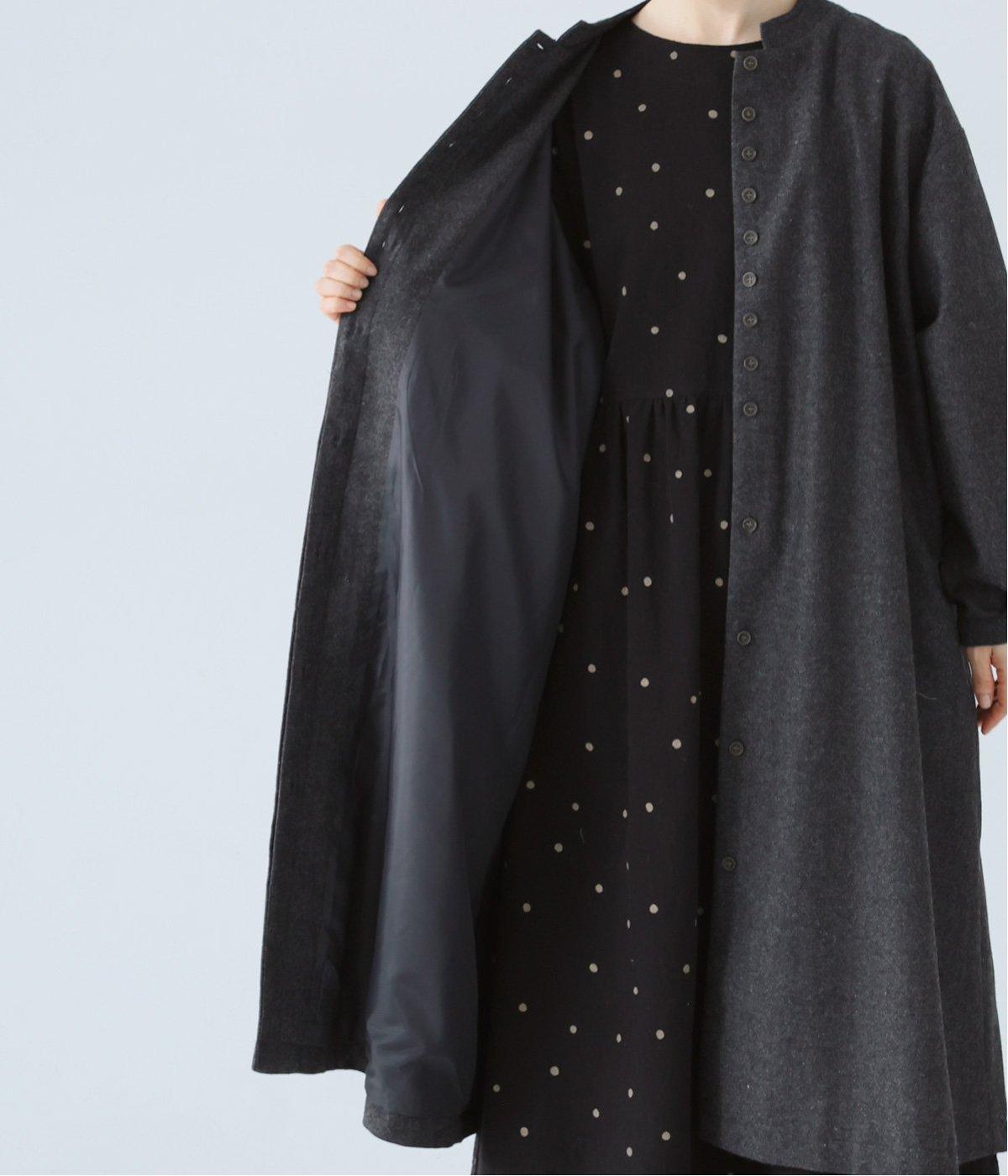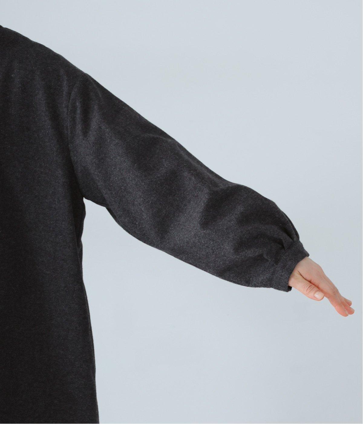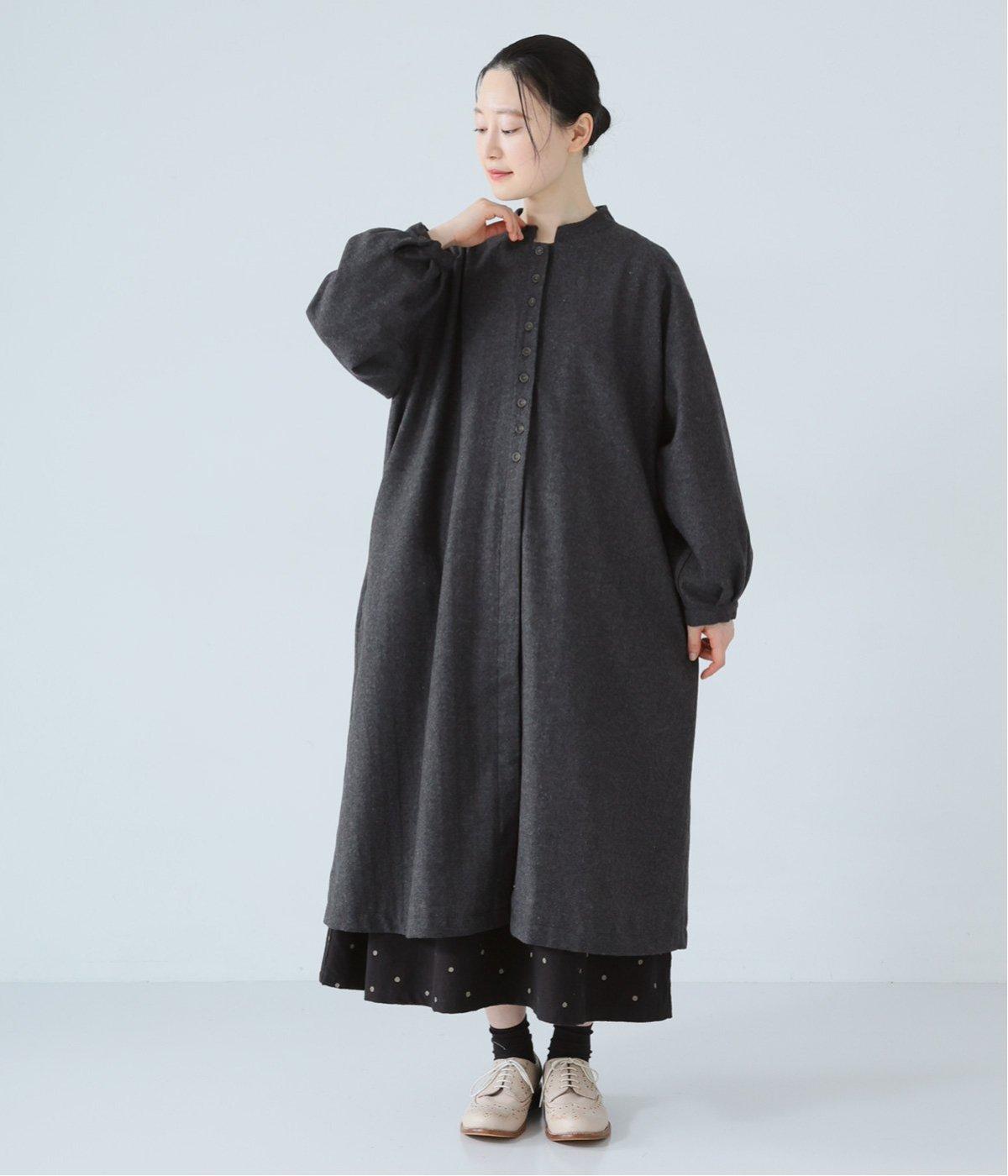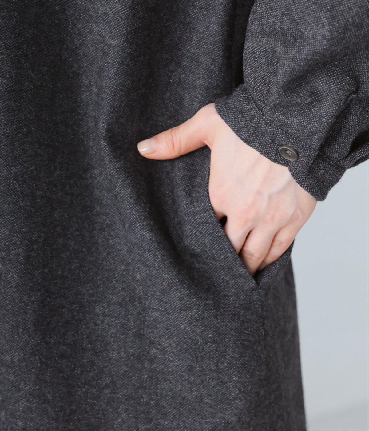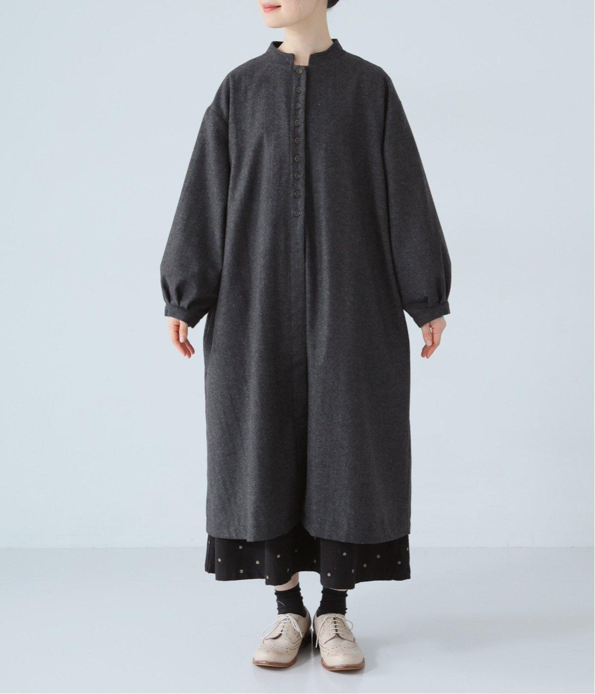 ウールツイードならではの、あたたかな着心地が魅力のロングコート。ふんわりとゆとりを持たせた袖と、裾にかけて自然に広がるシルエットで、軽やかな動きが生まれるデザインです。