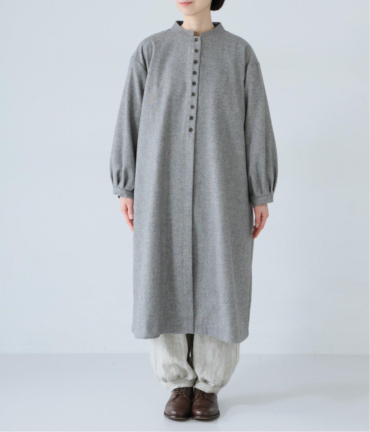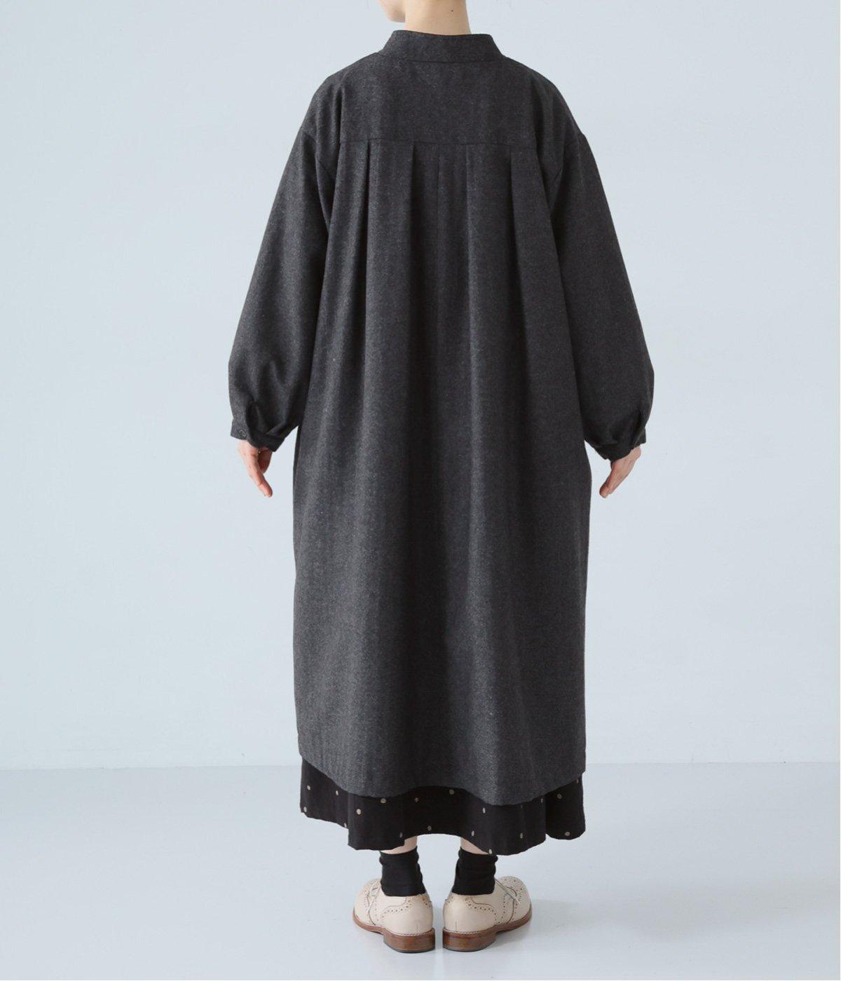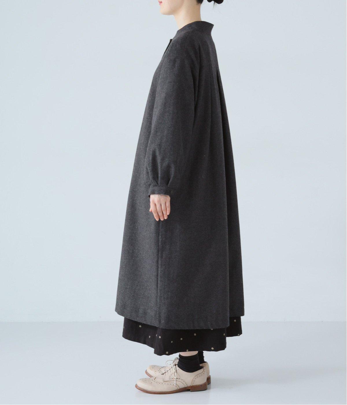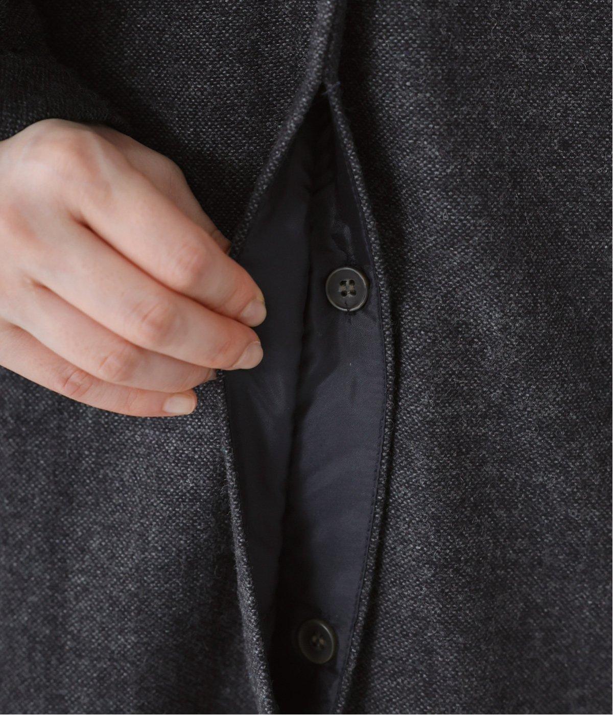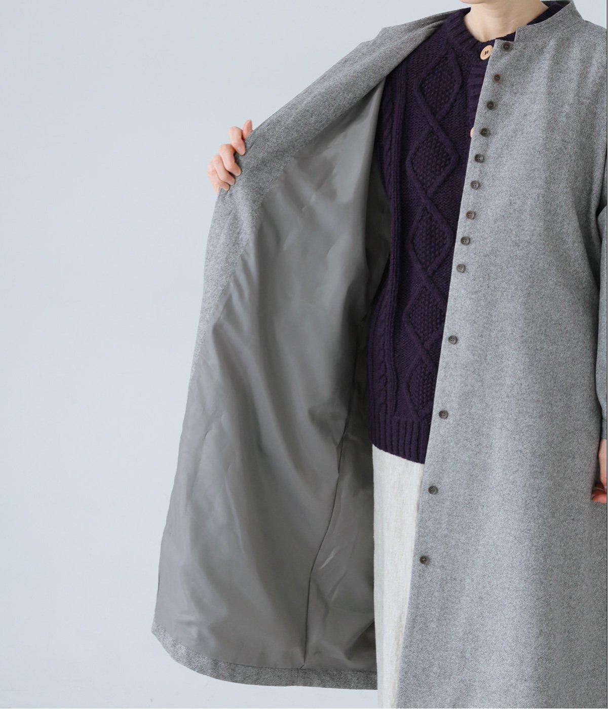 ウールツイードならではの、あたたかな着心地が魅力のロングコート。ふんわりとゆとりを持たせた袖と、裾にかけて自然に広がるシルエットで、軽やかな動きが生まれるデザインです。