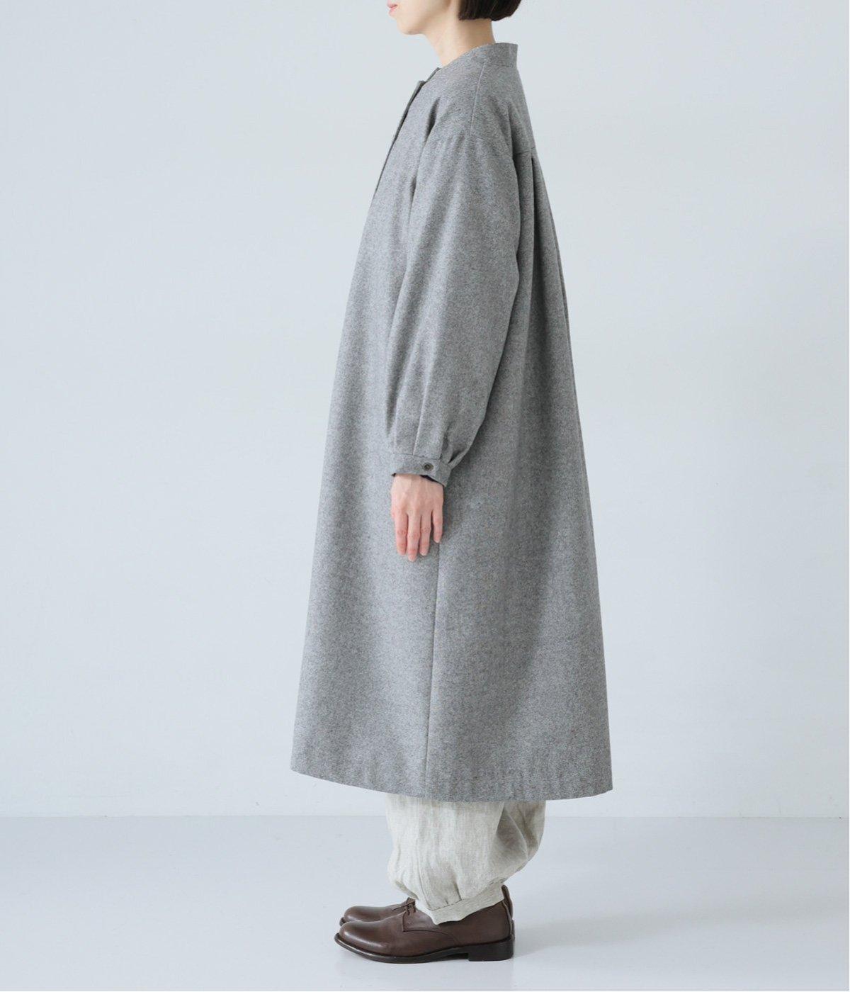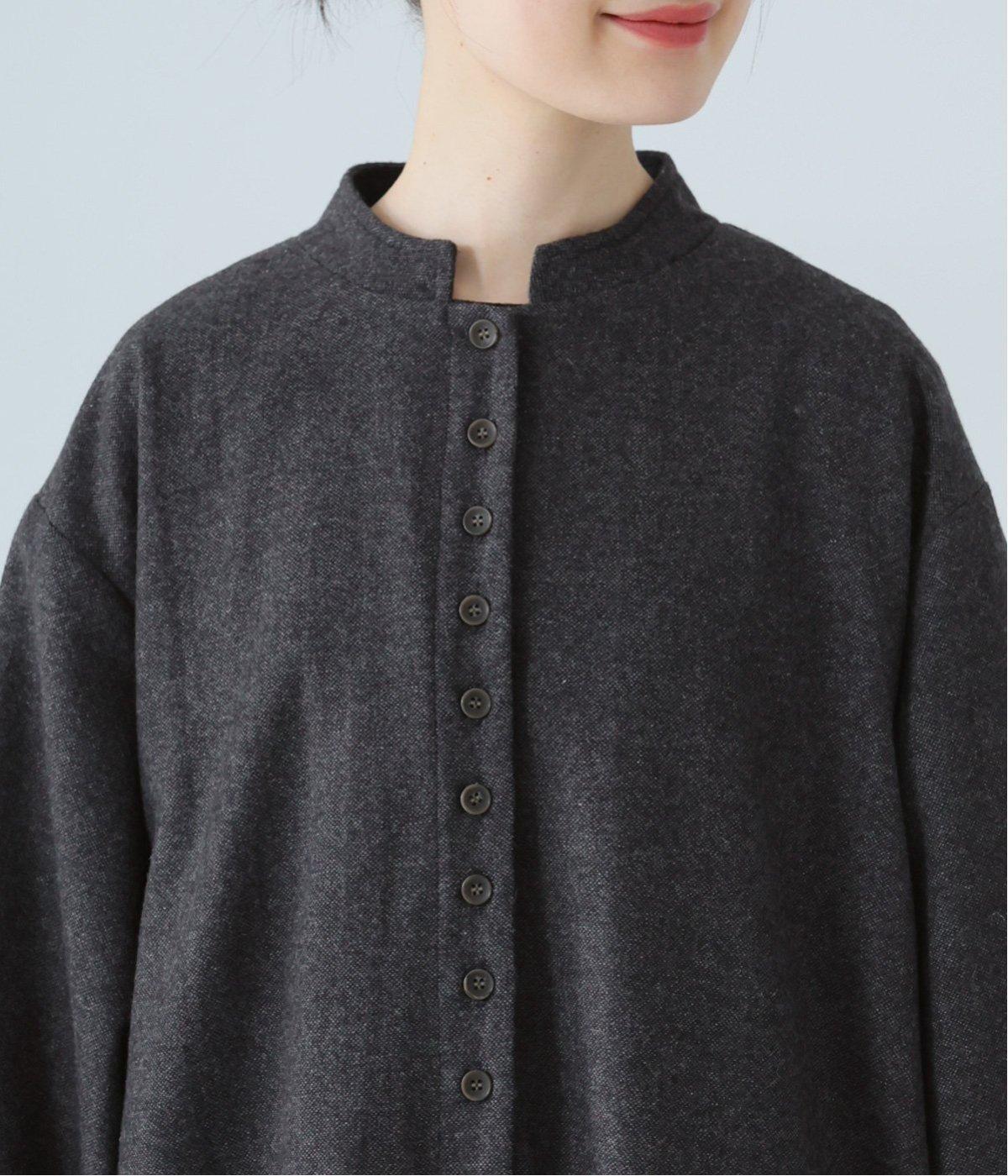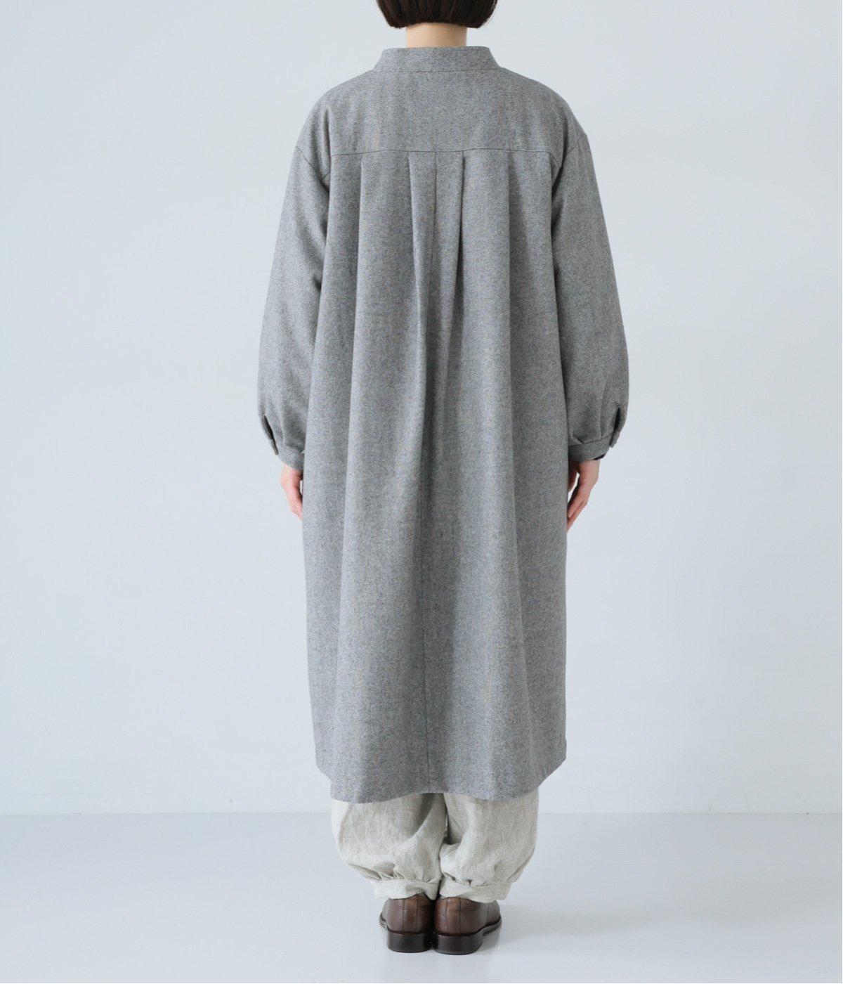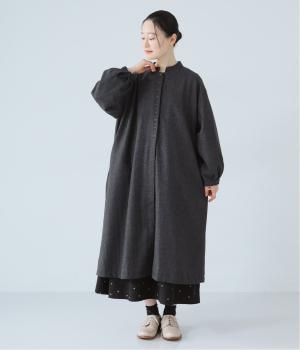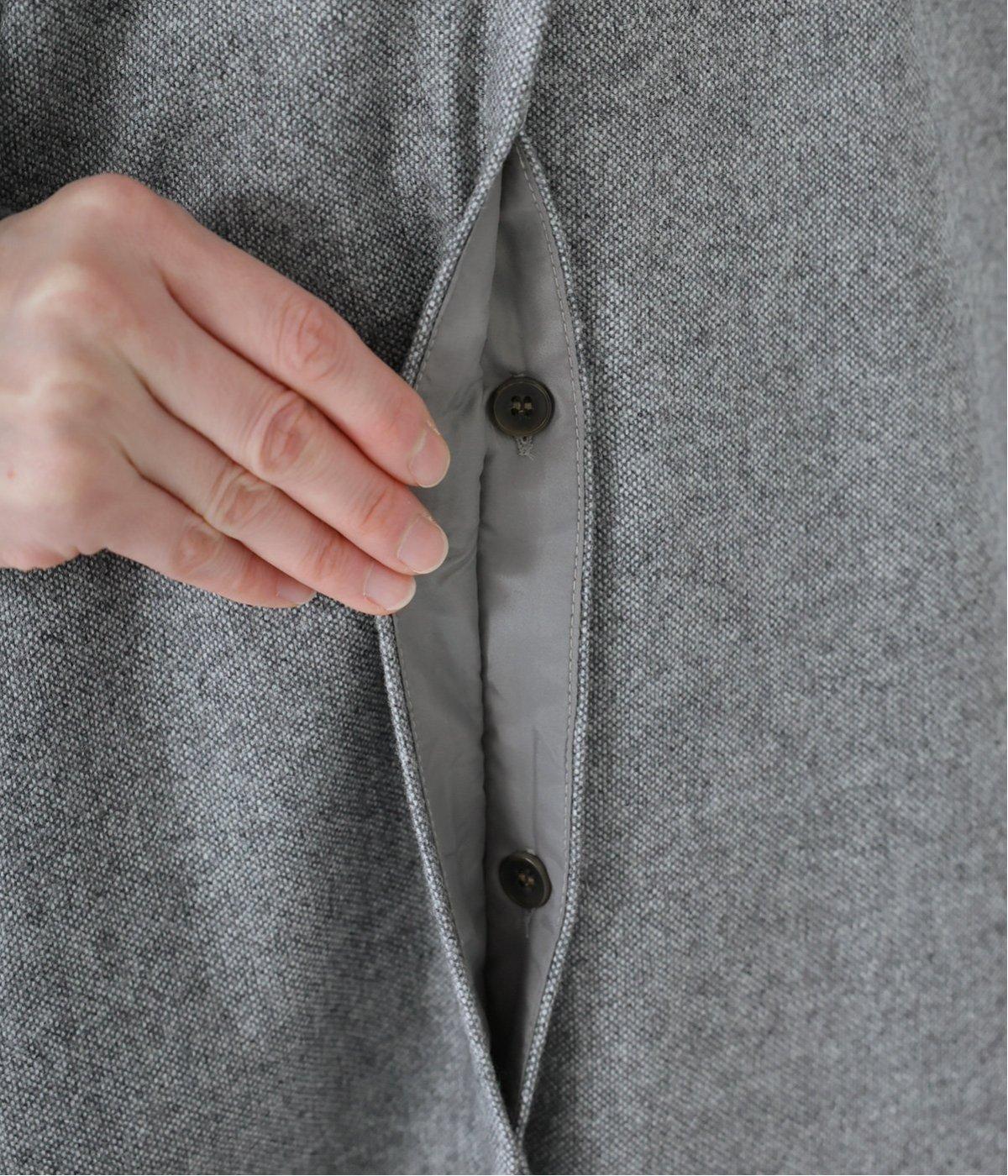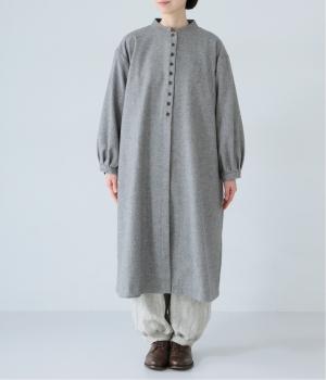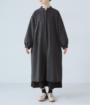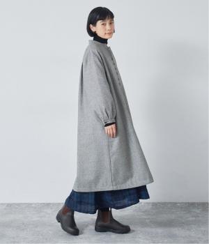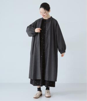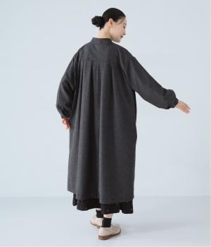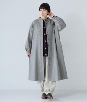 ボタンを留めると前立てがすっきりとし、ワンピースのような着こなしに。裾にほどよい広がりを持たせ、ロング丈でも重たくならず軽やかに見せることができます。