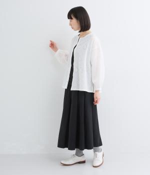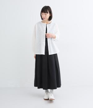 先染コットンWガーゼツイル織り布帛無地前あきフリルつきダブルボタンジャケット