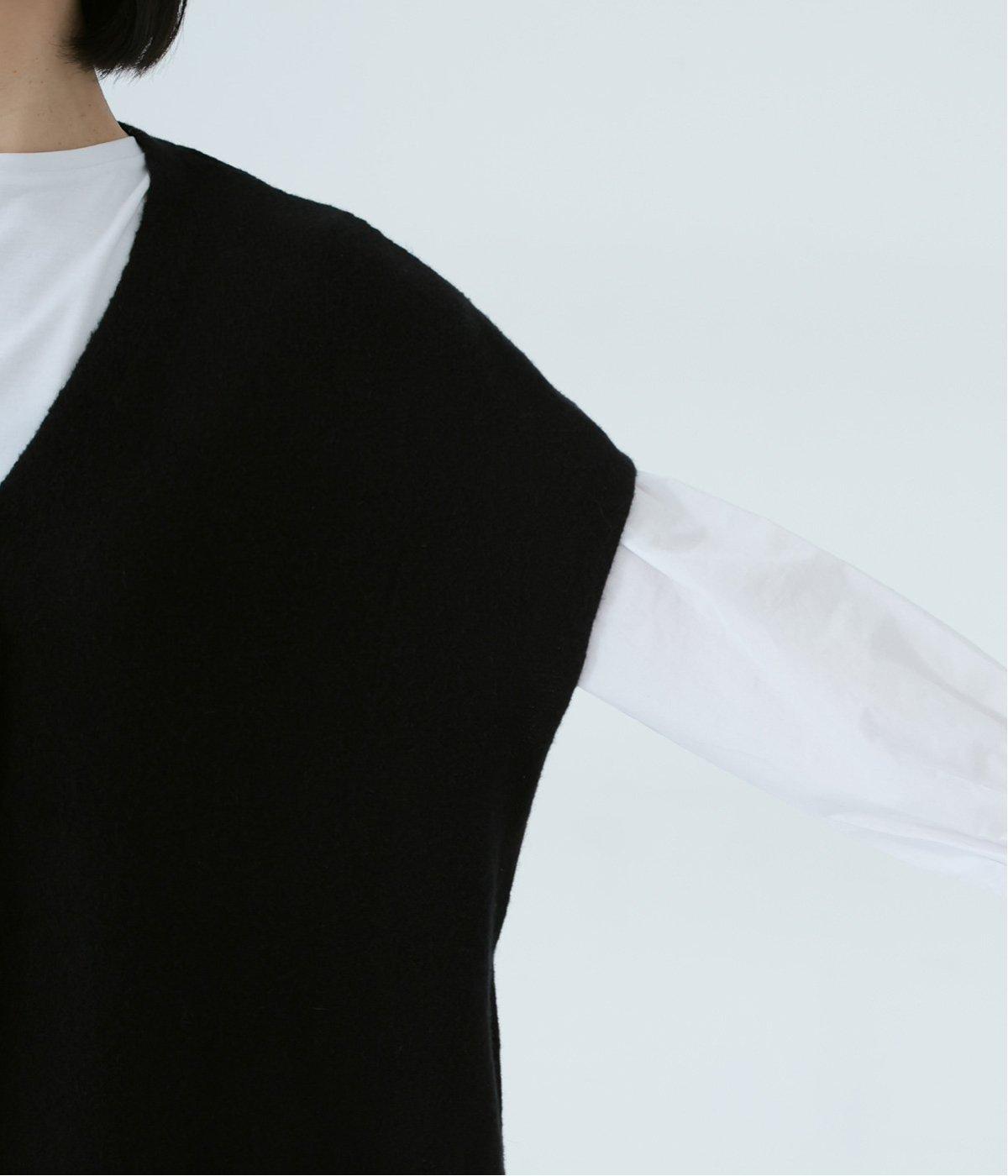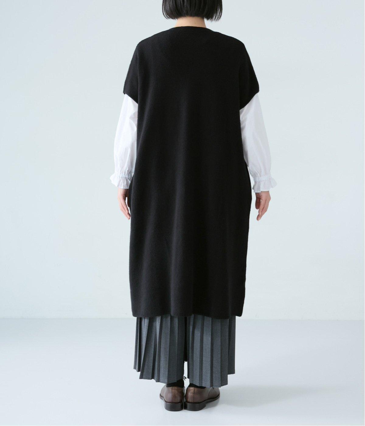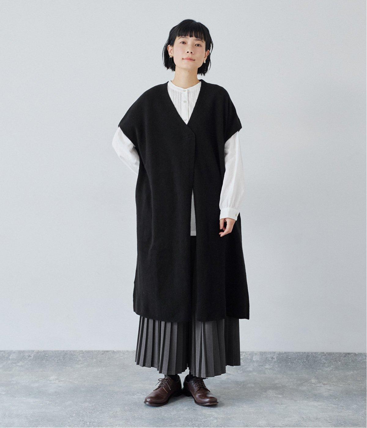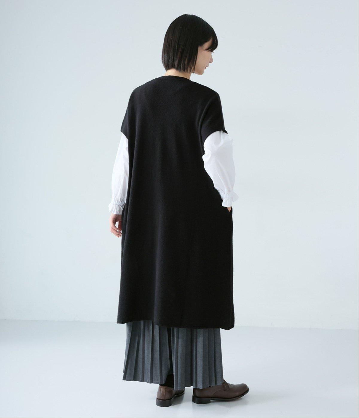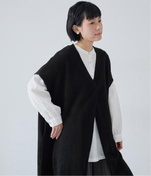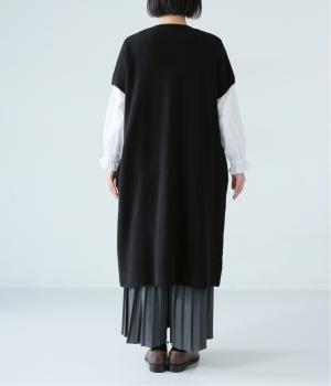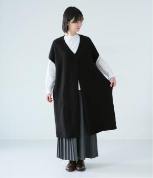さらりと重ねやすい軽い着心地のニットベスト。合わせるインナーを選ばず、センターのスリットですっきりとしたジレのような印象に。
