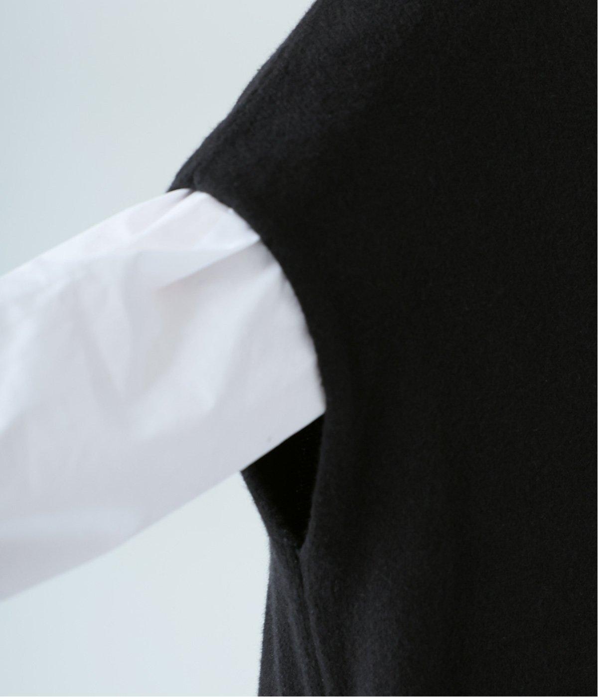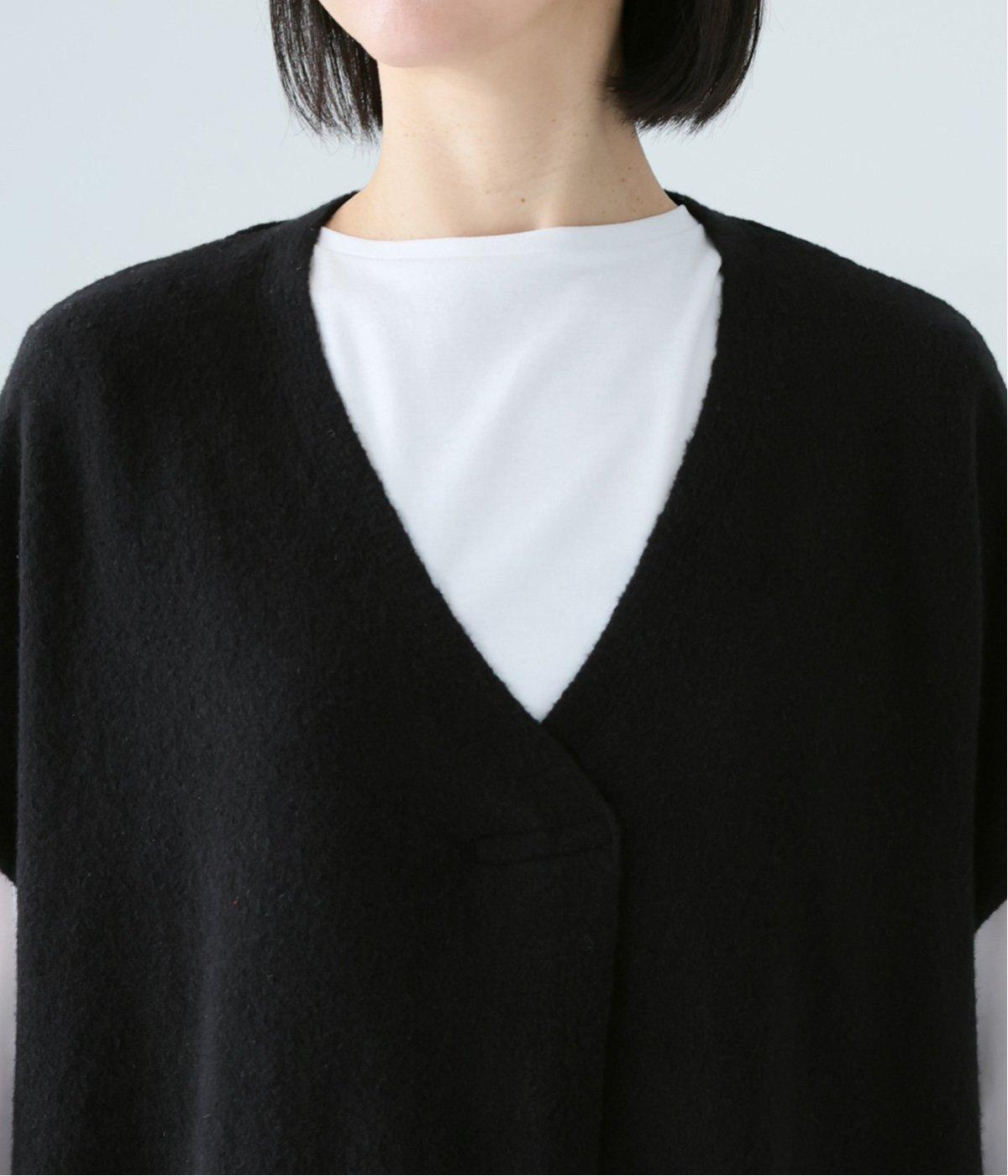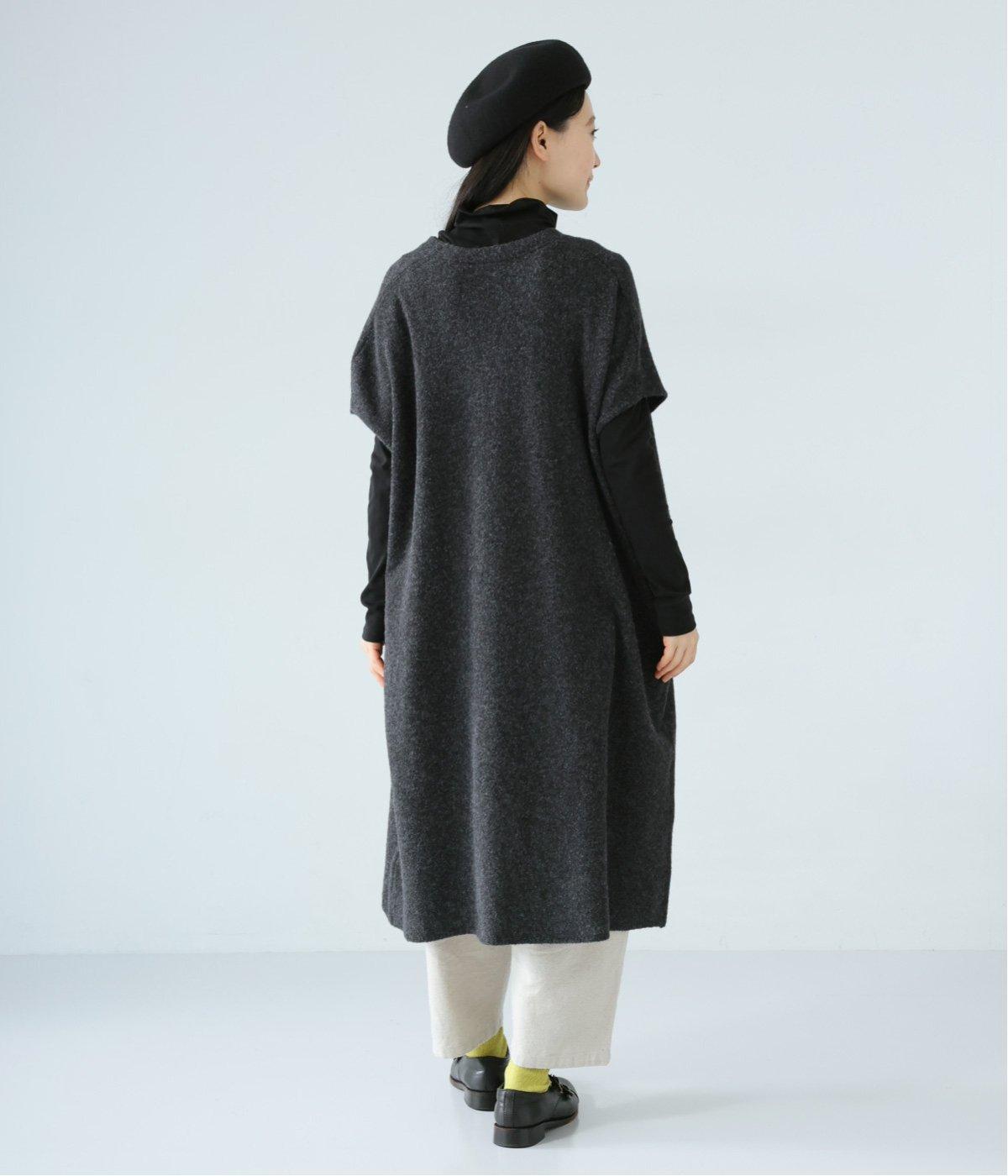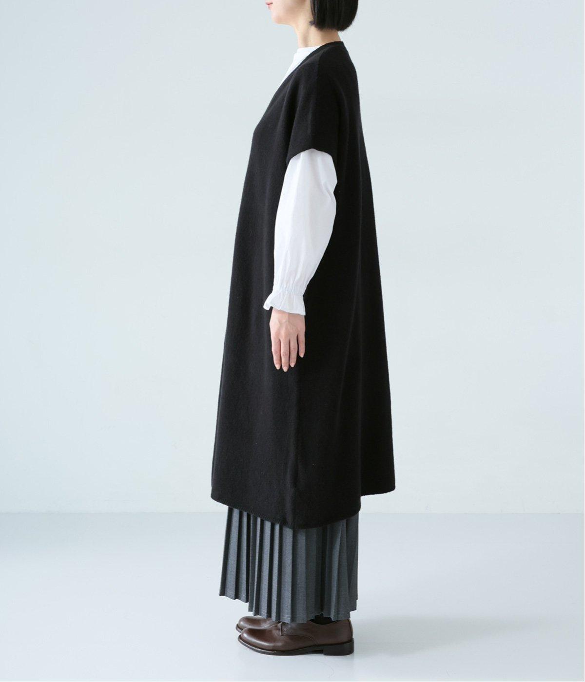 さらりと重ねやすい軽い着心地のニットベスト。合わせるインナーを選ばず、センターのスリットですっきりとしたジレのような印象に。