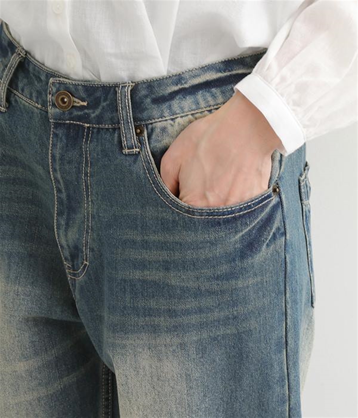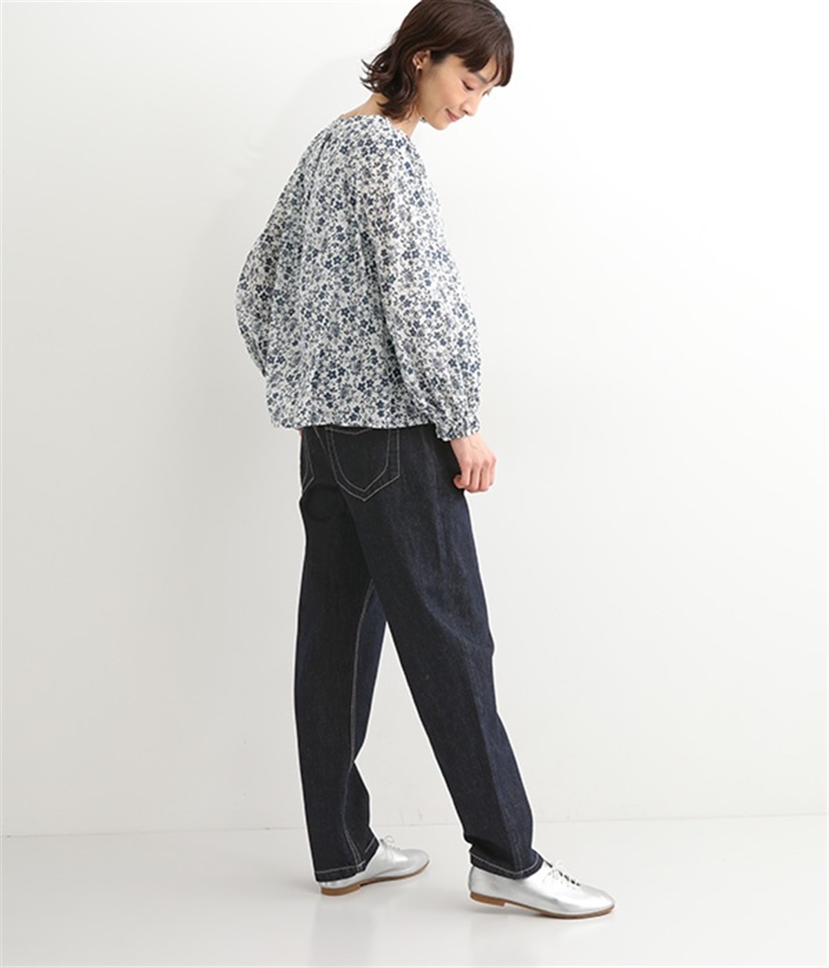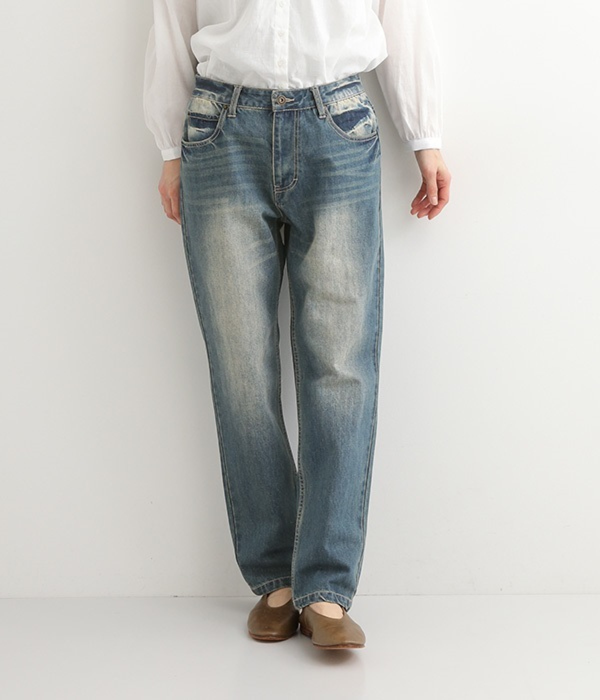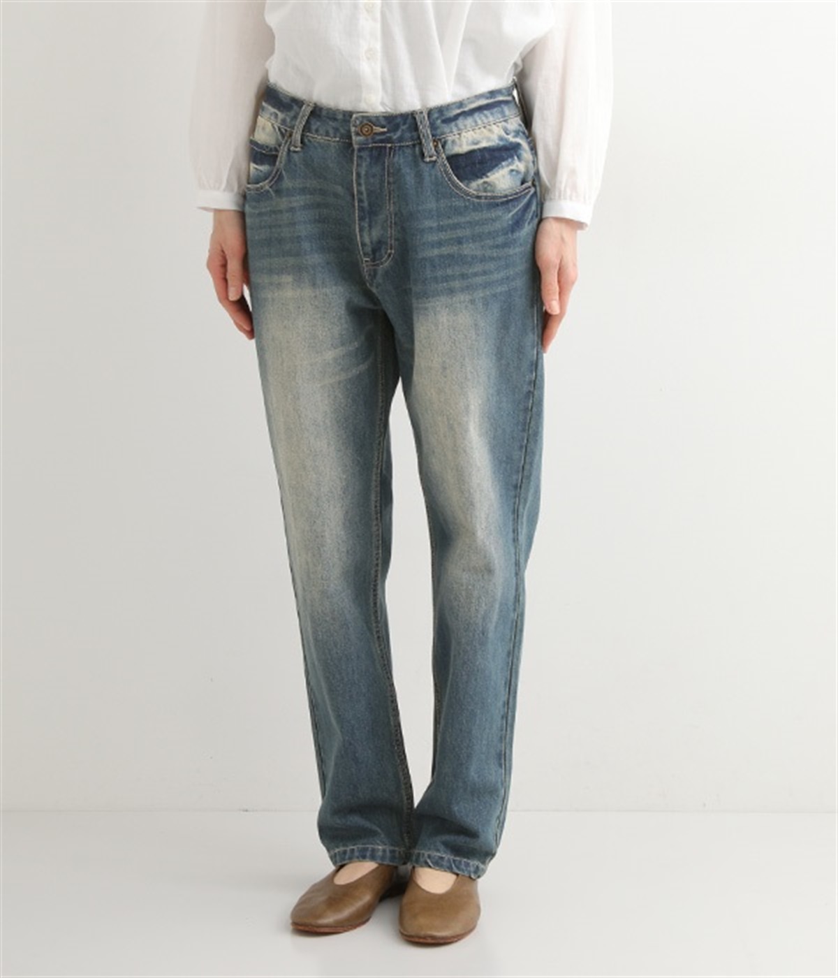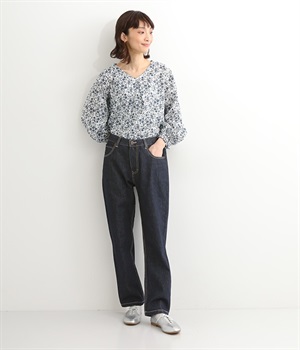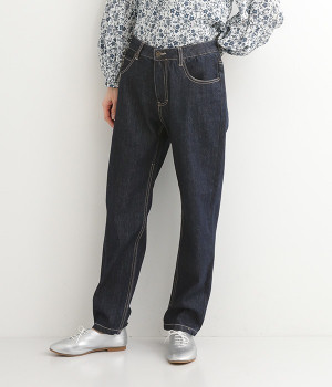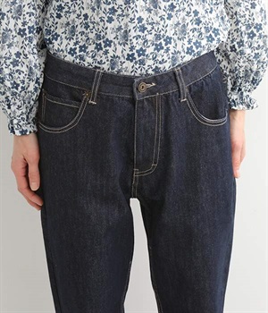ストレートシルエットのベーシックなデニムパンツです。トレンドに左右されないベーシックなデザインは、長くシーズンレスで使え、大人のデイリースタイルに活躍します。配色違いのステッチがアクセントをプラスオン。春から夏は裾をラフに折り上げて足首に抜け感をつけた着こなしも素敵です。ウエストはボタン&ファスナー仕様。