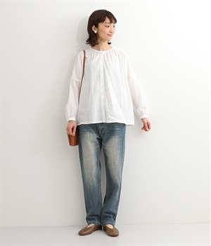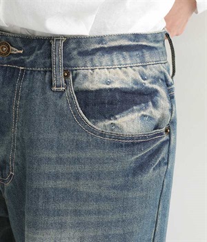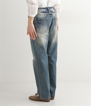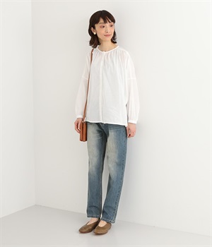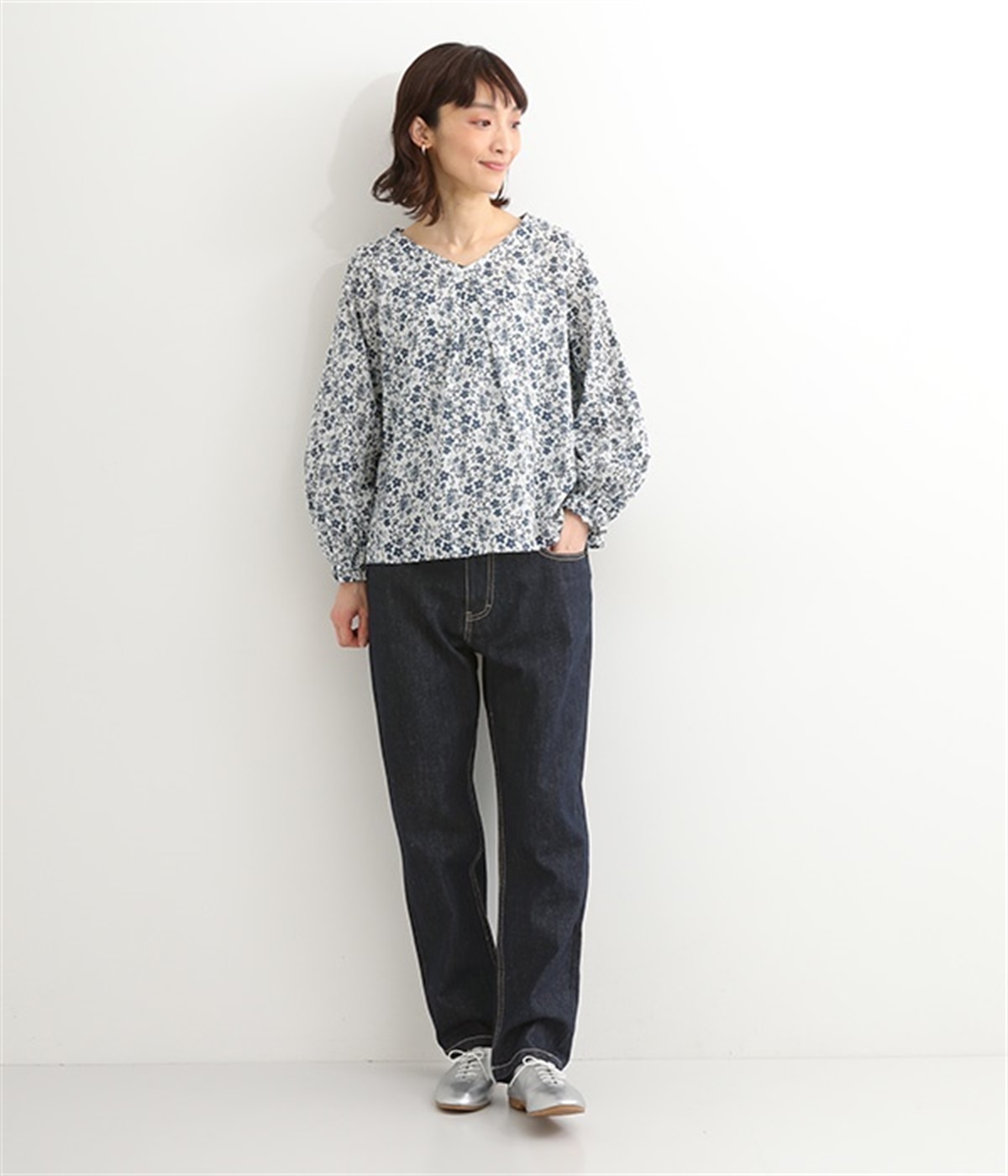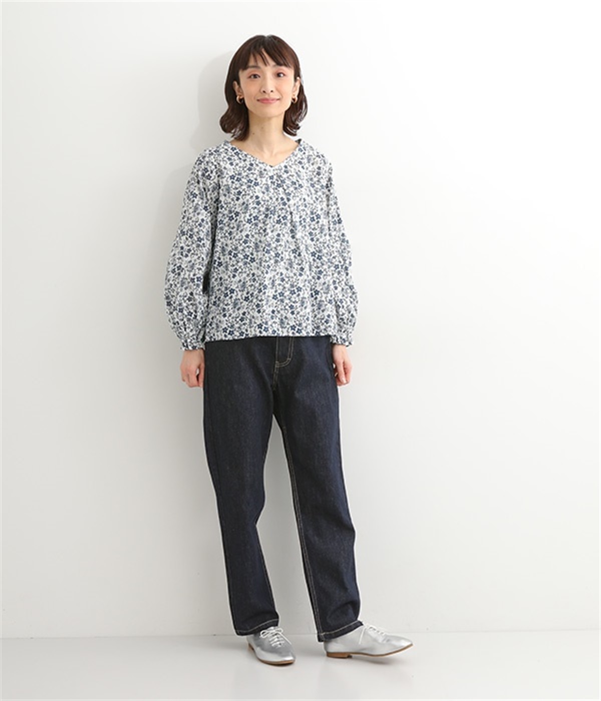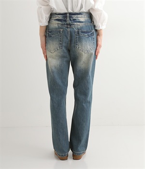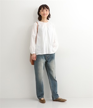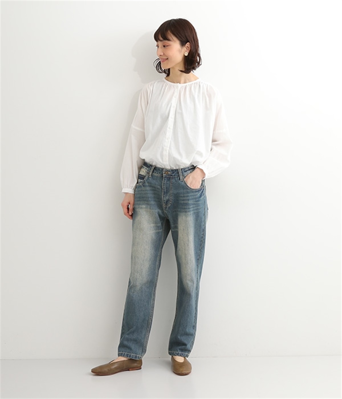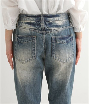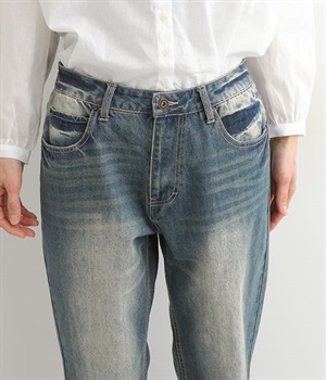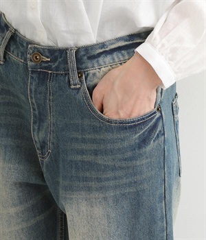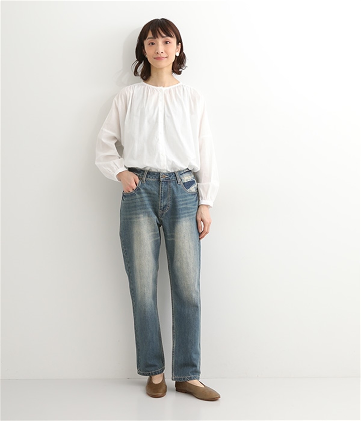 ストレートシルエットのベーシックなデニムパンツです。トレンドに左右されないベーシックなデザインは、長くシーズンレスで使え、大人のデイリースタイルに活躍します。配色違いのステッチがアクセントをプラスオン。春から夏は裾をラフに折り上げて足首に抜け感をつけた着こなしも素敵です。ウエストはボタン&ファスナー仕様。