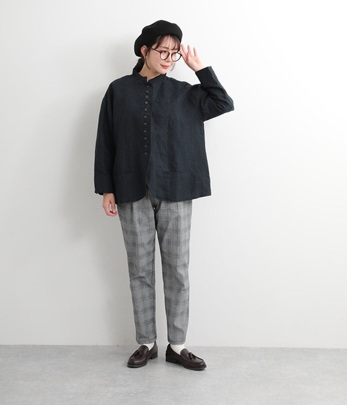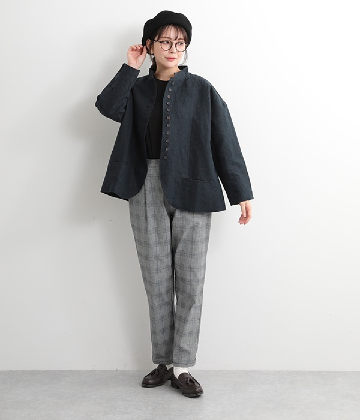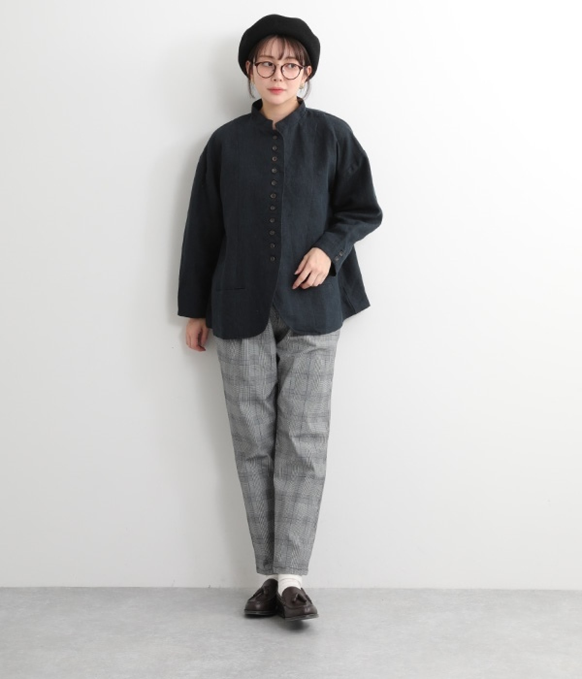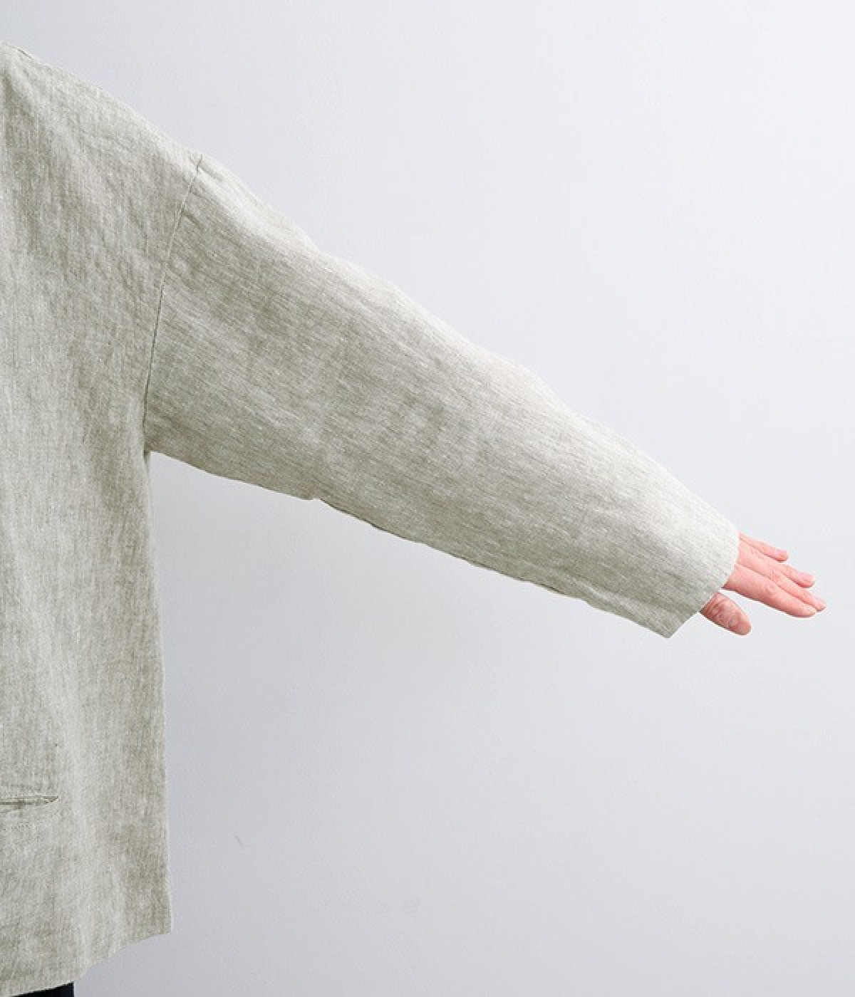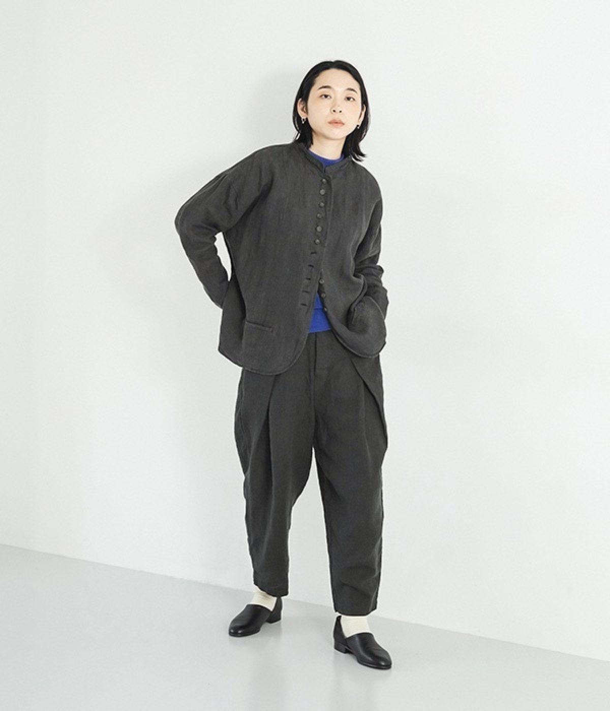 シャリ感とコシのある、丈夫な9番手リネンで仕立てたジャケットです。前端に多く並んだボタンがデザインポイント。かっちりとした印象のジャケットを、ボタン使いとリネン素材でほどよくカジュアルダウンさせました。着るほどにやわらかく肌になじみ、豊かになっていく風合いも楽しむことができます。