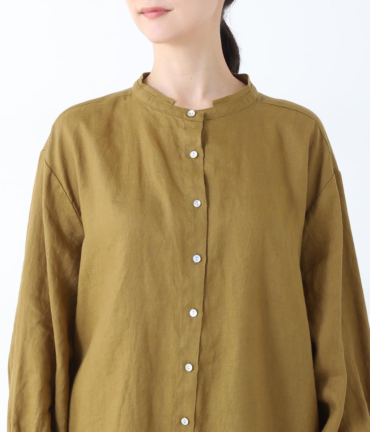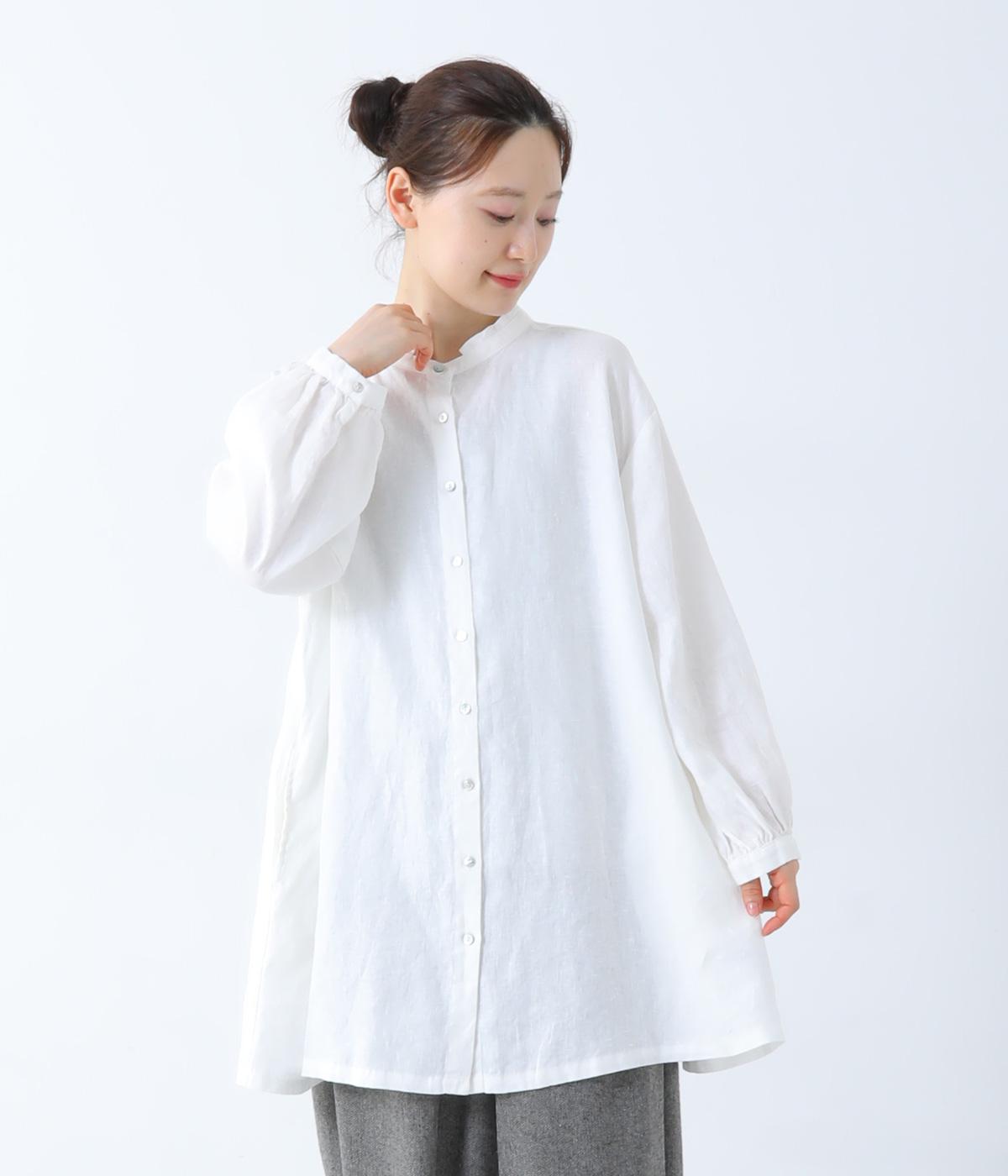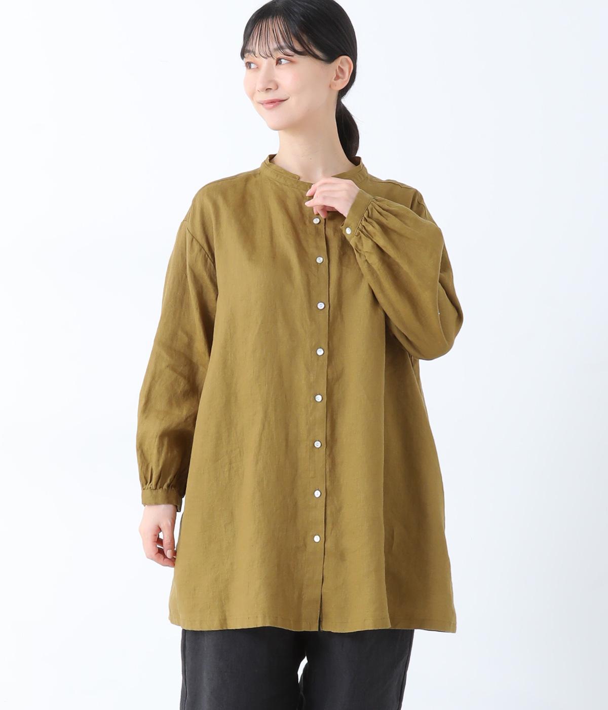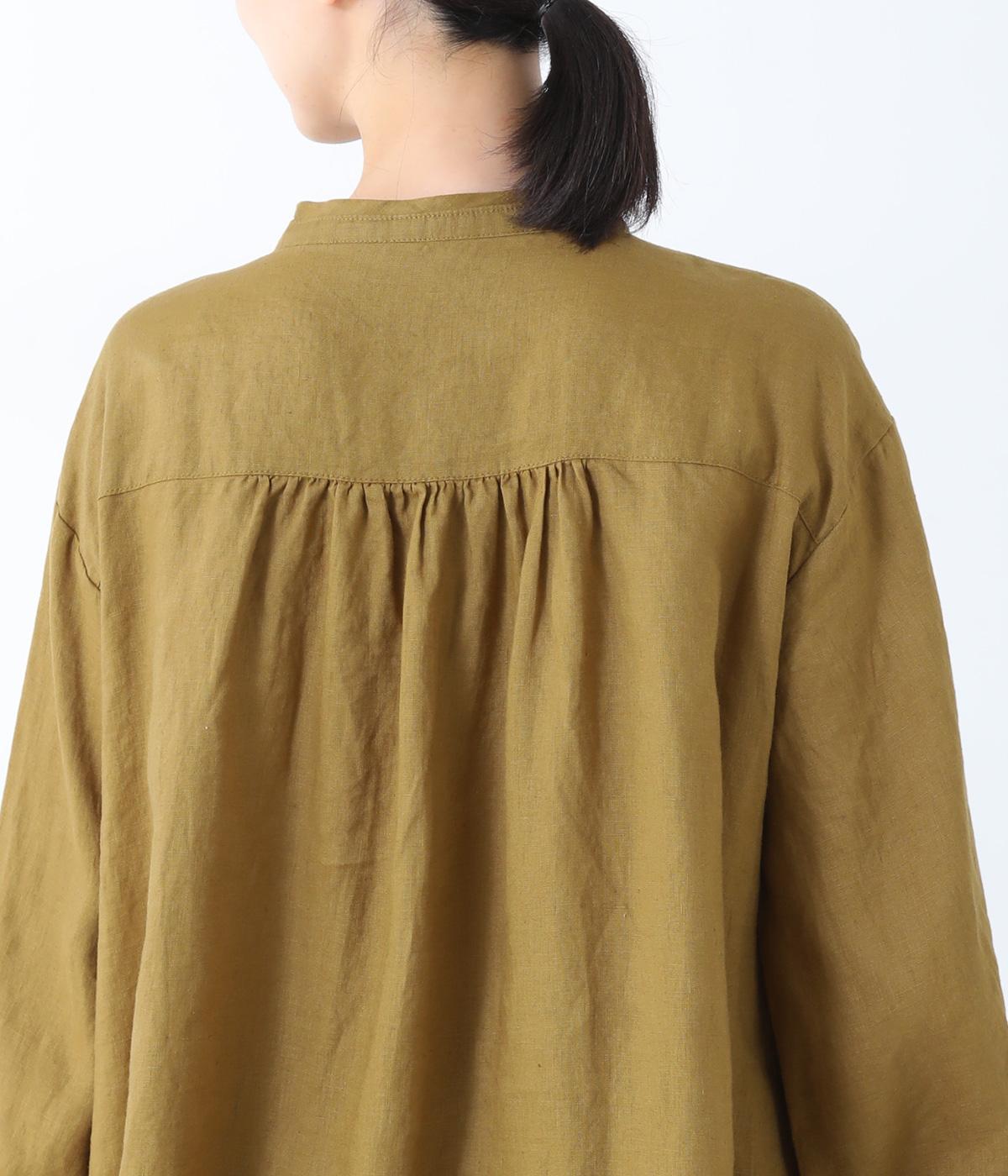 後ろヨーク下に細かなギャザーを入れ、ゆったりとしたフレアシルエットに仕上げたチュニック。ヒップまで隠す着丈が体のラインをカバーしてくれます。低めに立ち上げたスタンドカラーできちんと感をプラス。両サイドには便利なポケットをつけました。