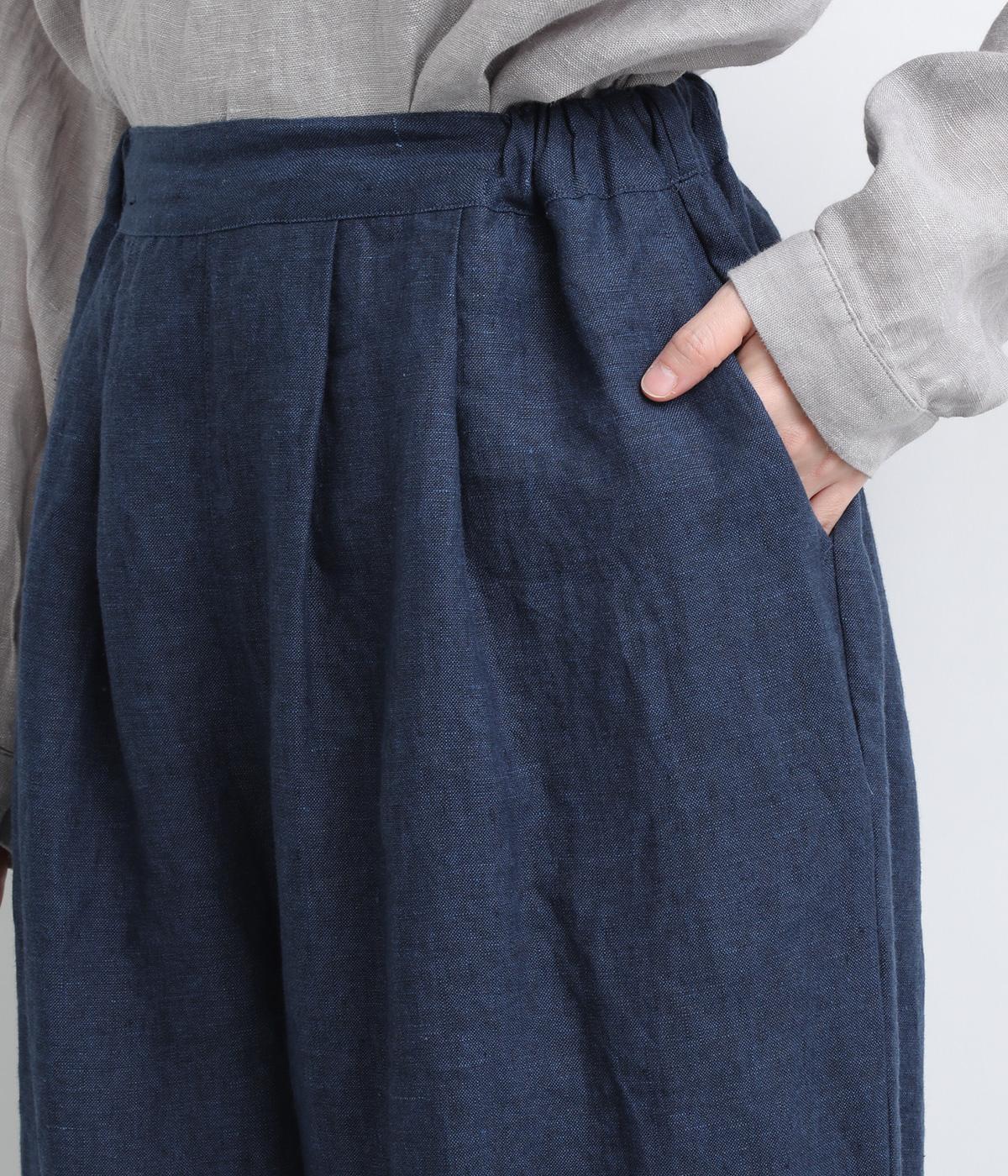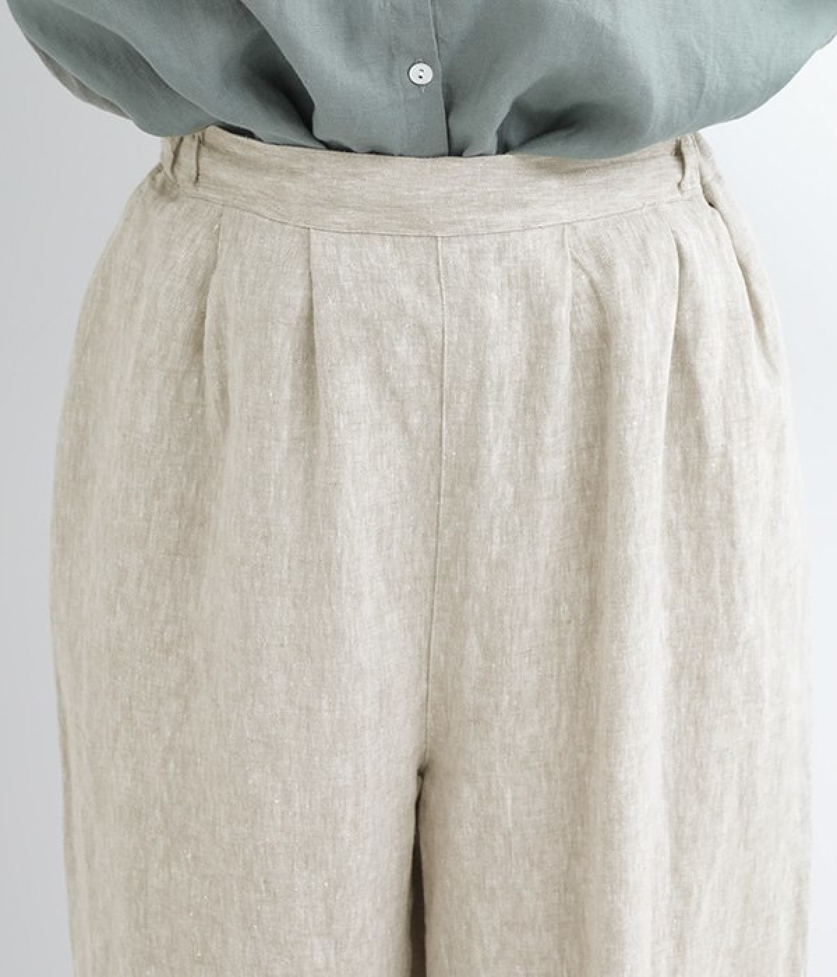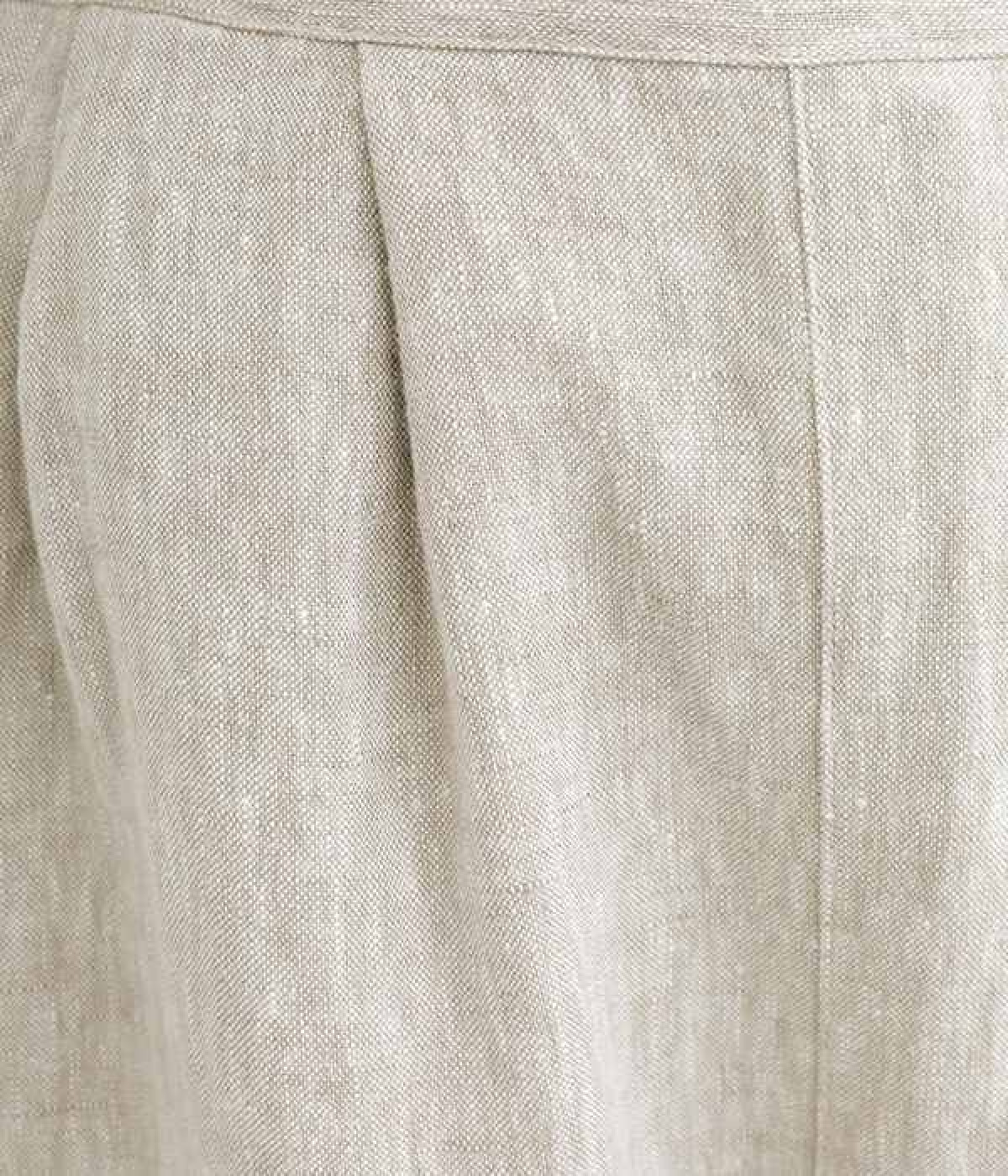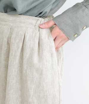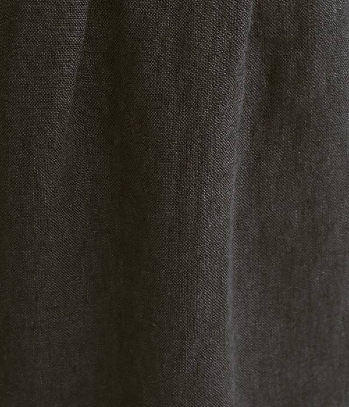 ドライタッチが心地よい、ざっくりとしたナチュラルな質感が魅力のリネン仕立て。ほどよくコシがあり、はくほどに肌になじむ経年変化も楽しみ。シワも表情のひとつになるアイロン要らずな素材。