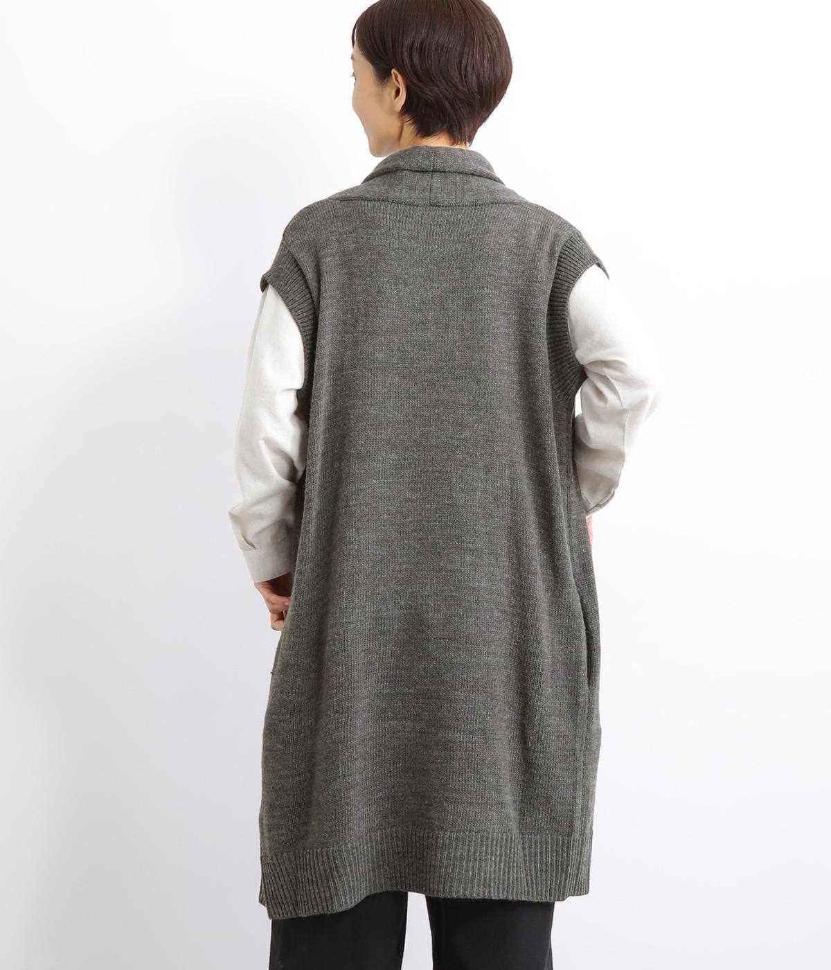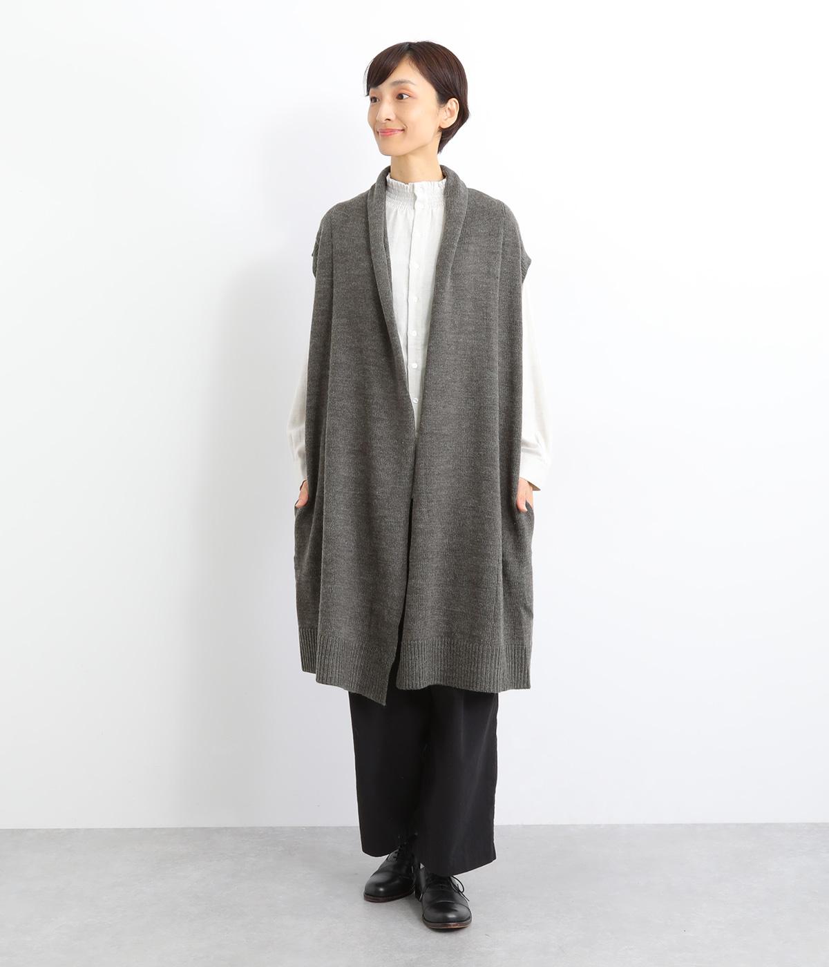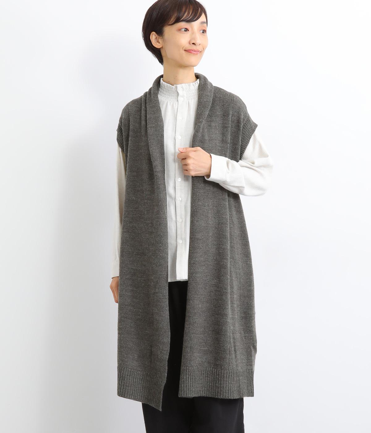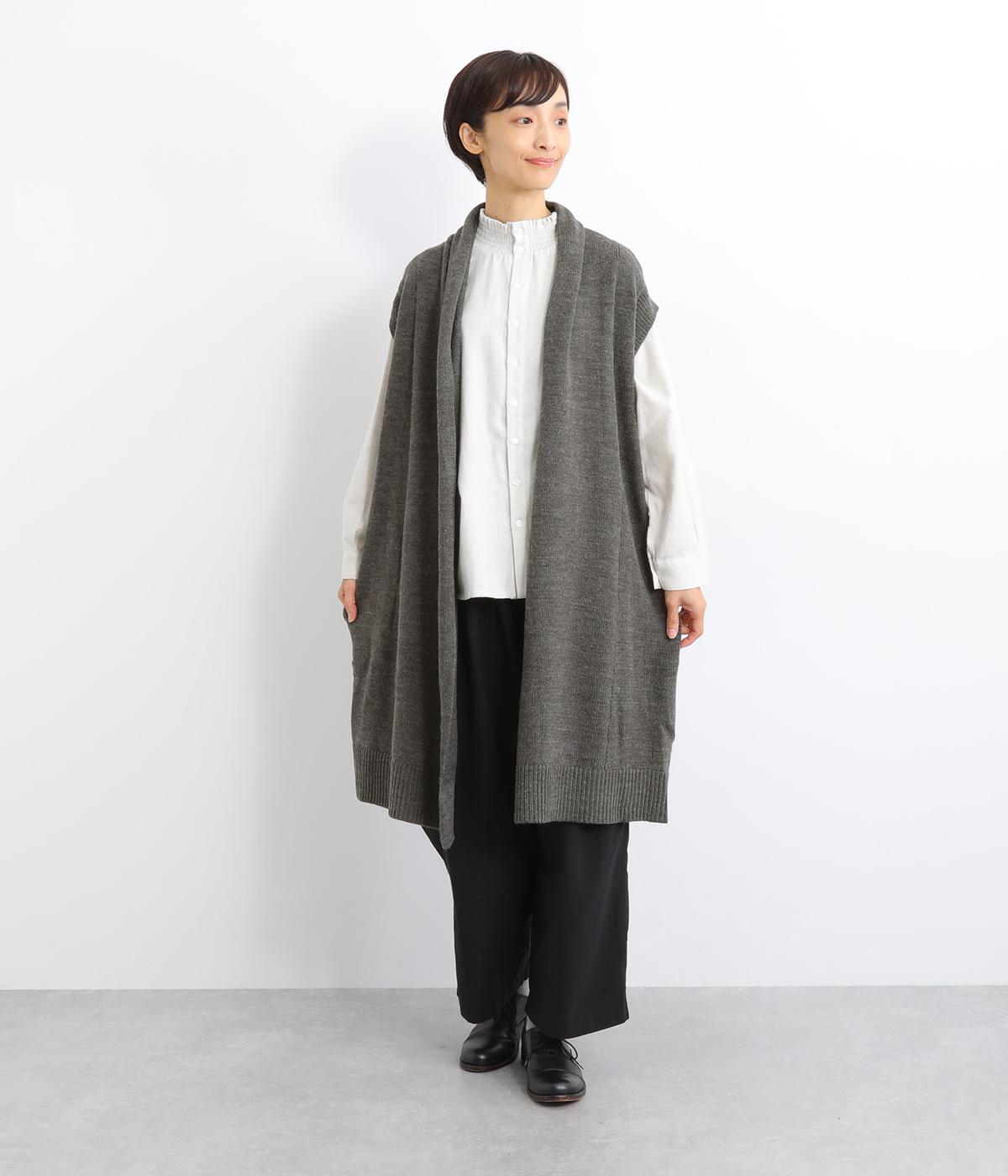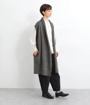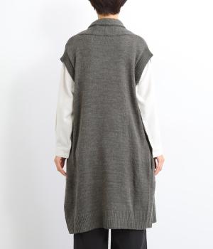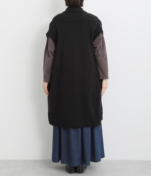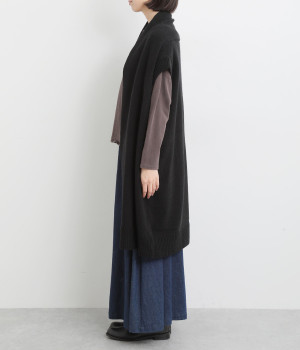 さっと羽織るだけでこなれ感が漂うボタンレスのロングベスト。ネック後ろに高さを持たせたデザインが首元の冷えを解消してくれます。ひざまで届く着丈が気になる体のラインをカバー。縦ラインが強調され、すっきりとした着こなしを叶えるうれしいアイテムです。