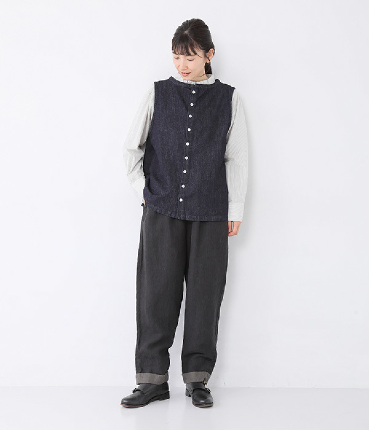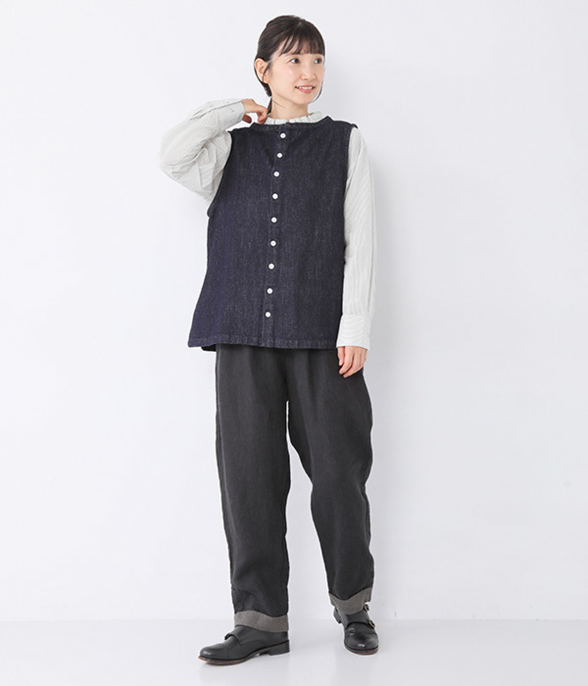 一枚では着用しにくいアイテムに重ねてみても◎