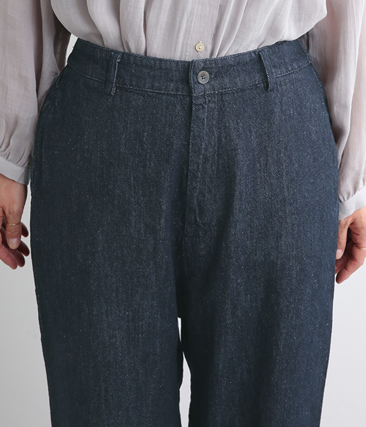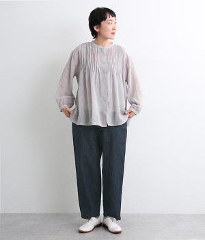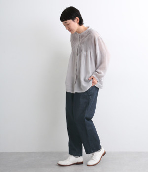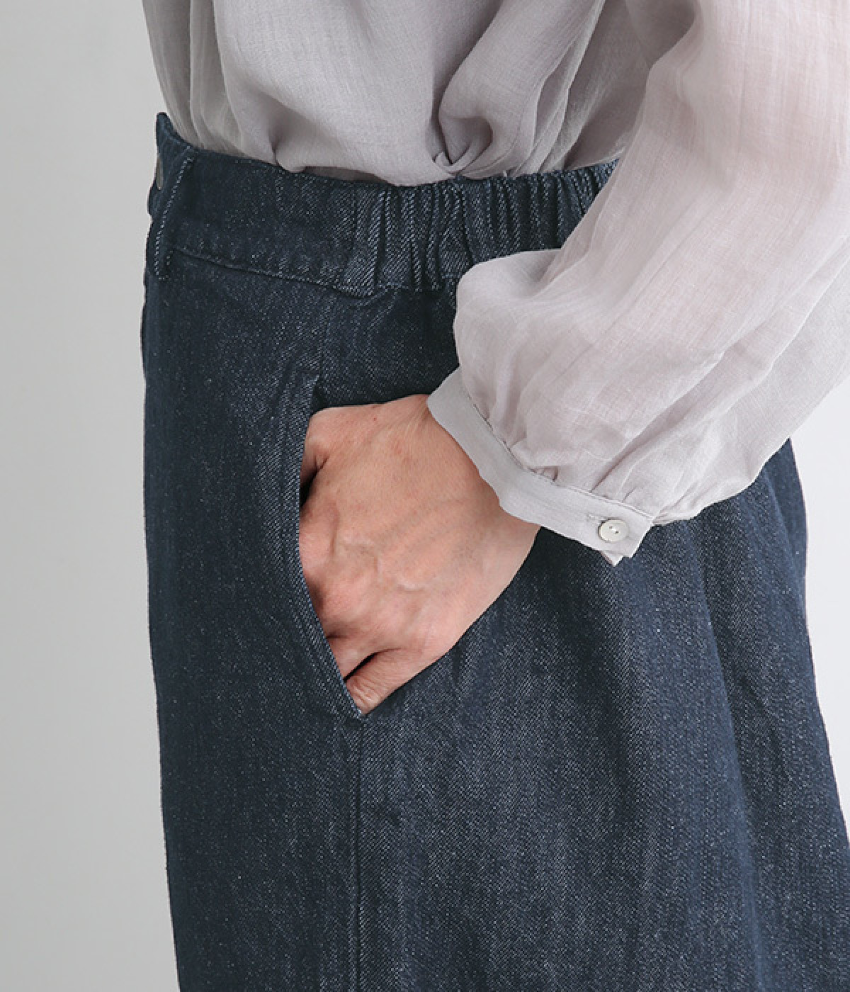 コットン×リネンをブレンドしたデニム生地を使用し、暑い季節も快適に過ごせる清涼感のある素材です。タフさがありつつも、天然素材ならではのやさしい肌ざわりが魅力です。