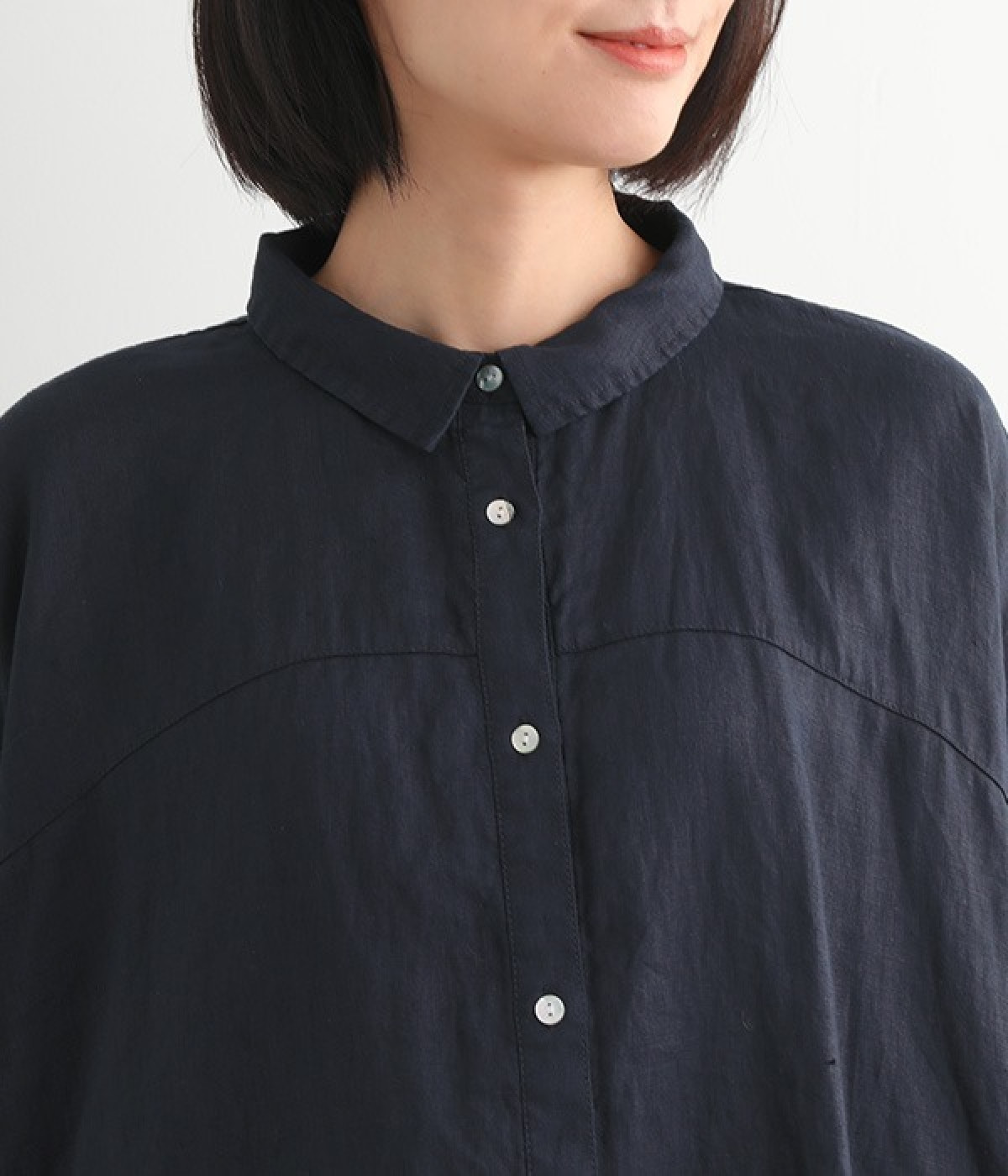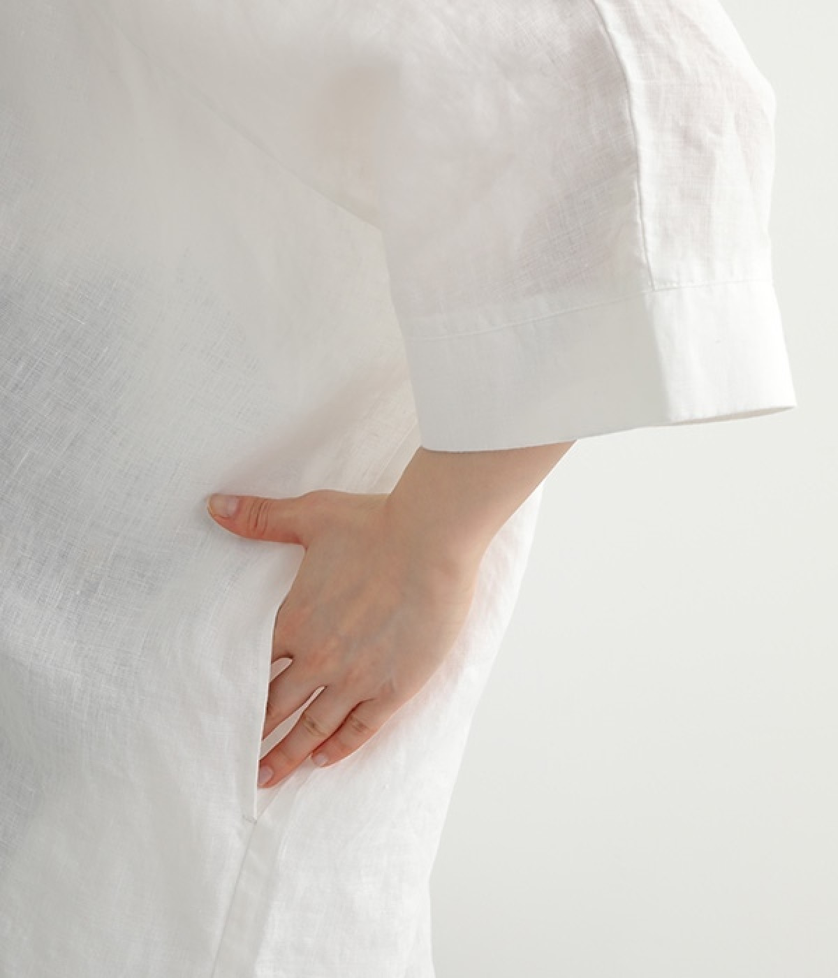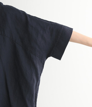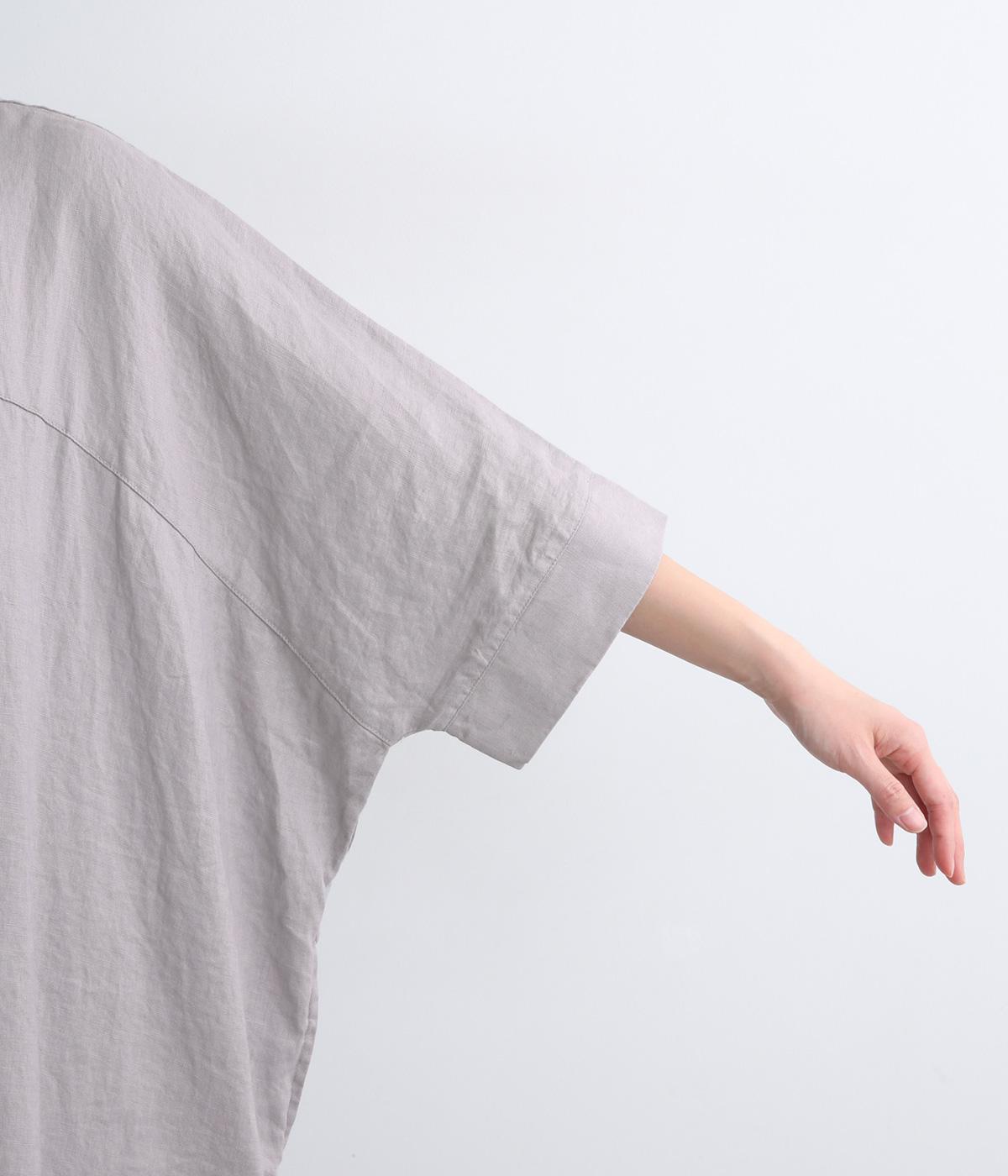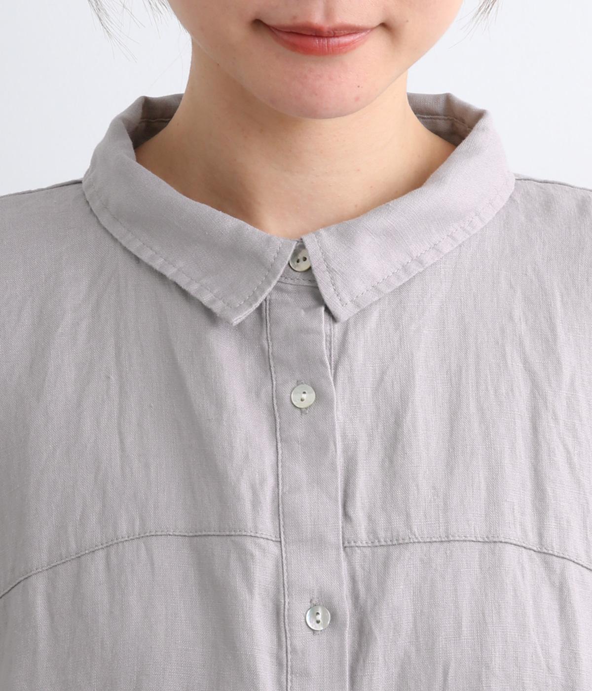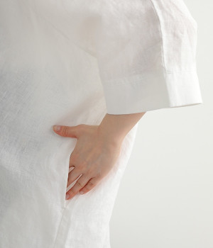 通気性・放湿性に優れていてほどよくふくらみのあるリネン素材を使用。肌にはりつきにくくロングシーズン快適に着まわせて、リネンならではの経年変化も魅力のひとつ。