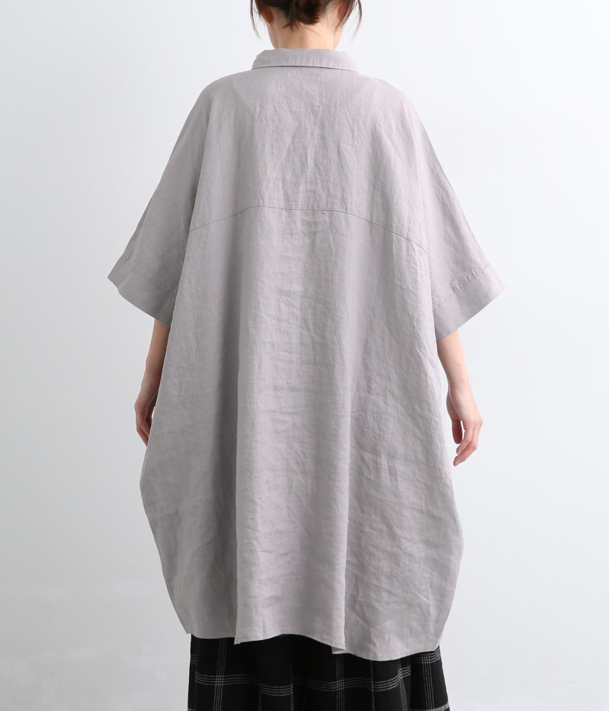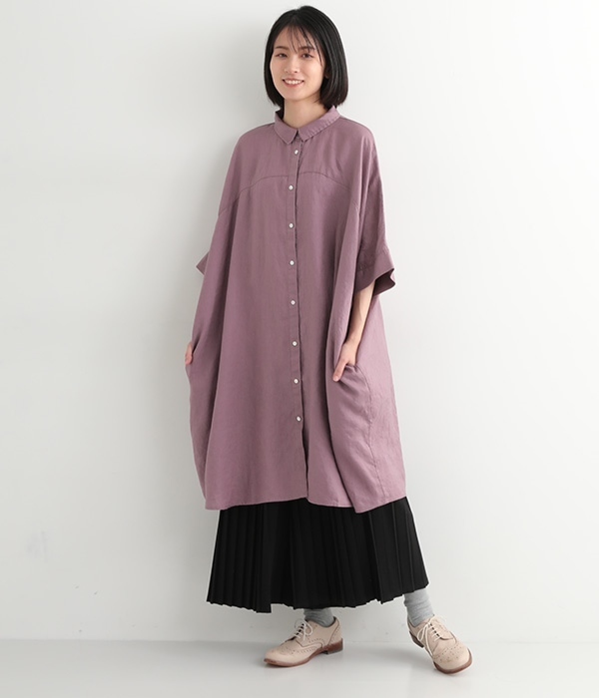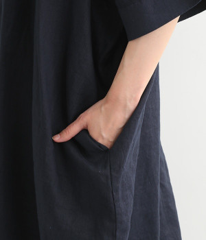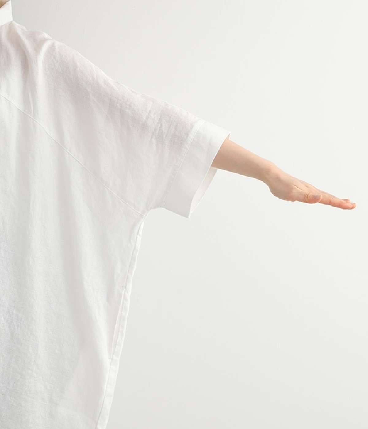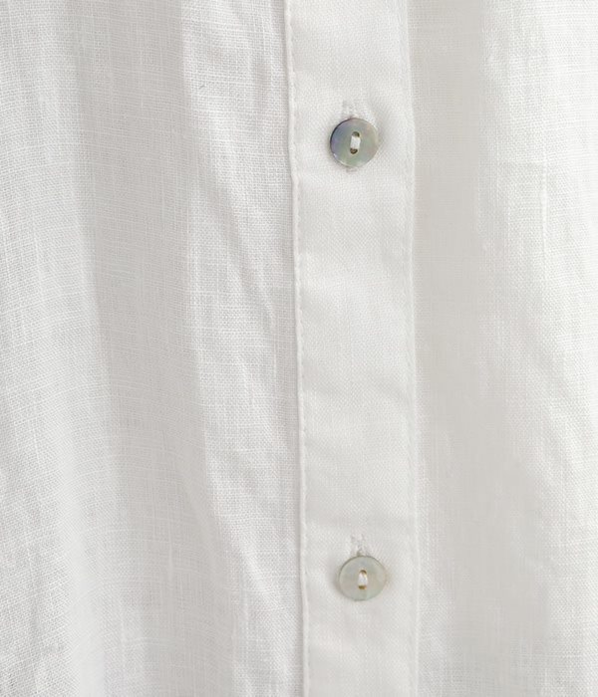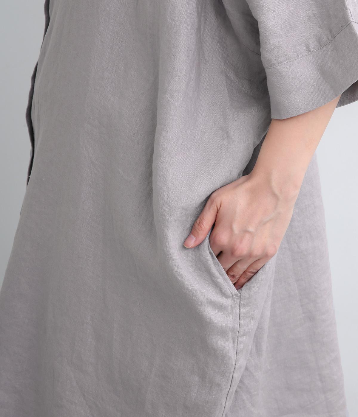 通気性・放湿性に優れていてほどよくふくらみのあるリネン素材を使用。肌にはりつきにくくロングシーズン快適に着まわせて、リネンならではの経年変化も魅力のひとつ。