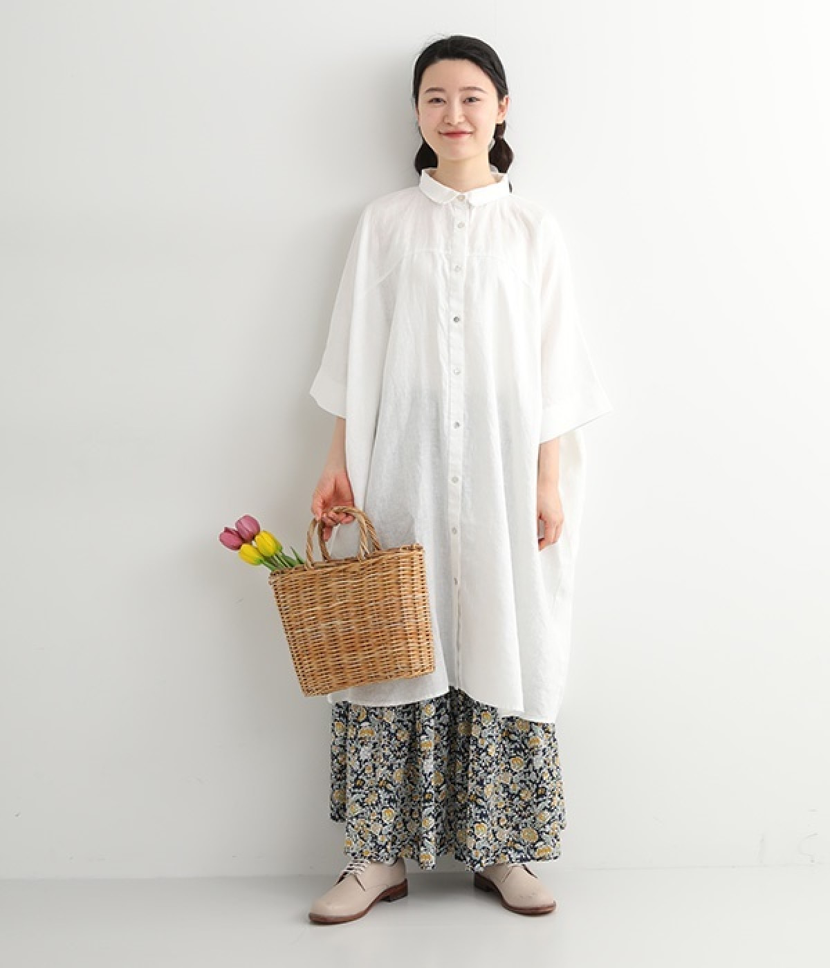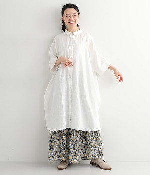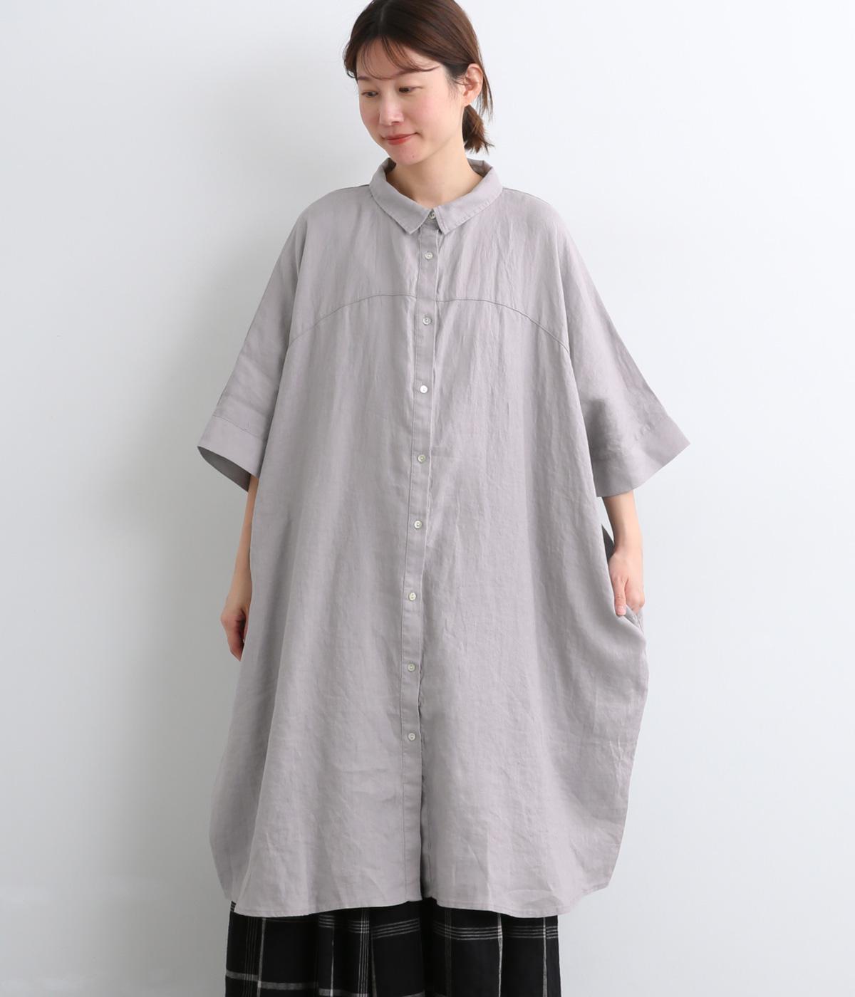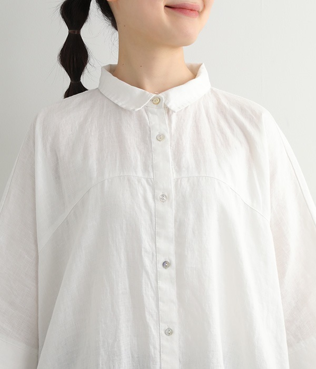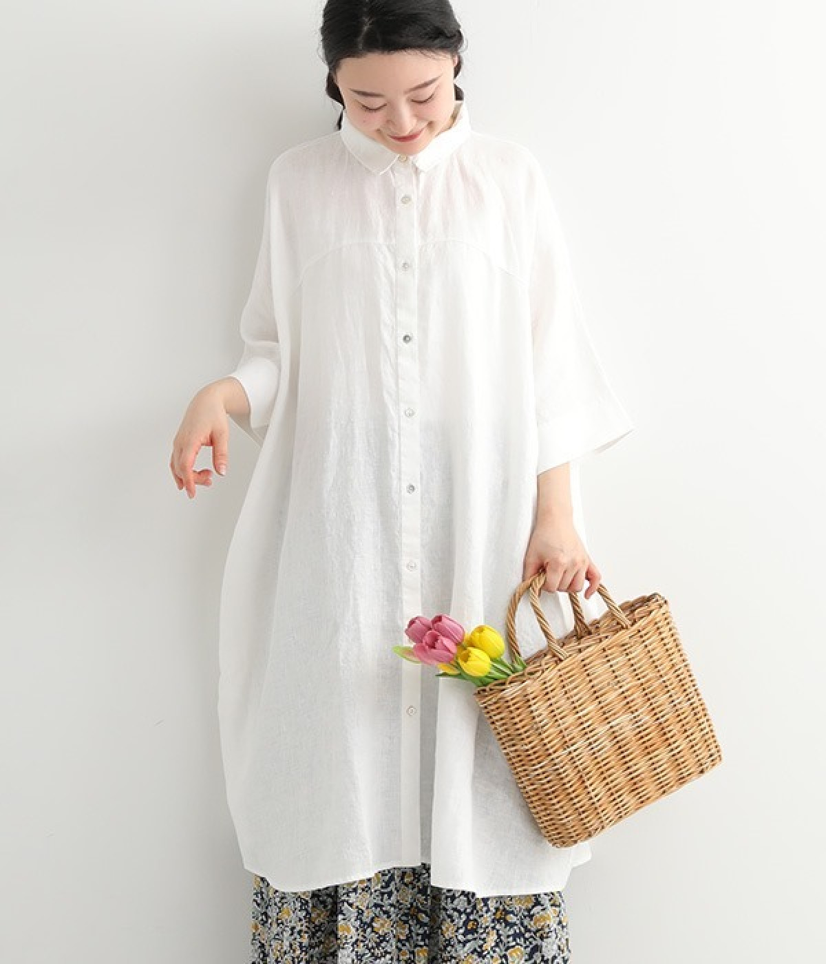 通気性・放湿性に優れていてほどよくふくらみのあるリネン素材を使用。肌にはりつきにくくロングシーズン快適に着まわせて、リネンならではの経年変化も魅力のひとつ。