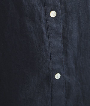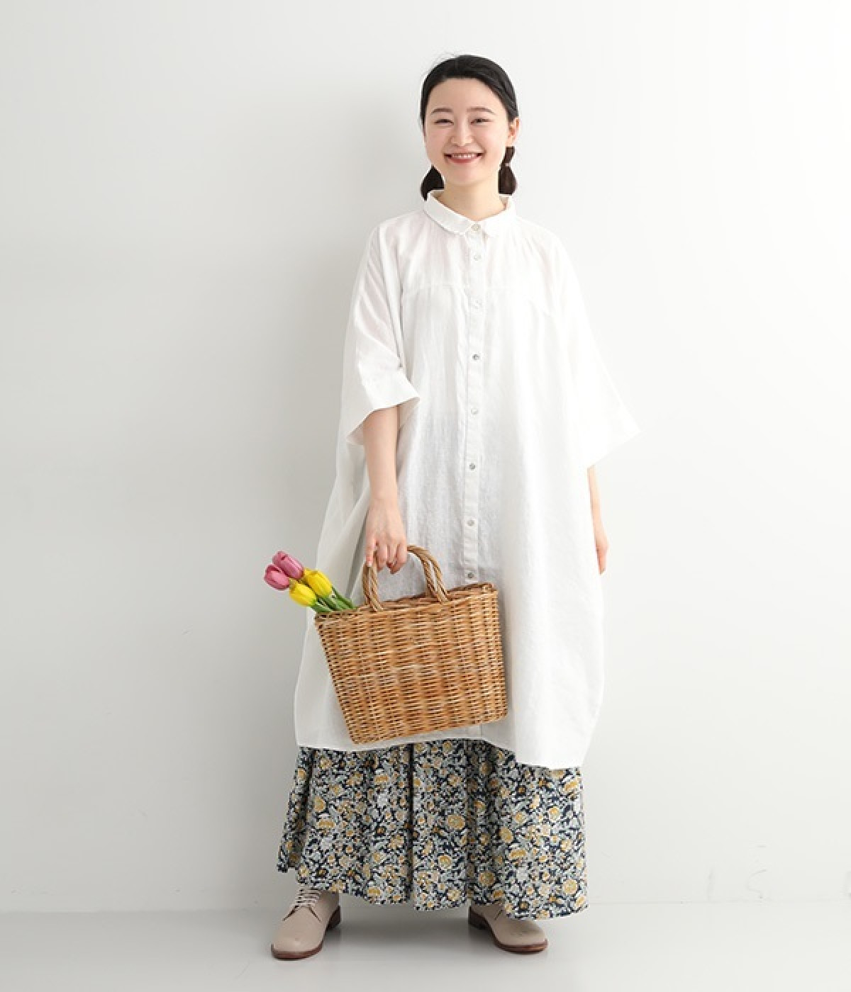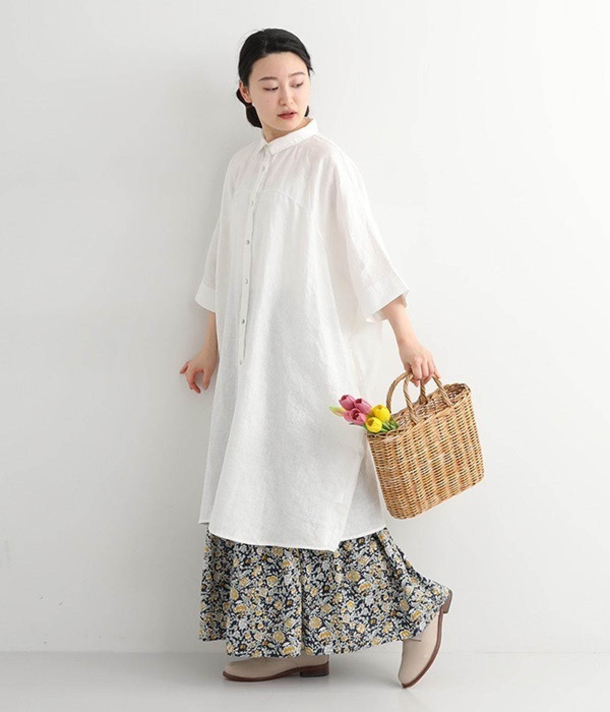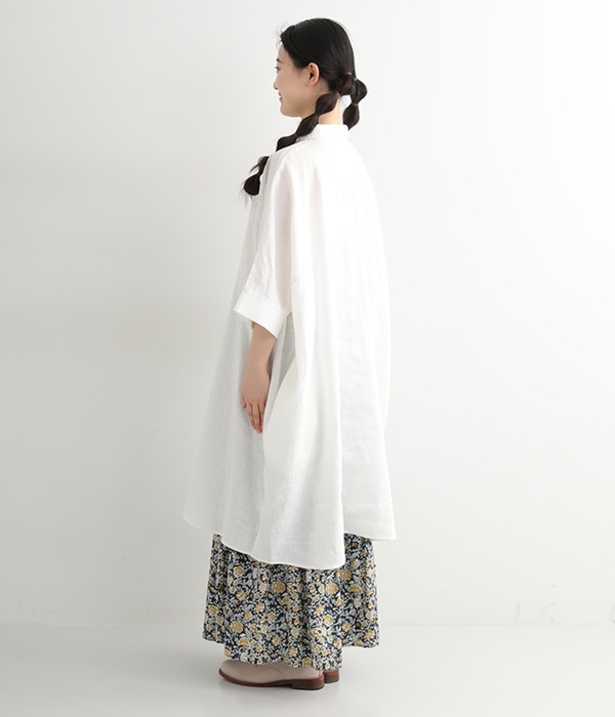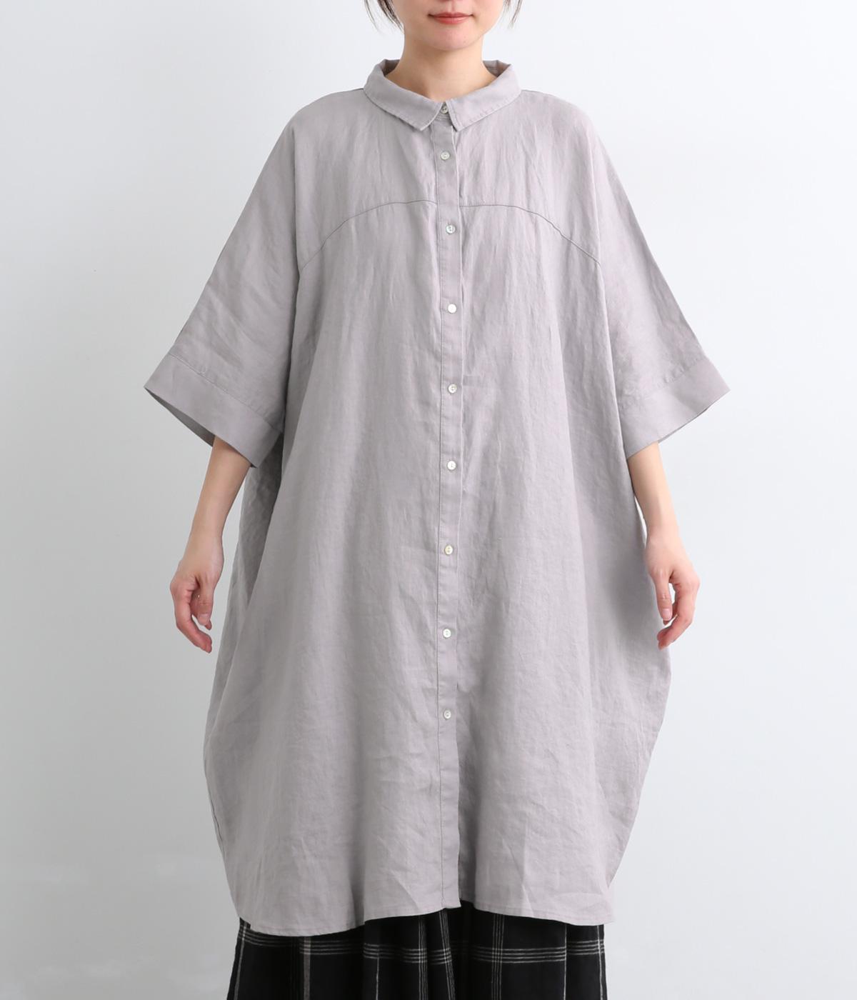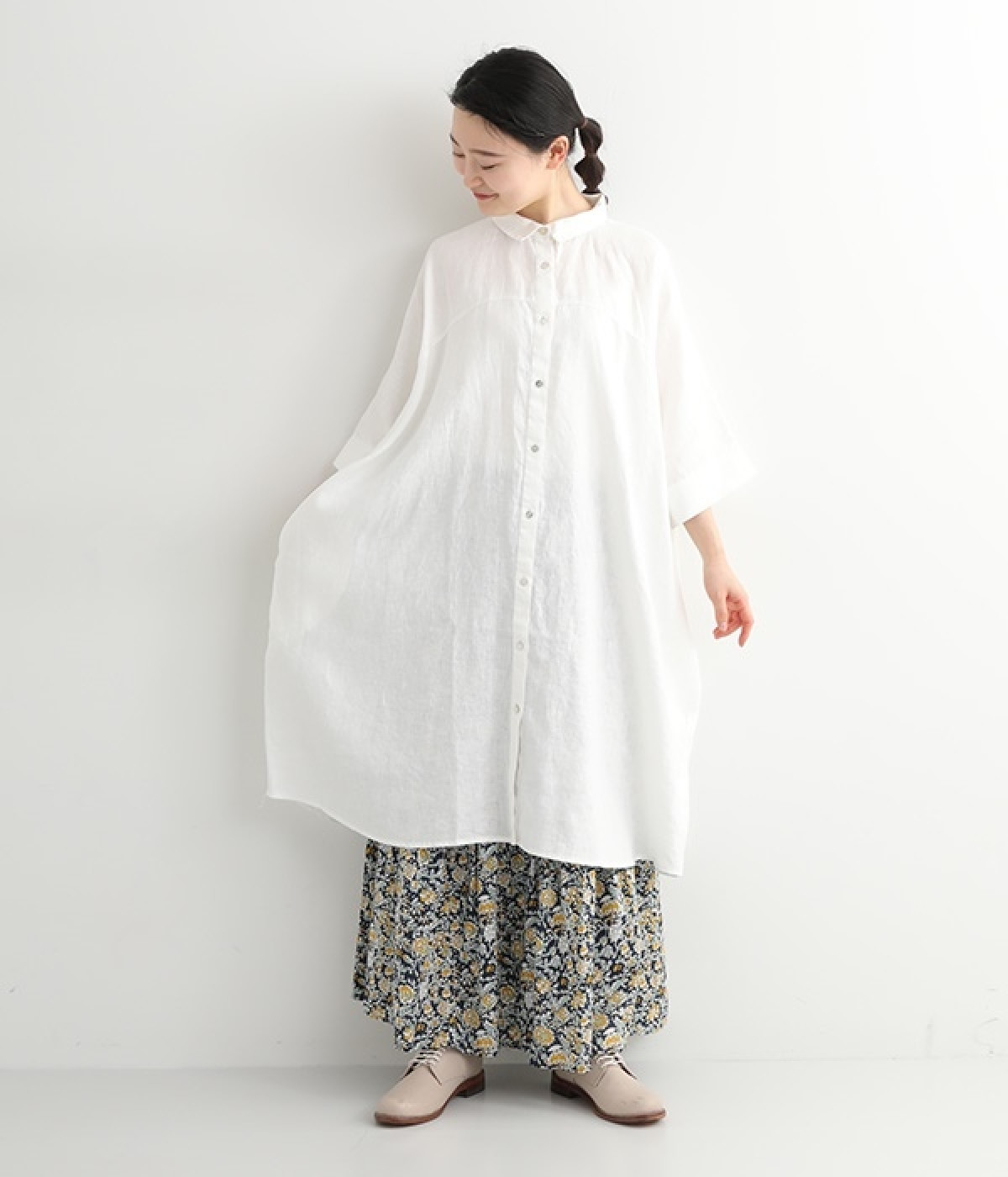 通気性・放湿性に優れていてほどよくふくらみのあるリネン素材を使用。肌にはりつきにくくロングシーズン快適に着まわせて、リネンならではの経年変化も魅力のひとつ。