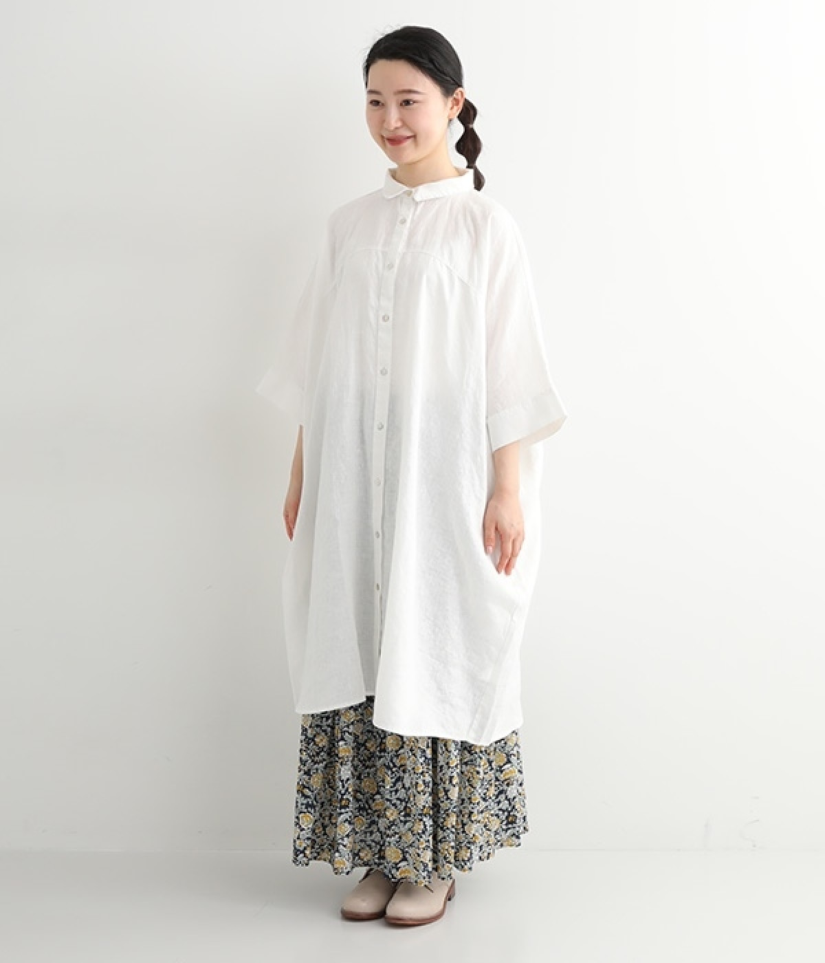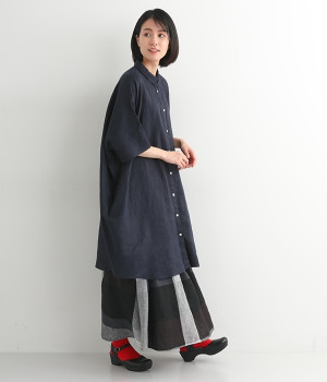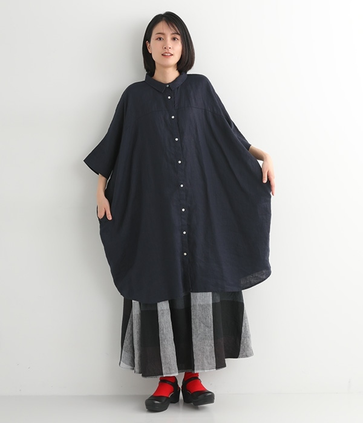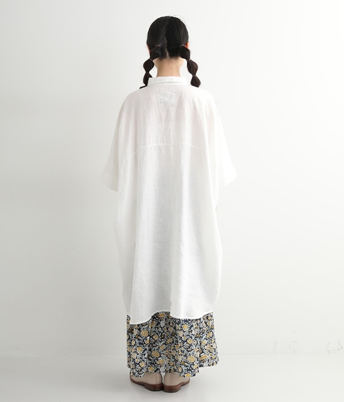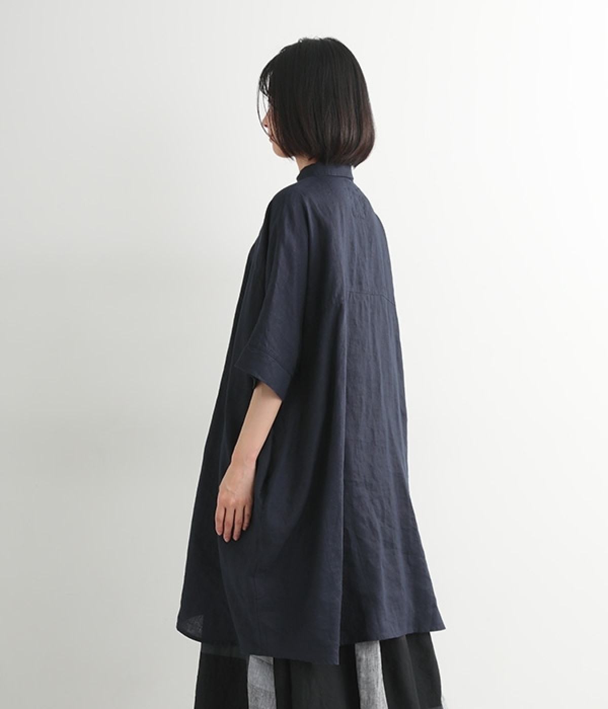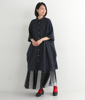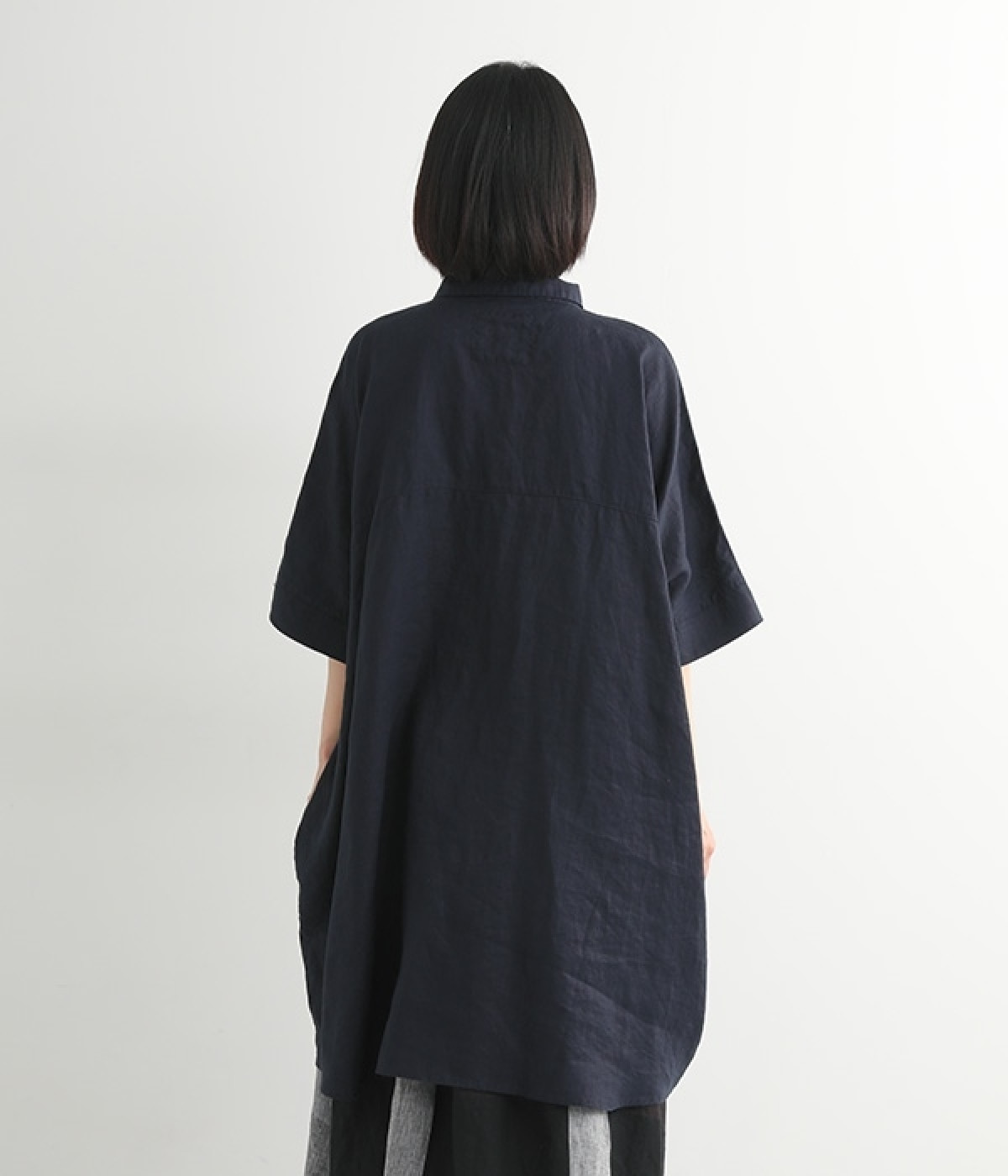 オーバーシャツを羽織ったような気負いのなさときちんと感のバランスが絶妙な一枚。袖まわりもゆったりしているので夏場は一枚で風通しよく、肌寒い季節の変わり目はレイヤードと着まわしがききます。前あき仕様にポケットつきも◎。