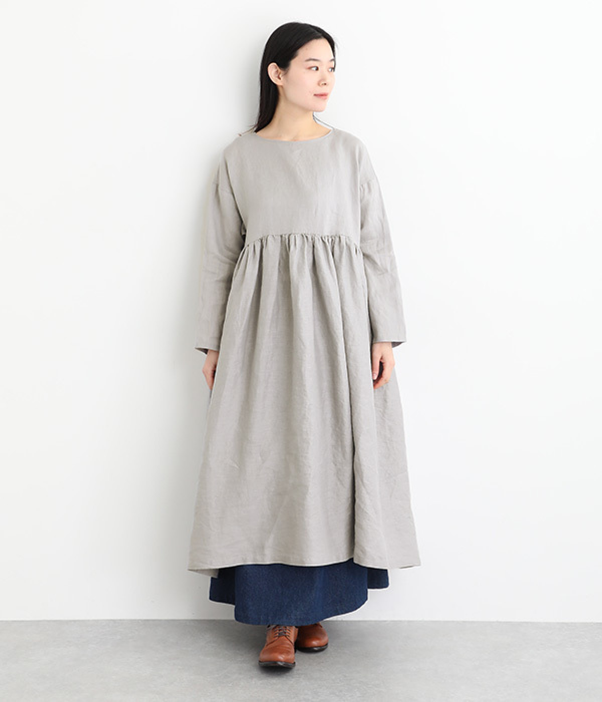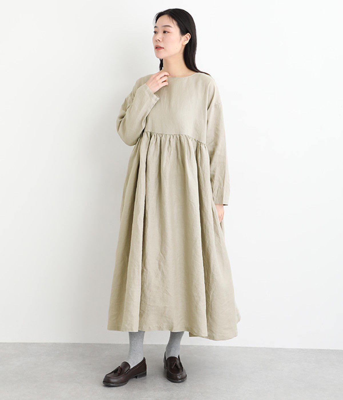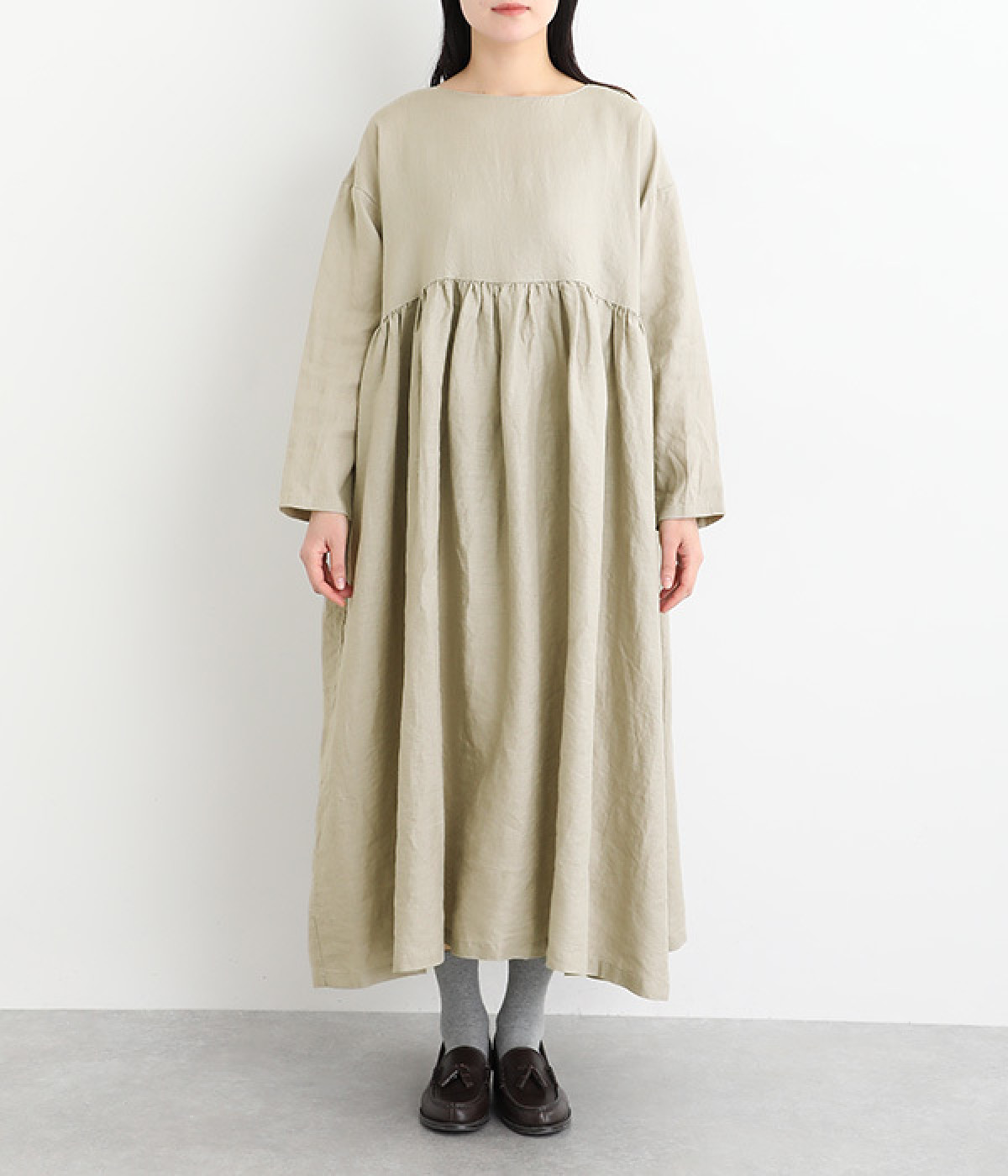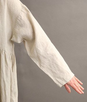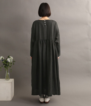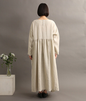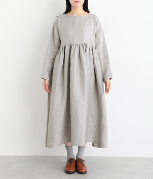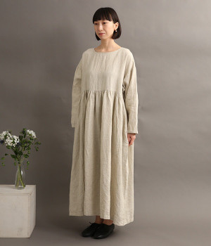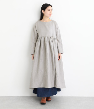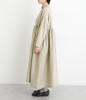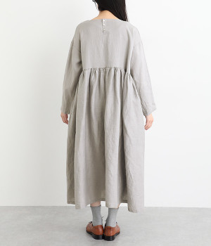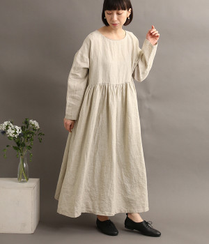 たっぷりと入ったウエストの切り替えギャザーが映えるワンピースです。裾にかけて広がるボリューミーなAラインシルエットは存在感があり、一枚でもサマになります。シンプルなデザインなのでアクセサリーなど小物類を組み合わせたり、羽織りものとレイヤードしたりとアレンジの幅も広がります。さらりとした肌触りを持つ軽やかな着心地のリネン素材と、明るい色みが季節感高まるコーディネートを演出。