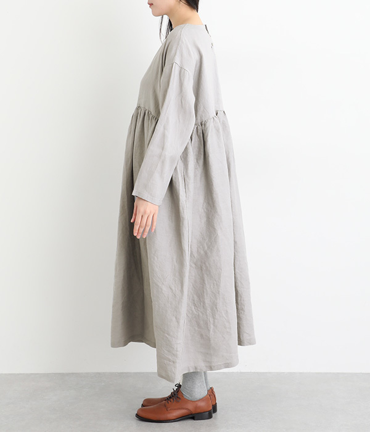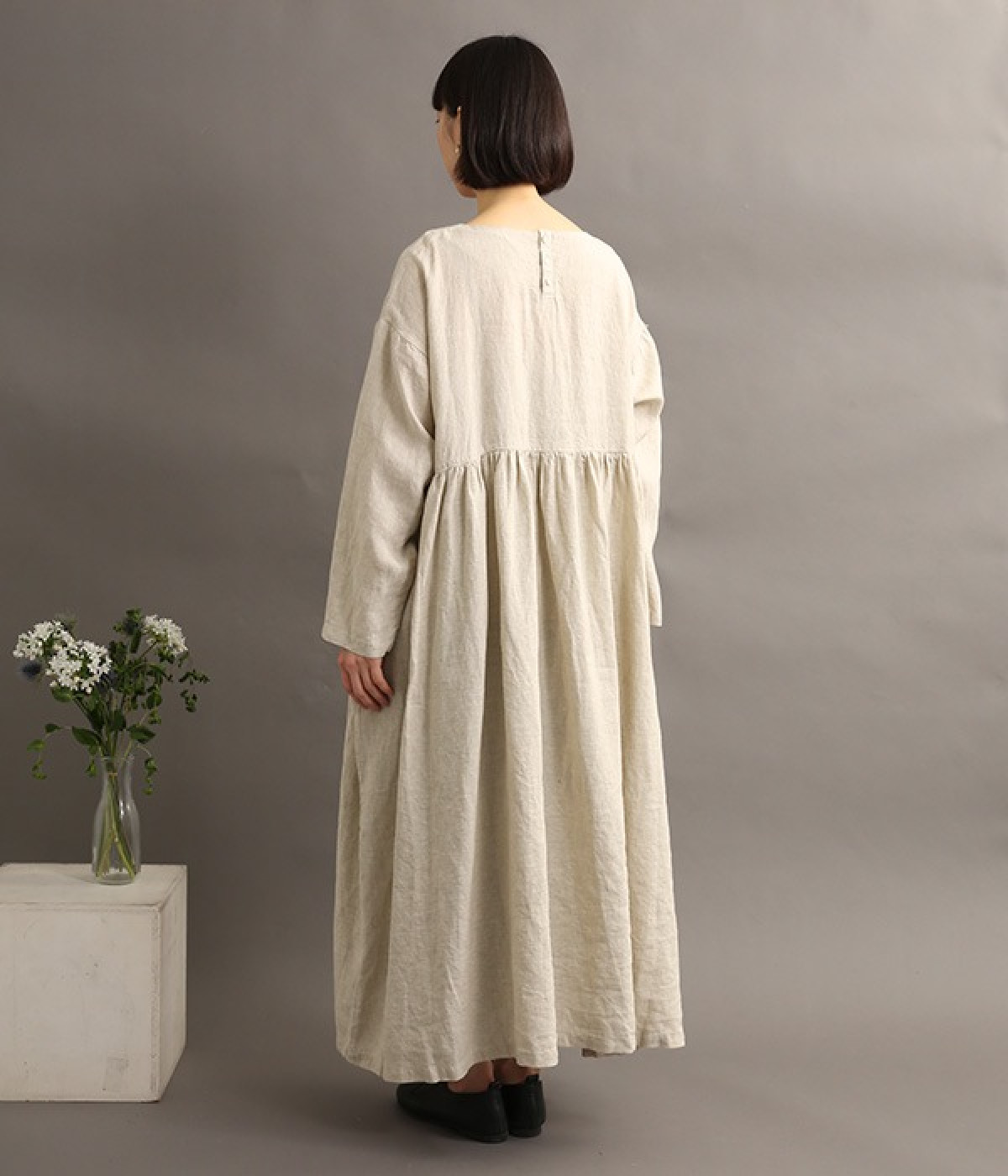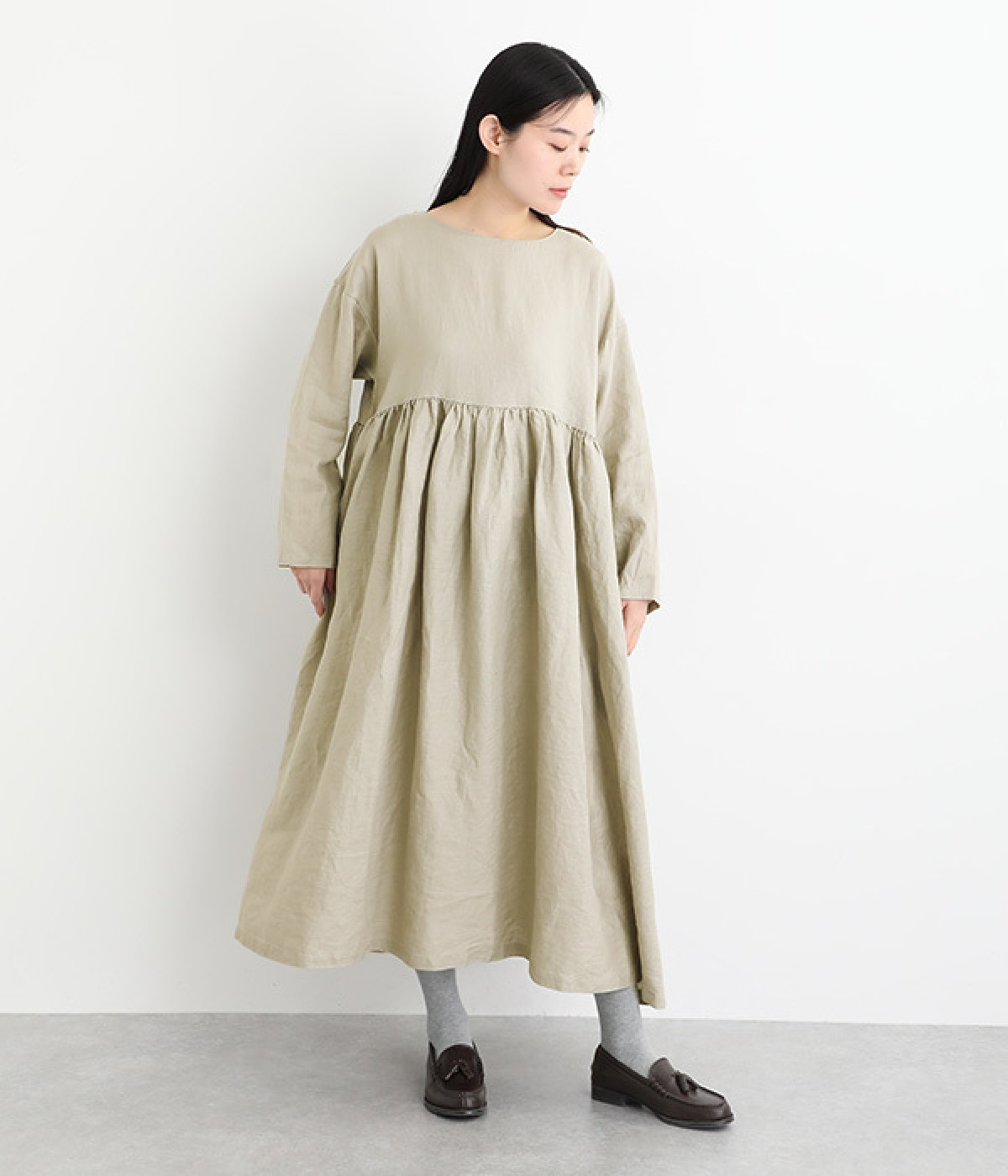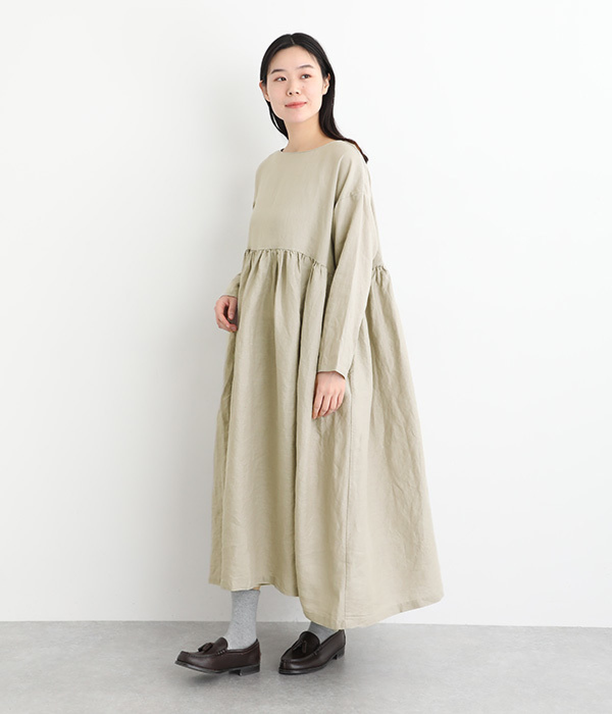 たっぷりと入ったウエストの切り替えギャザーが映えるワンピースです。裾にかけて広がるボリューミーなAラインシルエットは存在感があり、一枚でもサマになります。シンプルなデザインなのでアクセサリーなど小物類を組み合わせたり、羽織りものとレイヤードしたりとアレンジの幅も広がります。さらりとした肌触りを持つ軽やかな着心地のリネン素材と、明るい色みが季節感高まるコーディネートを演出。