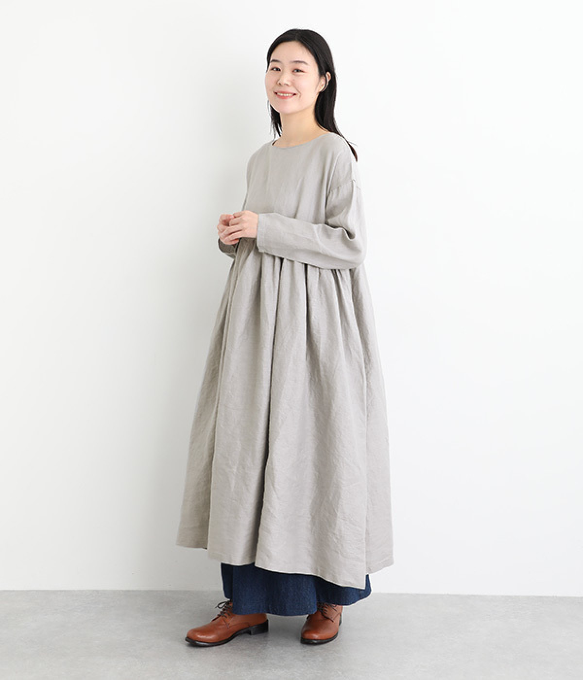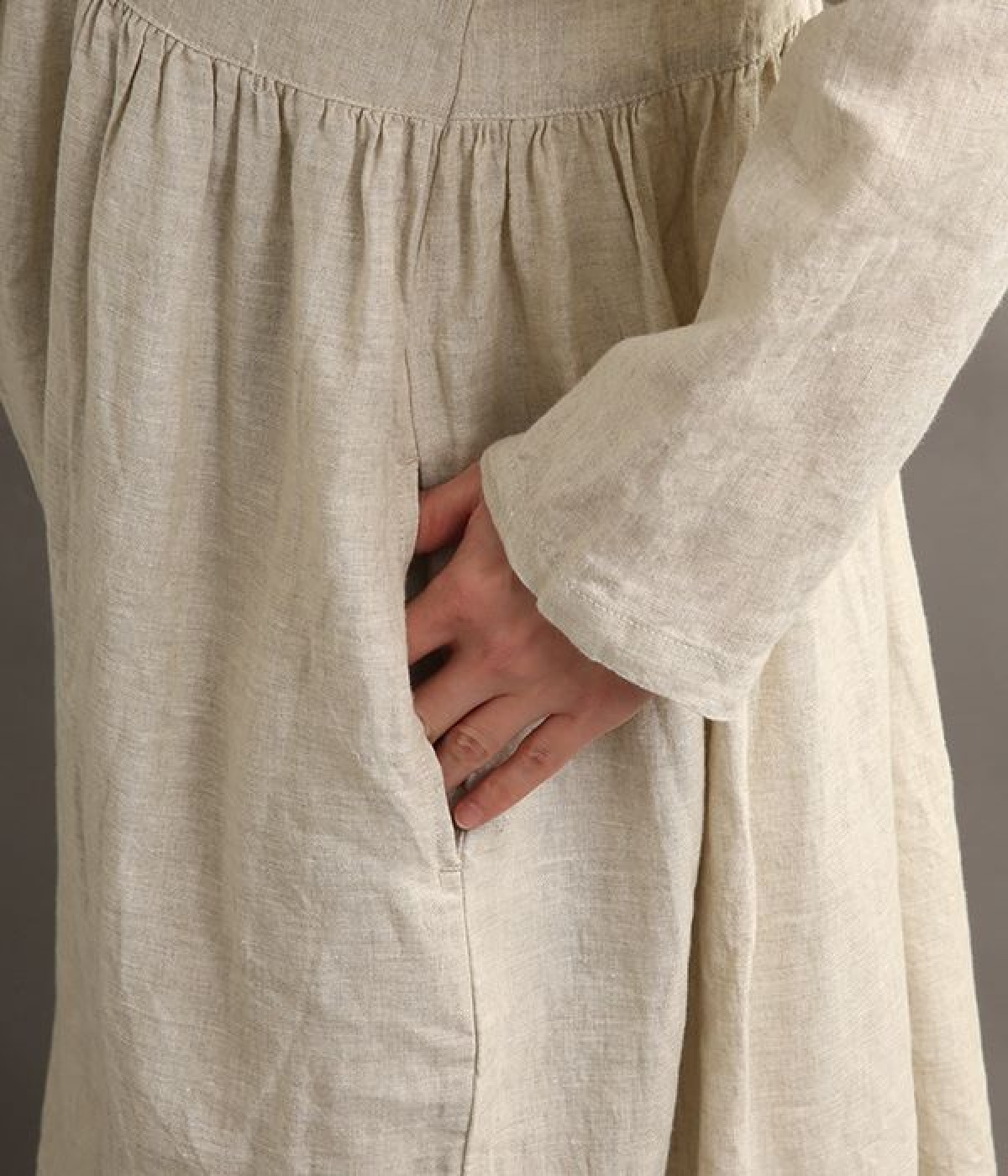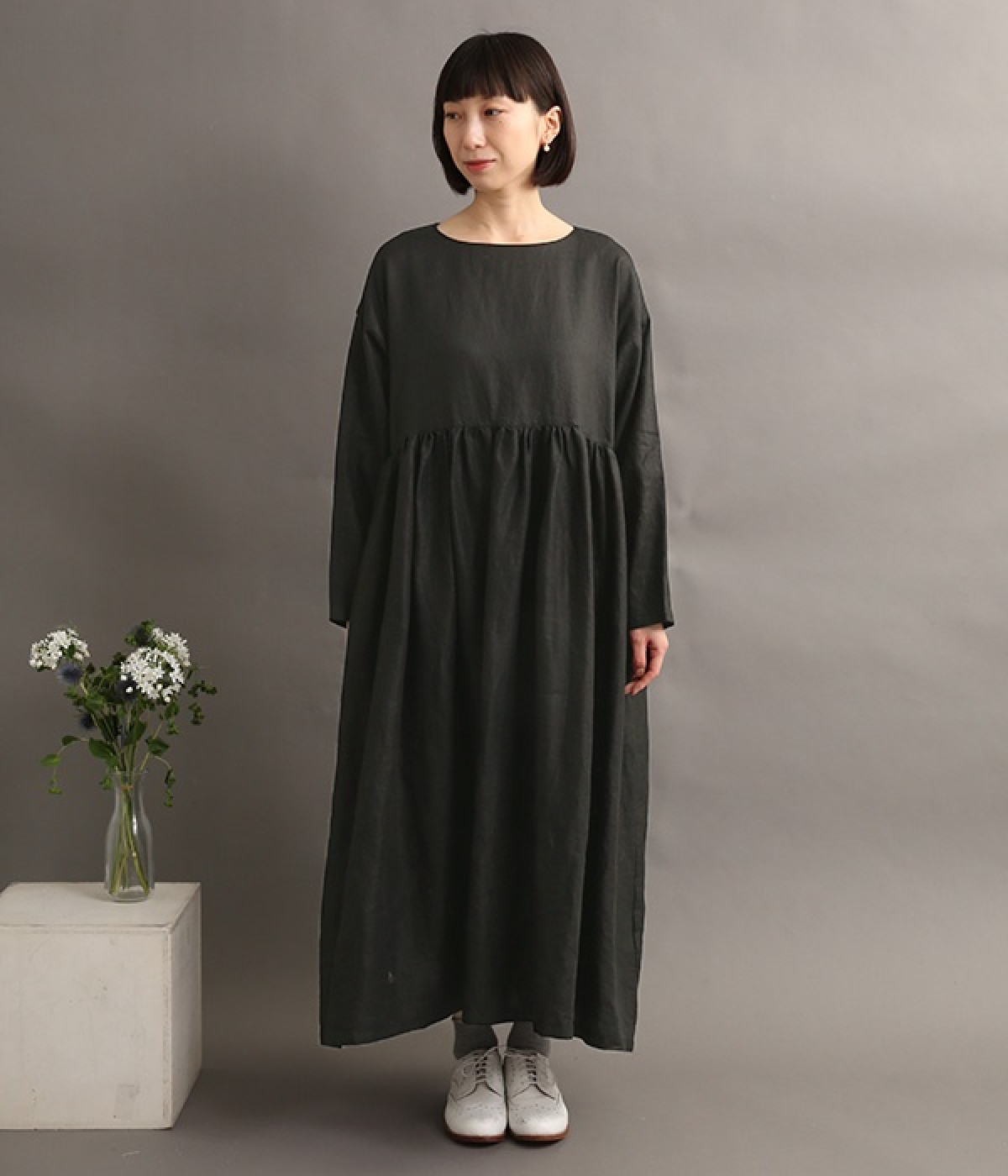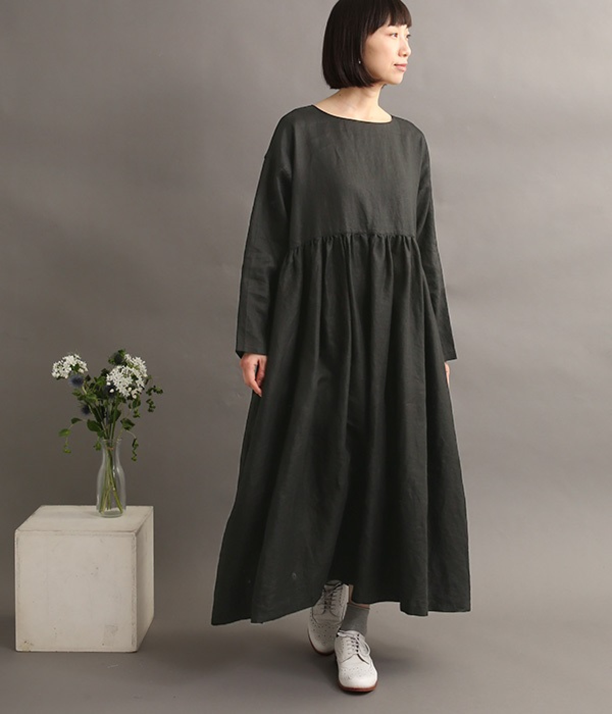 たっぷりと入ったウエストの切り替えギャザーが映えるワンピースです。裾にかけて広がるボリューミーなAラインシルエットは存在感があり、一枚でもサマになります。シンプルなデザインなのでアクセサリーなど小物類を組み合わせたり、羽織りものとレイヤードしたりとアレンジの幅も広がります。さらりとした肌触りを持つ軽やかな着心地のリネン素材と、明るい色みが季節感高まるコーディネートを演出。