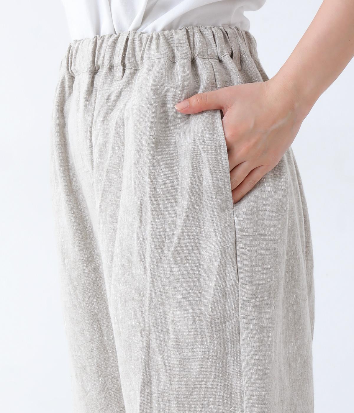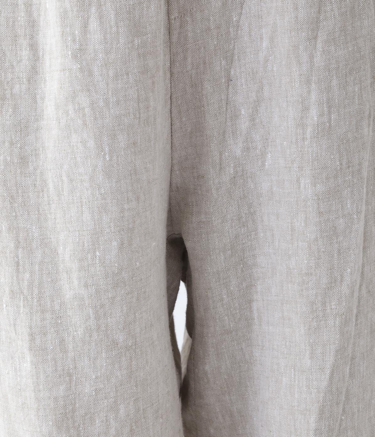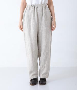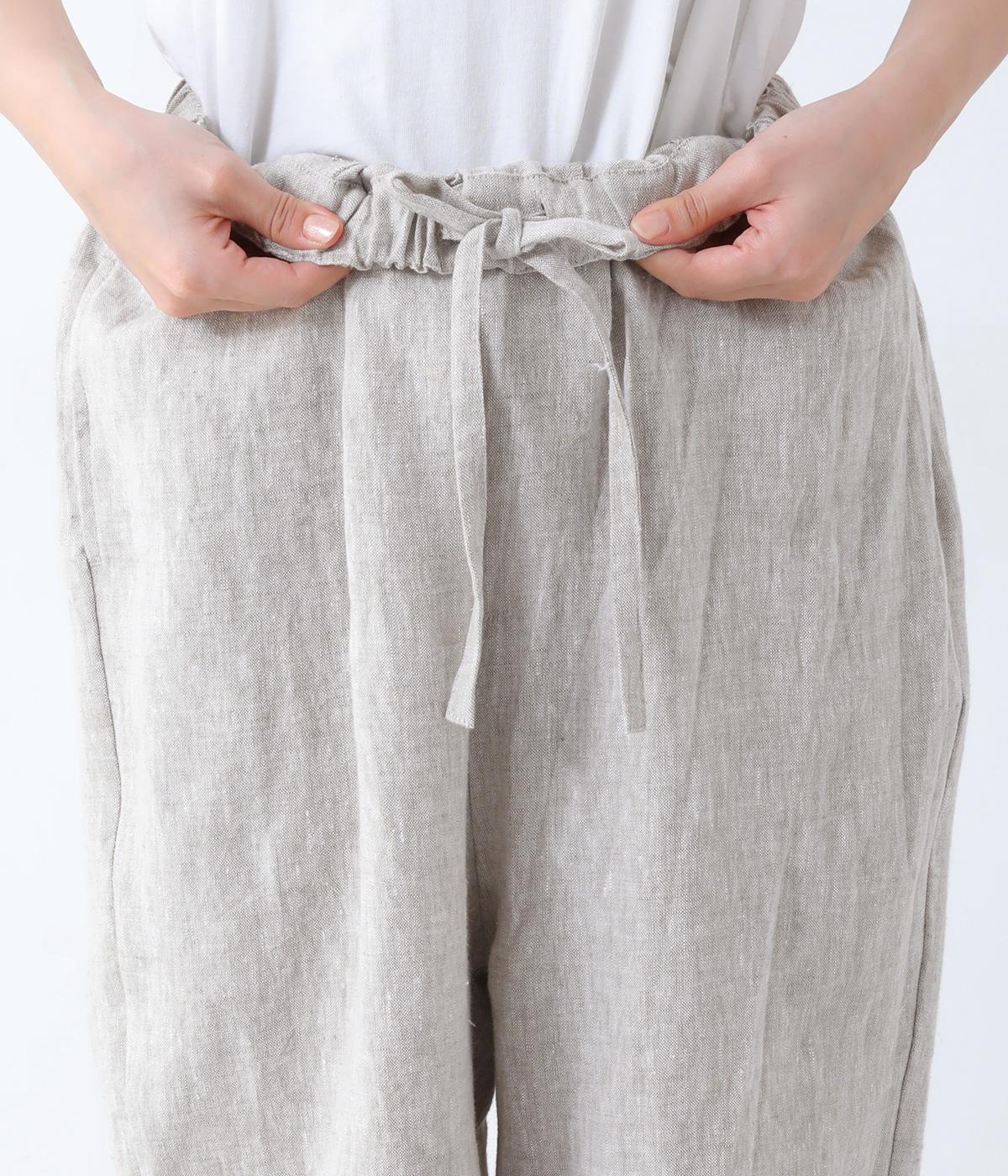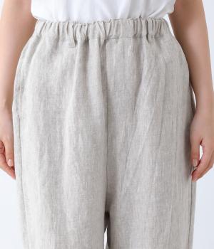 股上を深く設定し、ゆるっとリラックスして穿けるサルエルパンツ。リネン生地の自然な佇まいが映え、手抜き感のない大人ナチュラルなスタイルが完成します。体のラインをカバーしてくれるので、さまざまな着丈のトップスと好相性。ウエストは総ゴム仕様で、内側に紐を通しています。