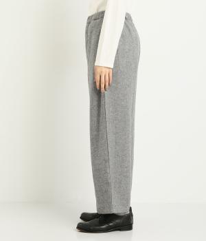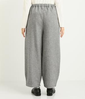 クラシカルテイストなツイード生地をバルーンシルエットでカジュアルテイストに落とし込みました。センターの切り替えラインがさり気なくタテラインをつくり、すっきり見えも両立。ウエストは安定感のある総ゴムに内紐入りです。
