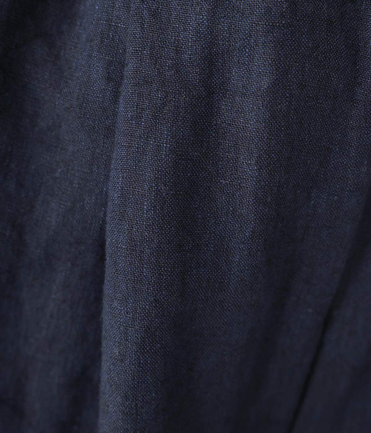 少し太い9番手のリネン糸で織り上げられた適度に厚みのあるしっかりとした生地感です。麻ならではの節の見えるナチュラルな表面感が魅力。とても軽くて通気性が良く、季節を問わずに快適に着用できます。