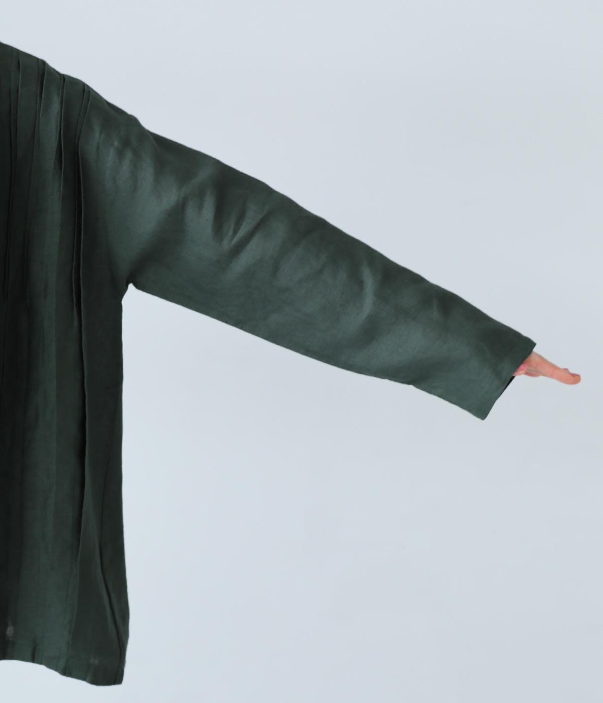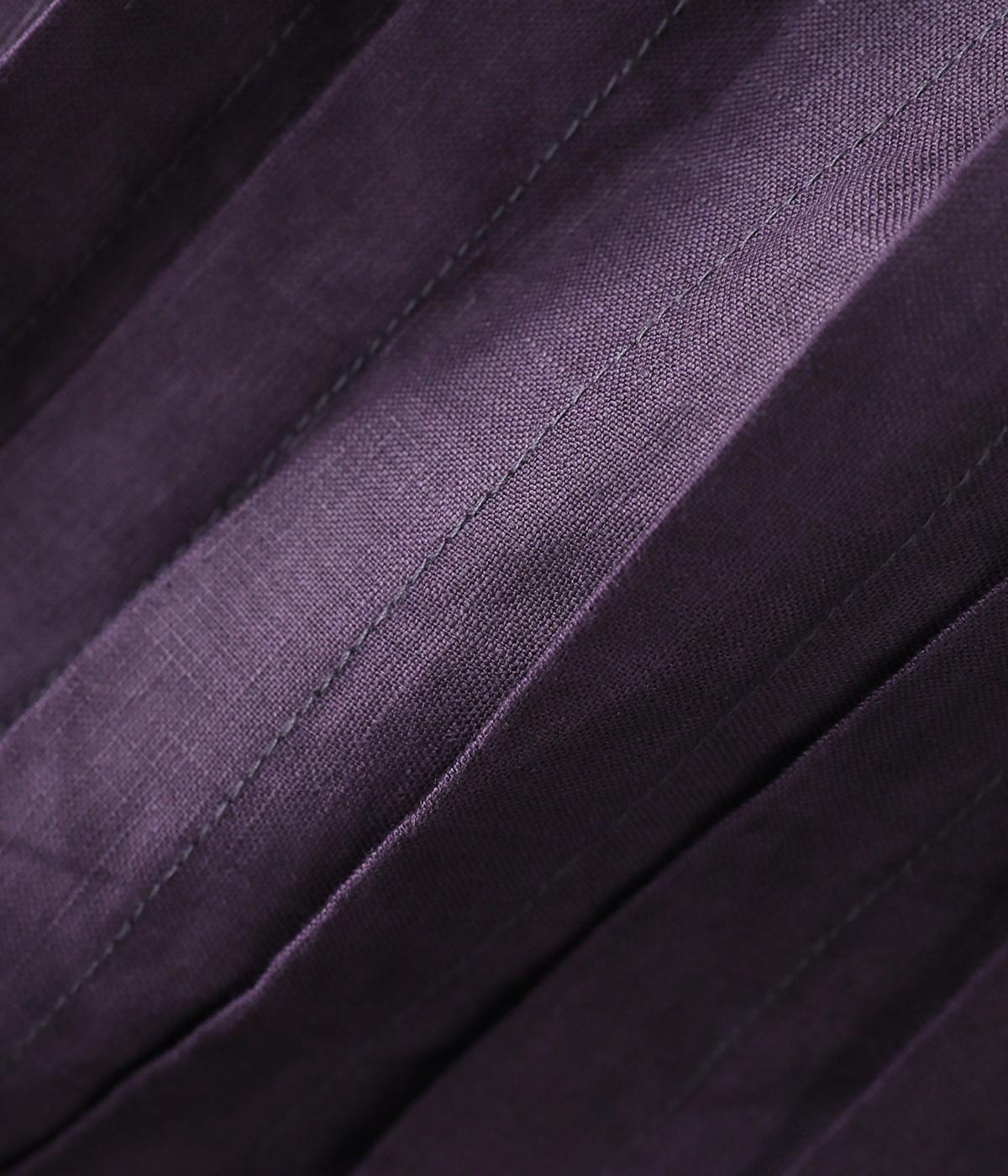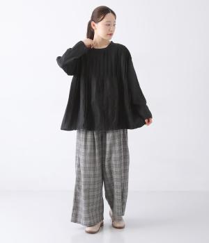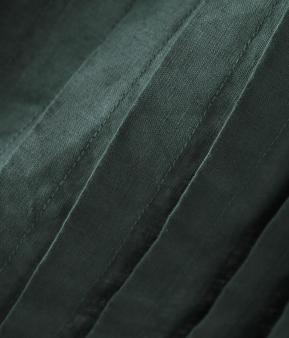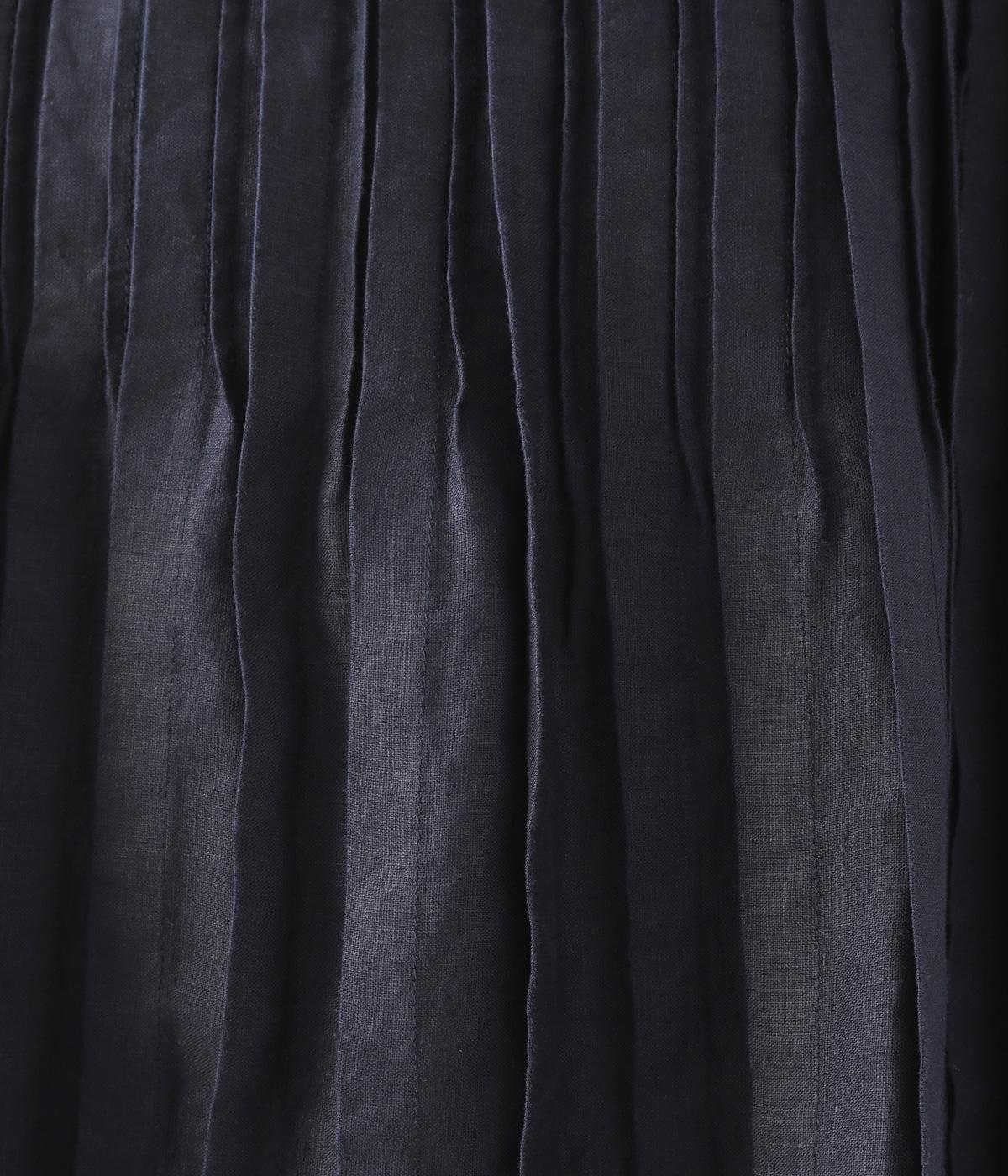 ナチュラルな佇まいのリネンブラウスに、巾違いのピンタックデザインで華やかさをプラス。風が通り抜けるようなふんわりシルエットも、縦ラインを強調するピンタックですっきりと見せています。着脱をアシストする、後ろネックのボタンもポイントです。