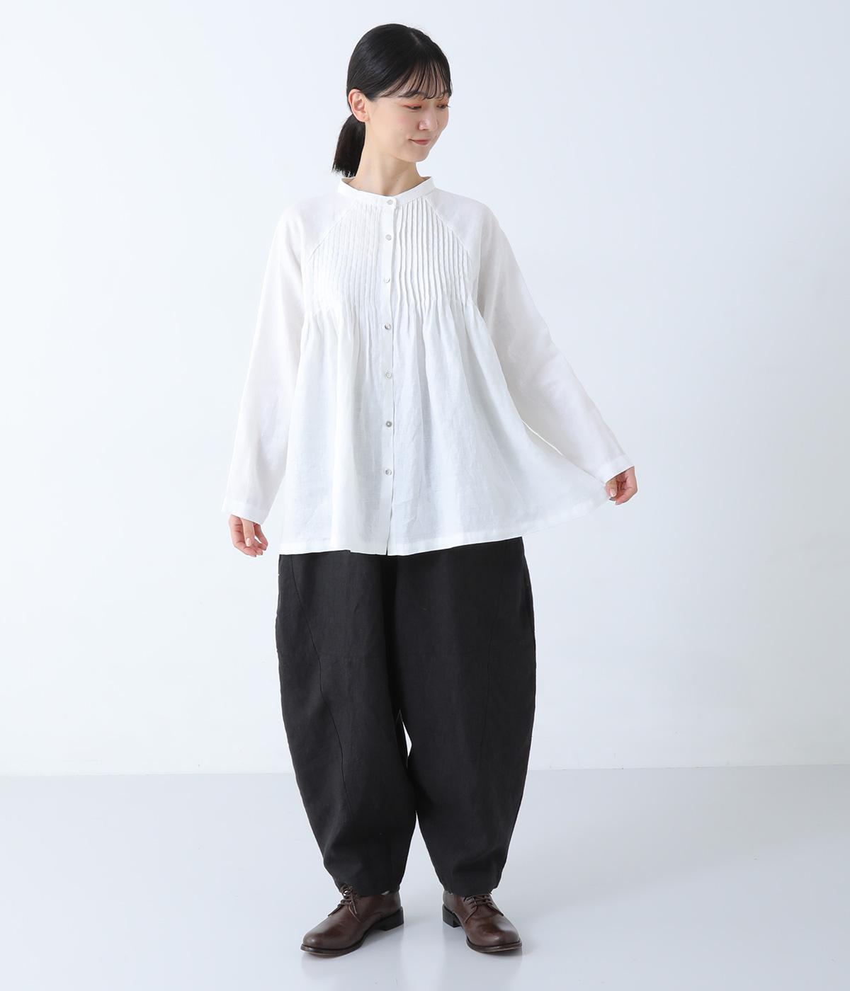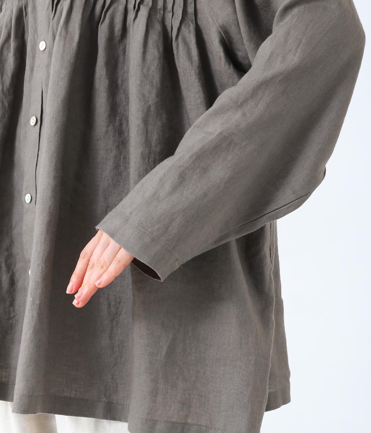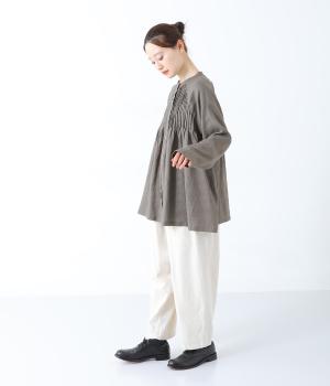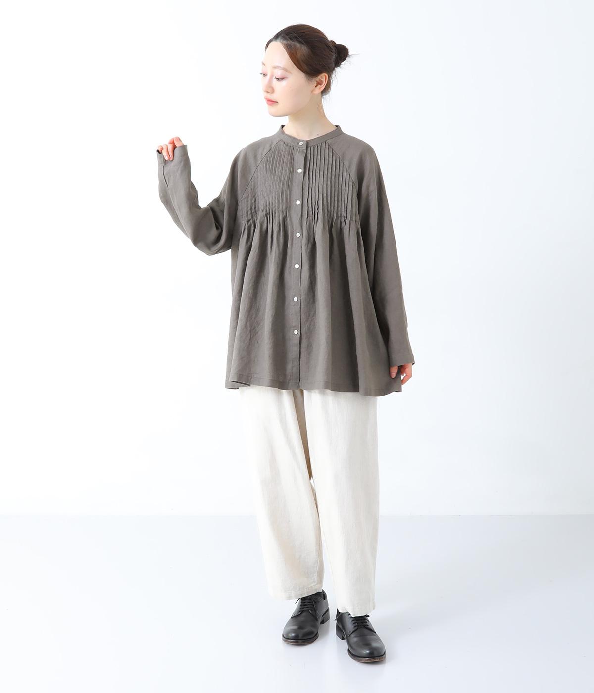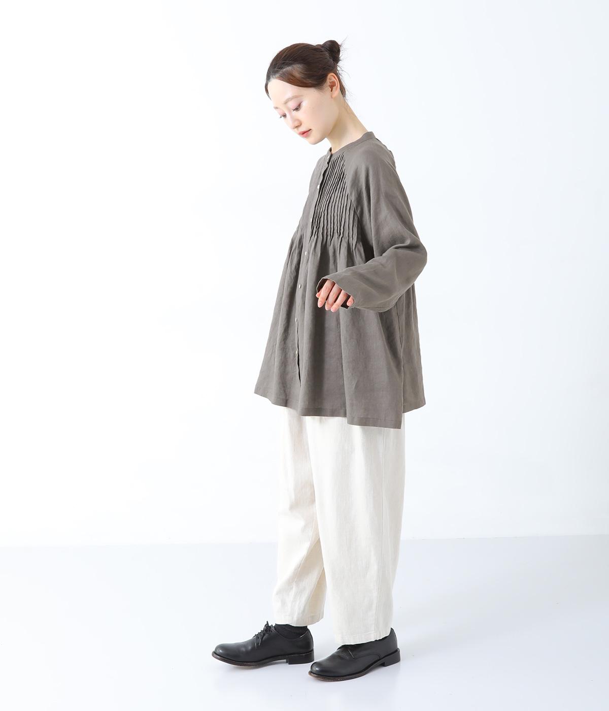 14番手のリネン糸を使用した、ロングシーズン活躍するほどよい厚みのある生地。ナチュラルかつ上品な見た目と、落ち感のあるやわらかな風合いが魅力です。