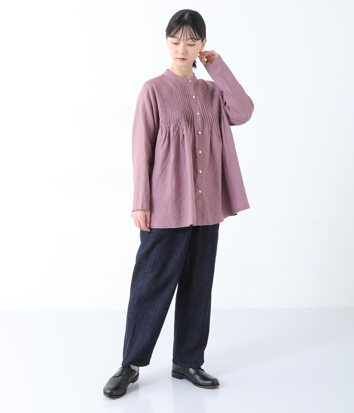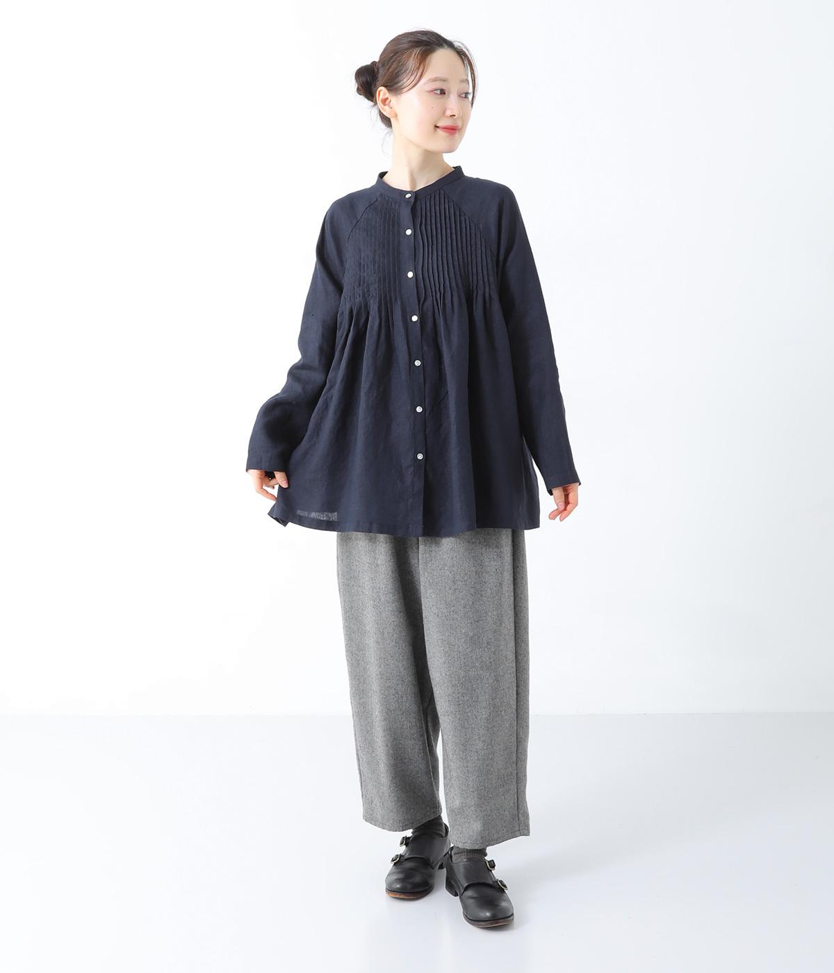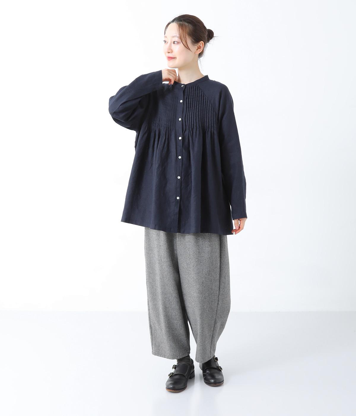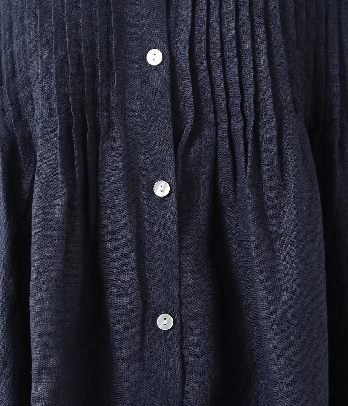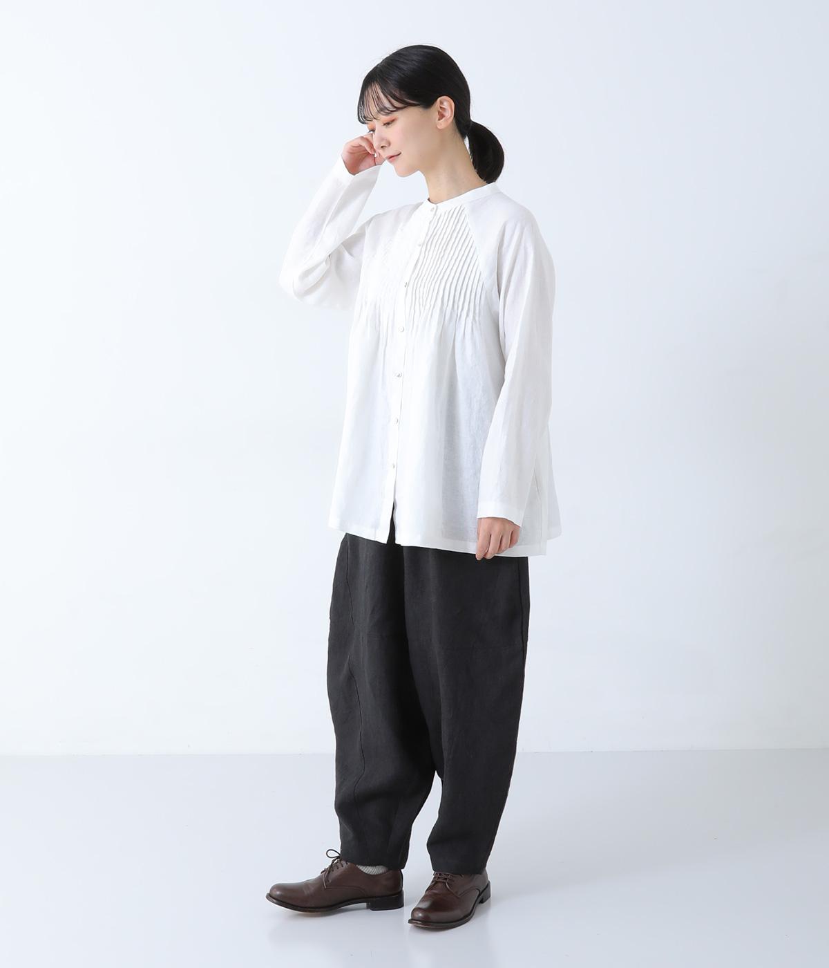 14番手のリネン糸を使用した、ロングシーズン活躍するほどよい厚みのある生地。ナチュラルかつ上品な見た目と、落ち感のあるやわらかな風合いが魅力です。