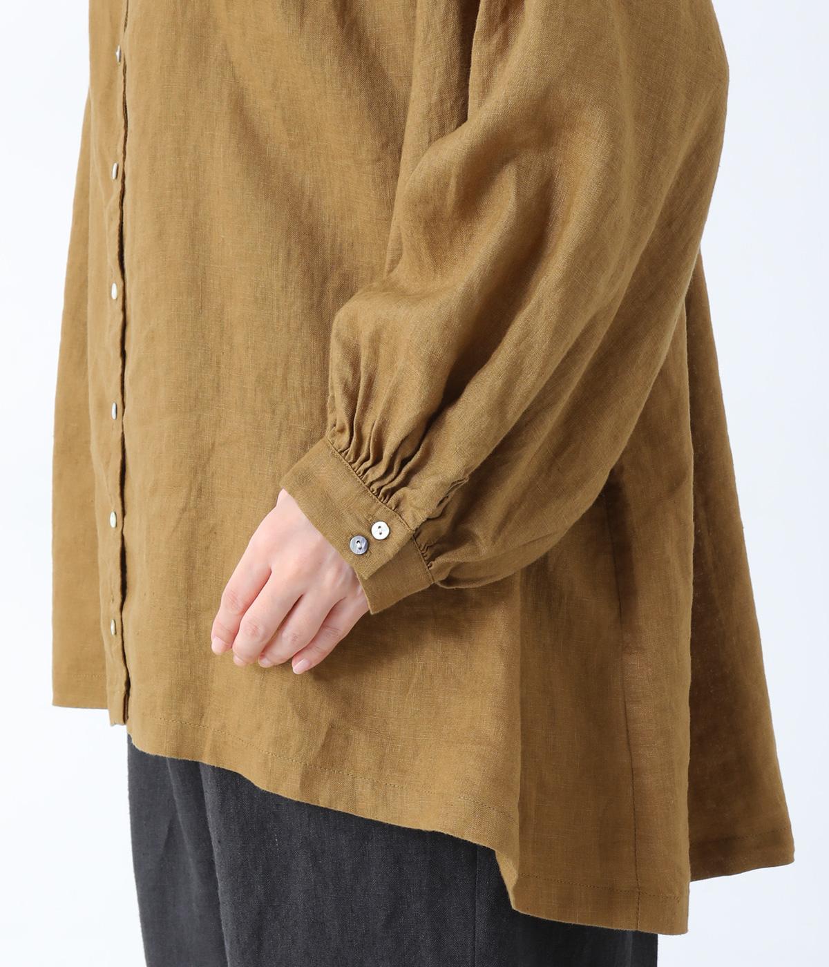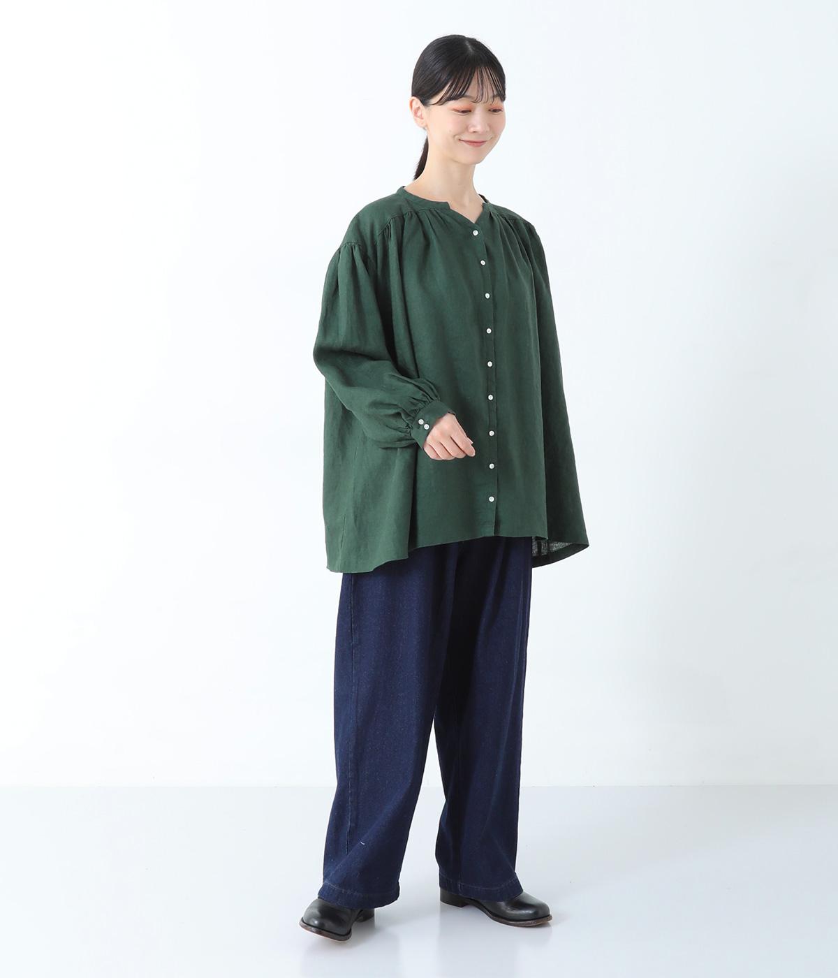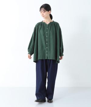 14番手のリネン糸を使用した、ロングシーズン活躍するほどよい厚みのある生地。ナチュラルかつ上品な見た目と、落ち感のあるやわらかな風合いが魅力です。