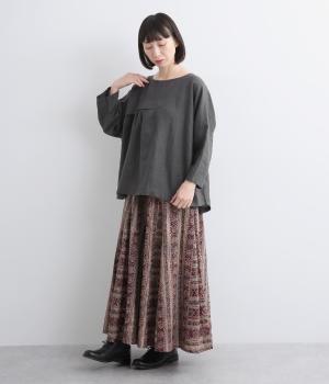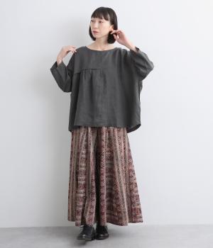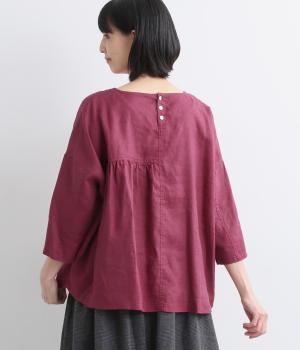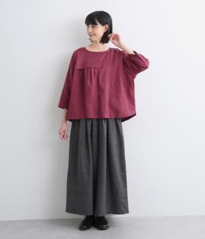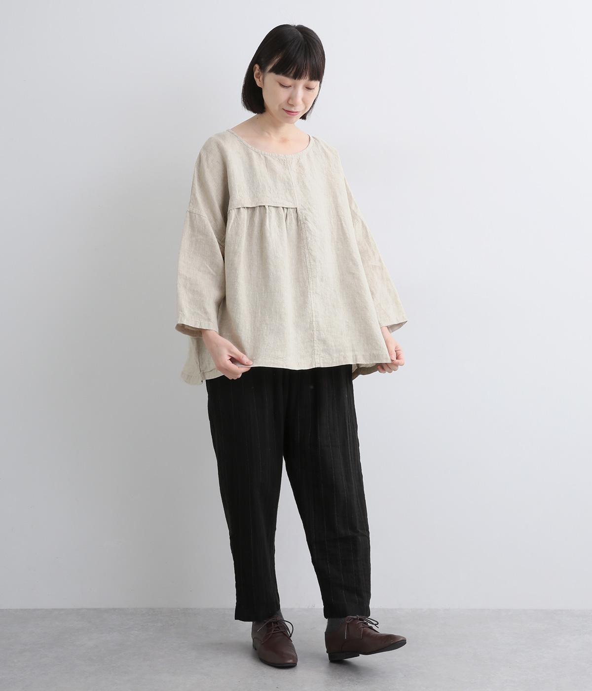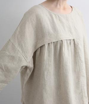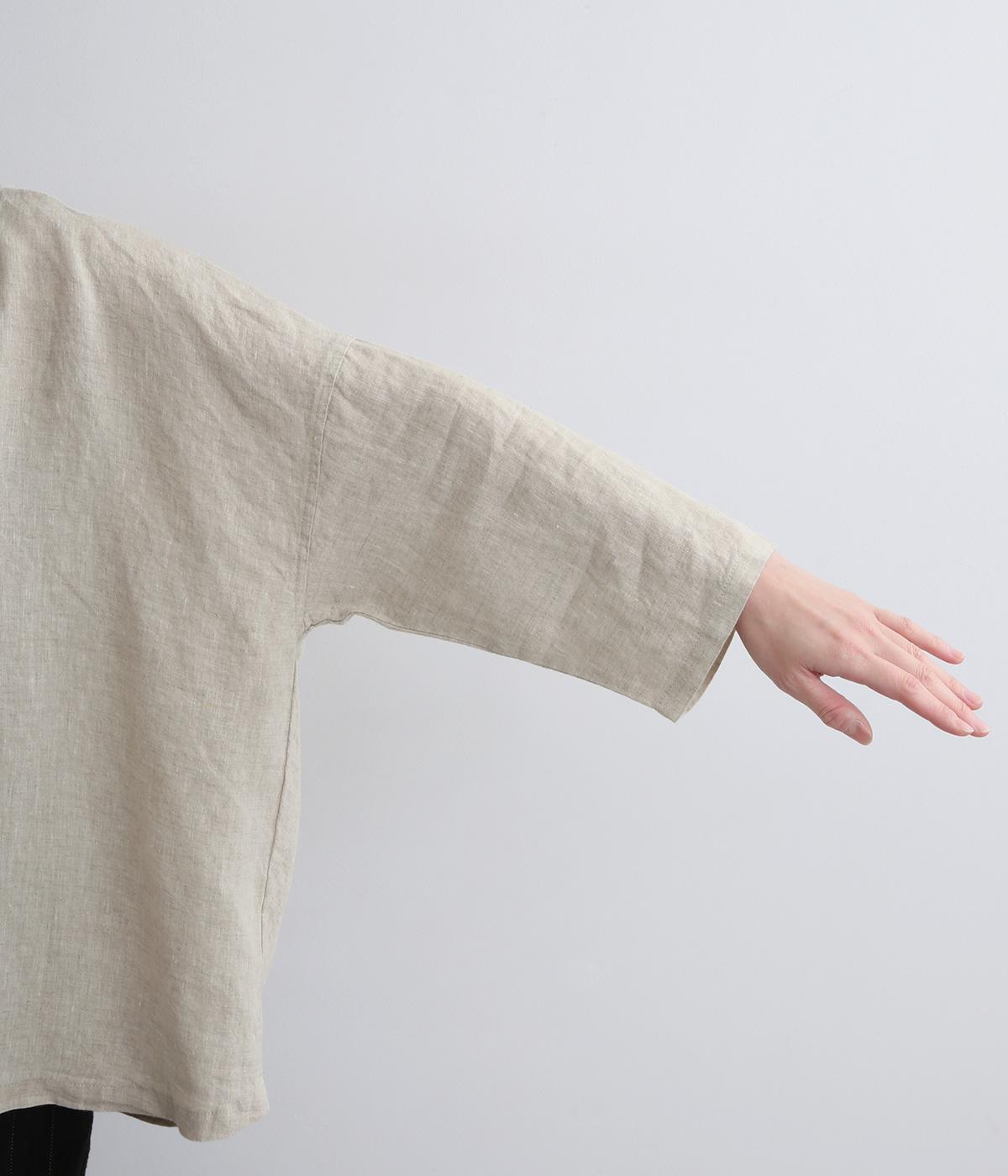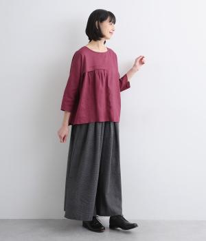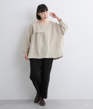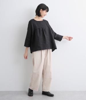 ほどよいシャリ感と、軽やかな着心地が特徴的なやや薄手のリネン素材です。着て洗うを繰り返すことで、やわらかさや風合いが増していくのも魅力に。