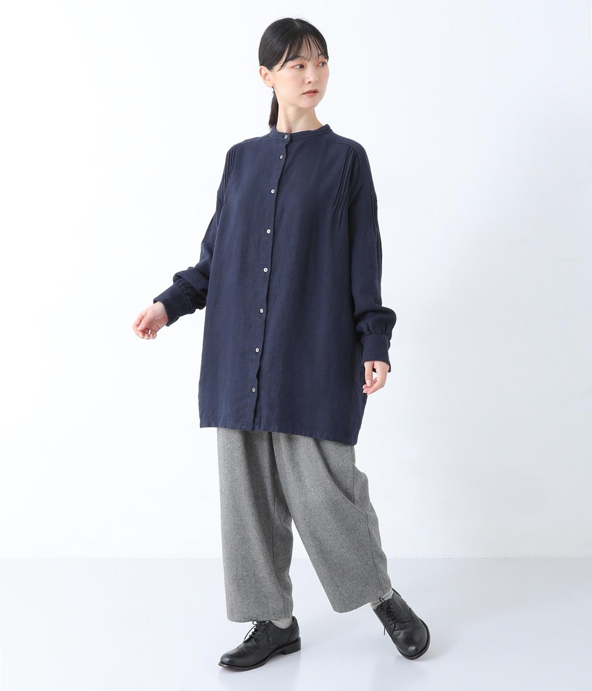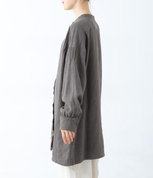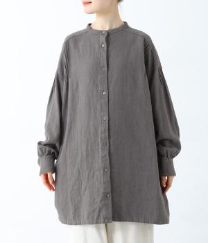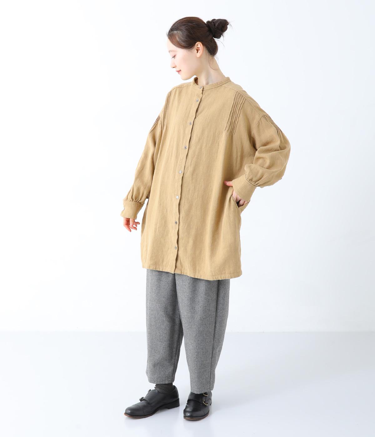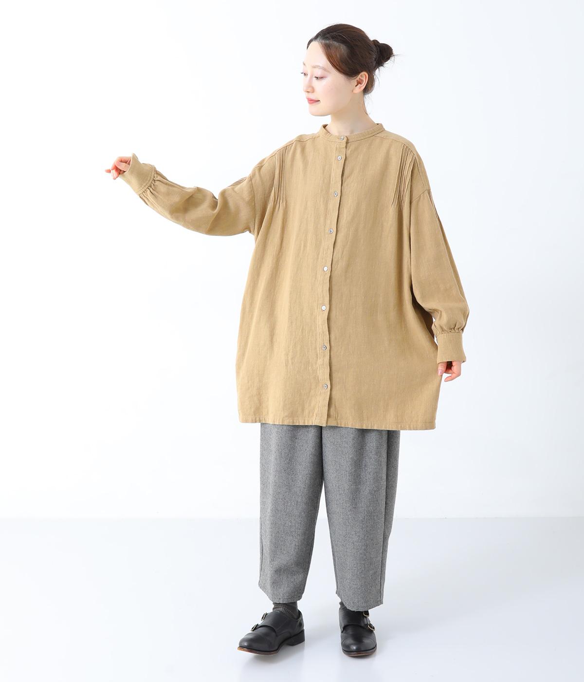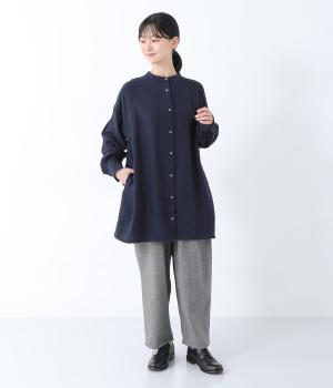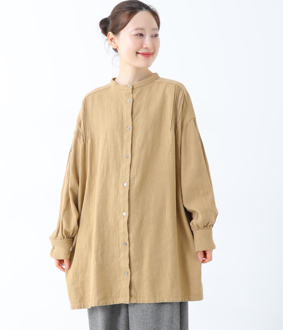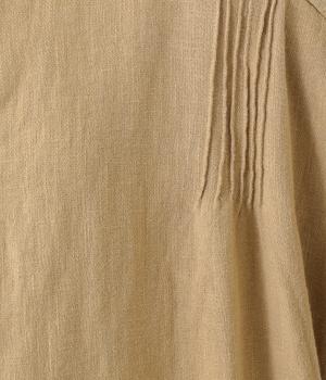 ナチュラルな生地感を引き立たせるシンプルなチュニック。肩と袖に控えめなピンタックをあしらい、さりげないアクセントにしています。ゆったりと長めにデザインした袖がこなれ感を演出。サイドにはポケットを配して実用性を高めました。
