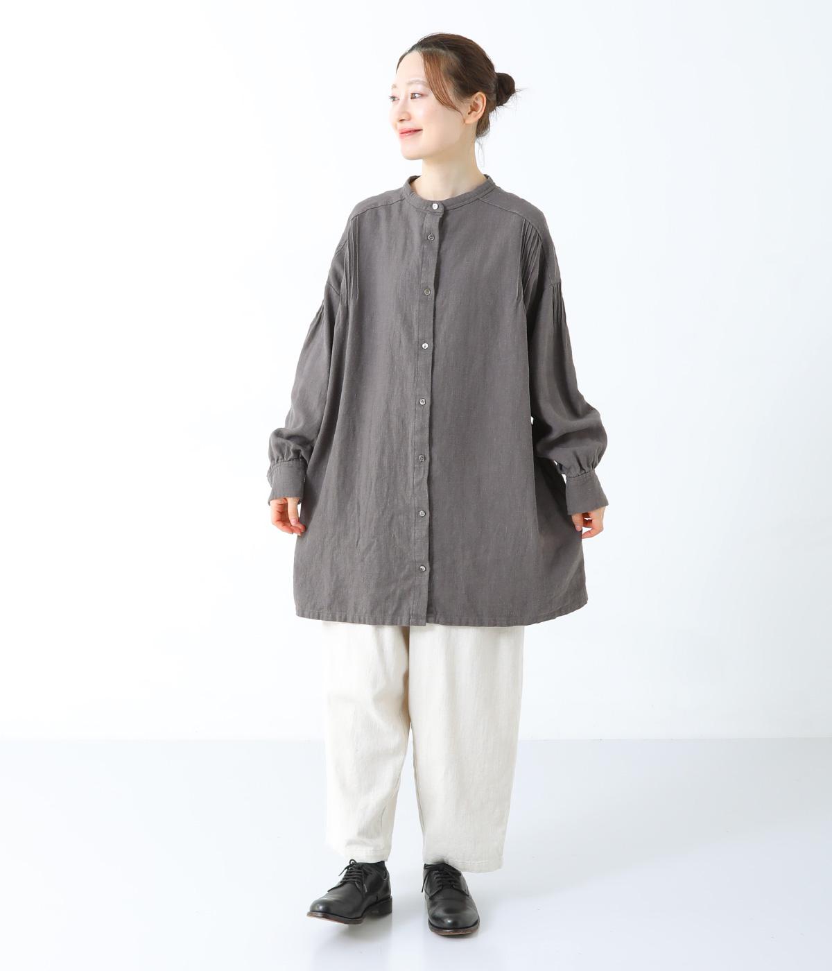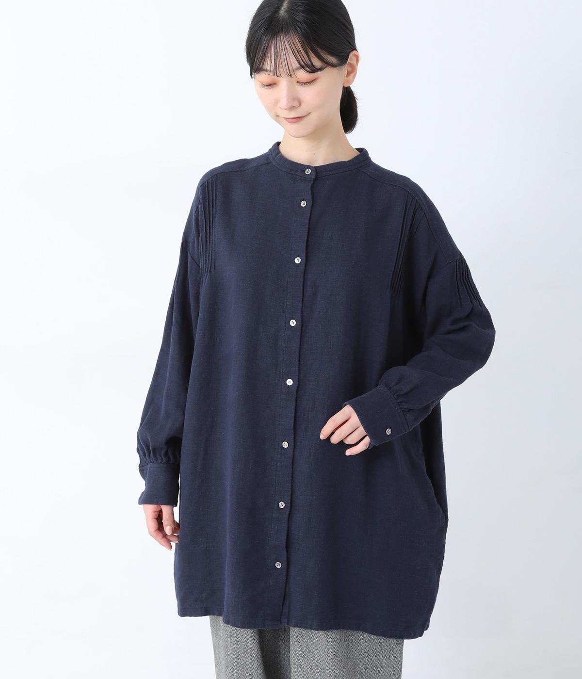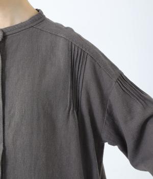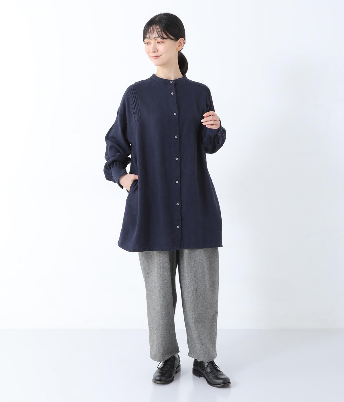 ナチュラルな生地感を引き立たせるシンプルなチュニック。肩と袖に控えめなピンタックをあしらい、さりげないアクセントにしています。ゆったりと長めにデザインした袖がこなれ感を演出。サイドにはポケットを配して実用性を高めました。
