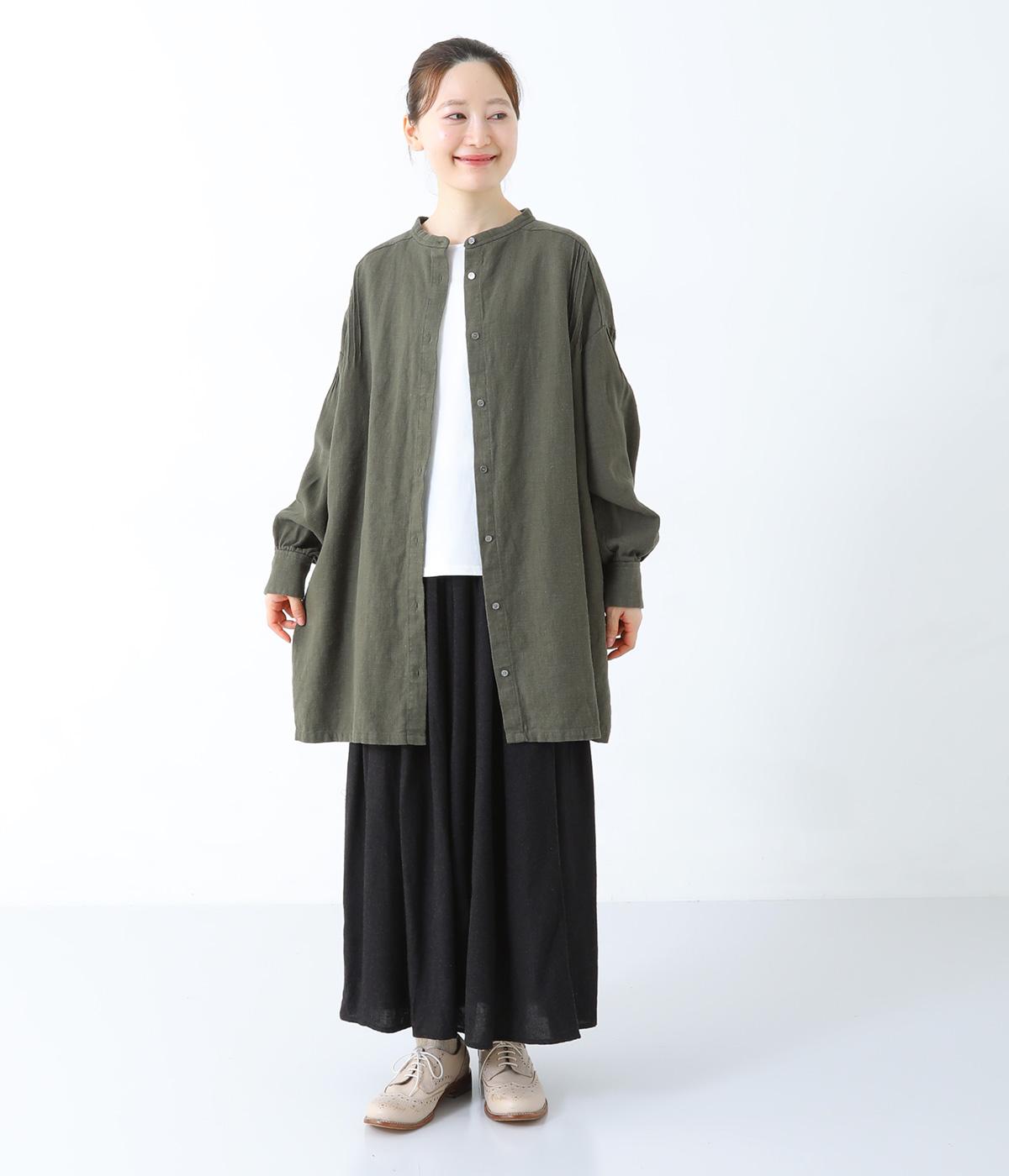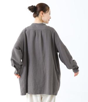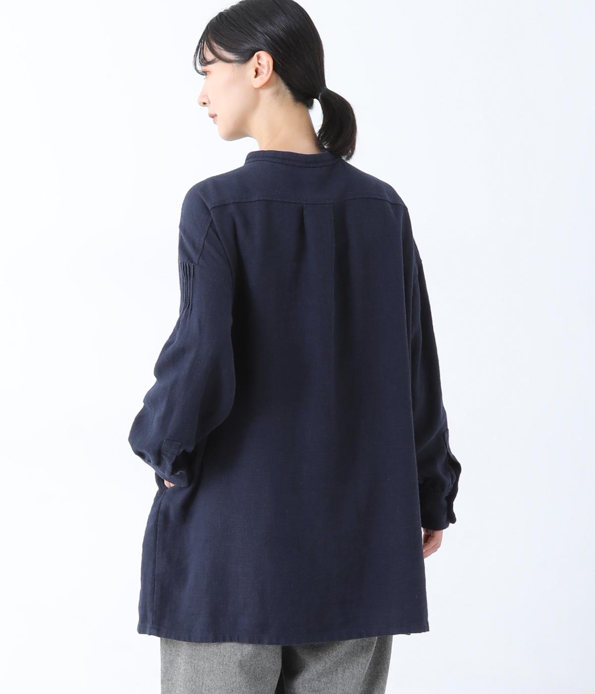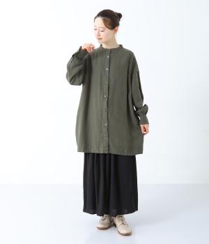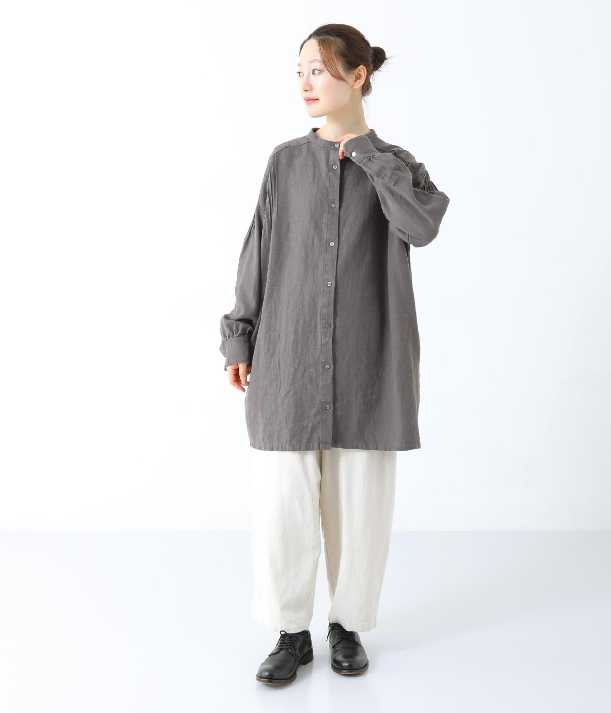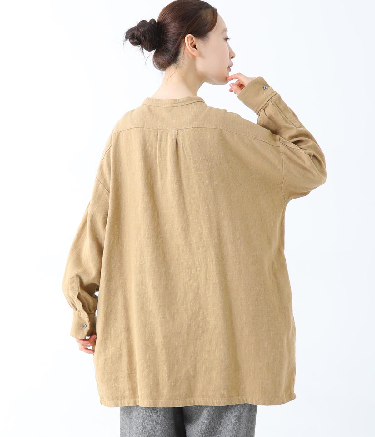 ナチュラルな生地感を引き立たせるシンプルなチュニック。肩と袖に控えめなピンタックをあしらい、さりげないアクセントにしています。ゆったりと長めにデザインした袖がこなれ感を演出。サイドにはポケットを配して実用性を高めました。