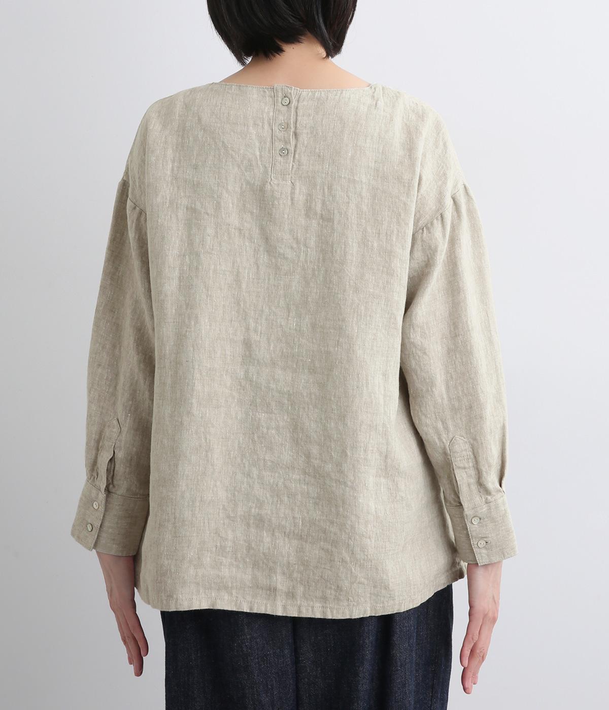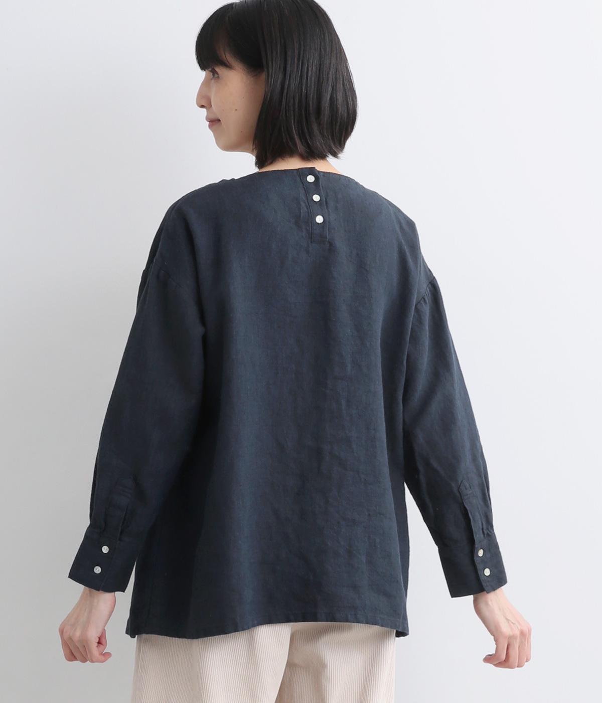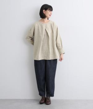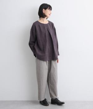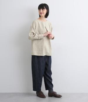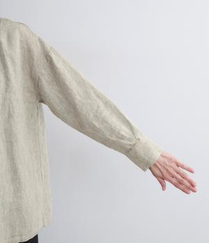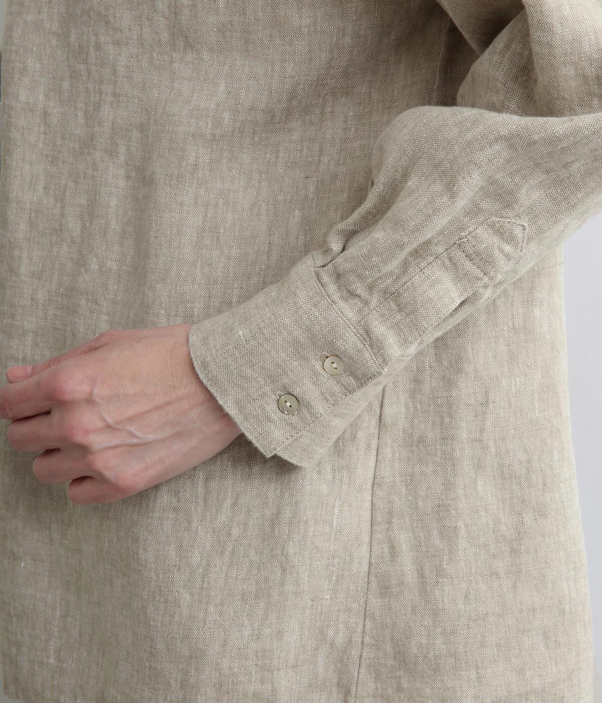 くったりとやわらかい、やや厚手の9番手リネンを使用しました。着込むほどに色合いや風合いが増す、経年変化が楽しめるのも特徴です。