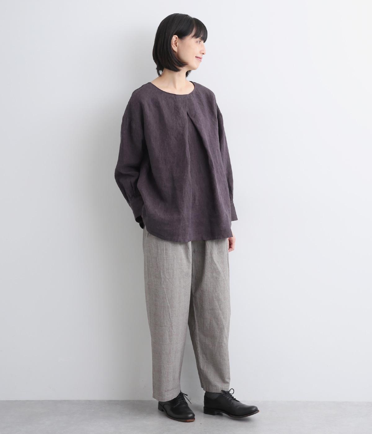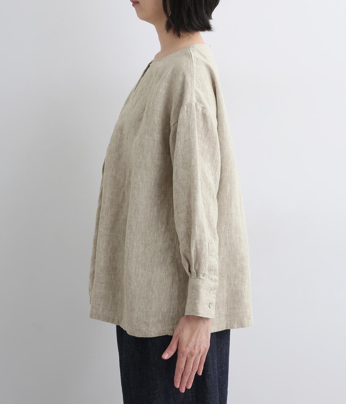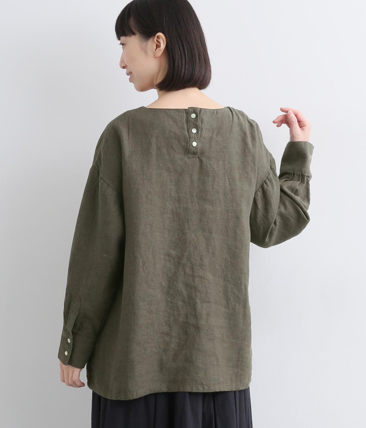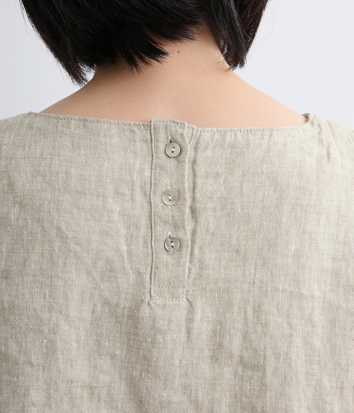 くったりとやわらかい、やや厚手の9番手リネンを使用しました。着込むほどに色合いや風合いが増す、経年変化が楽しめるのも特徴です。