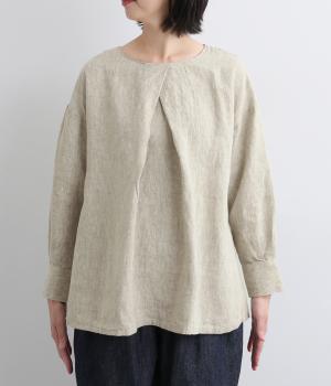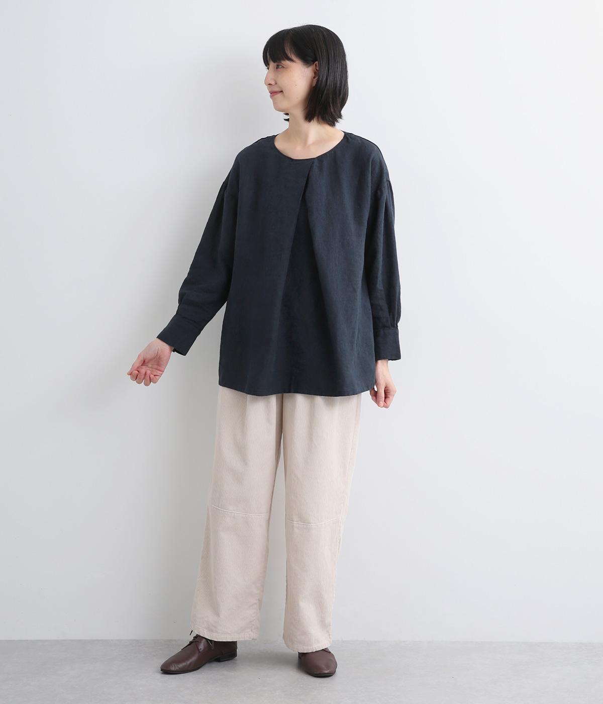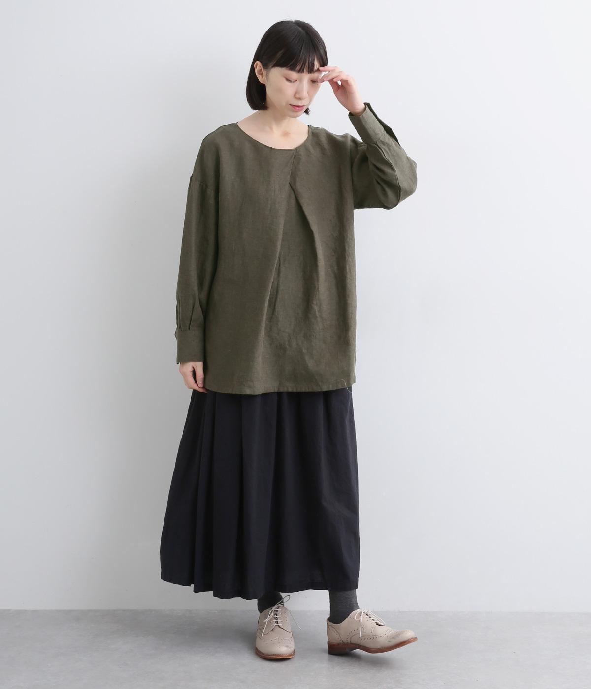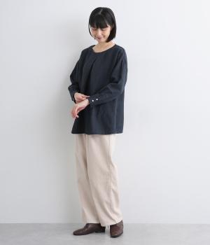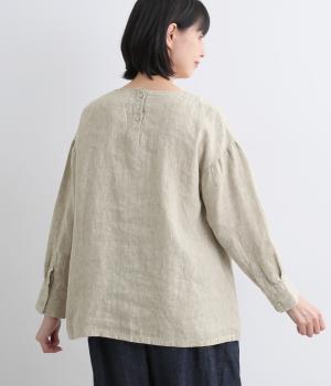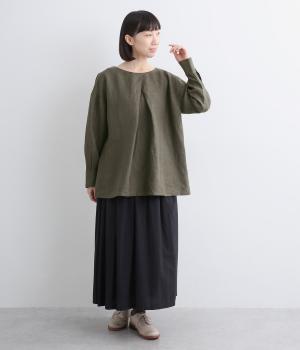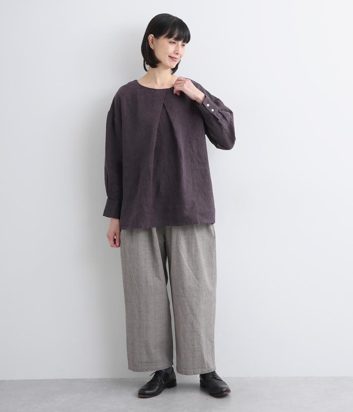 くったりとやわらかい、やや厚手の9番手リネンを使用しました。着込むほどに色合いや風合いが増す、経年変化が楽しめるのも特徴です。