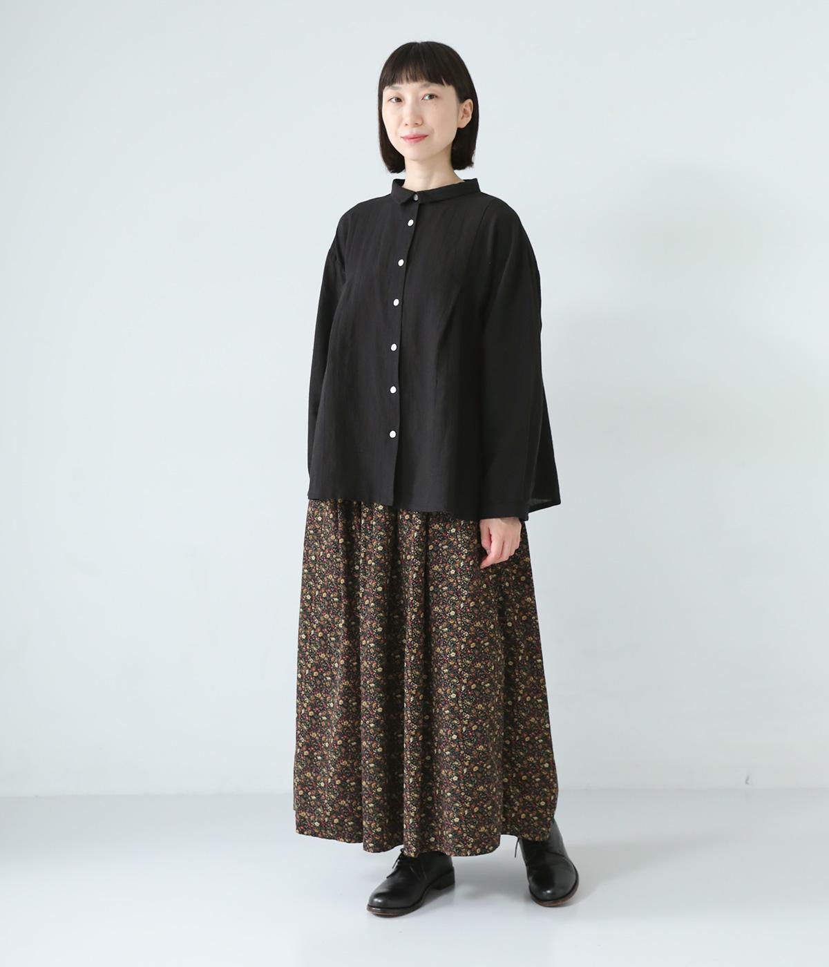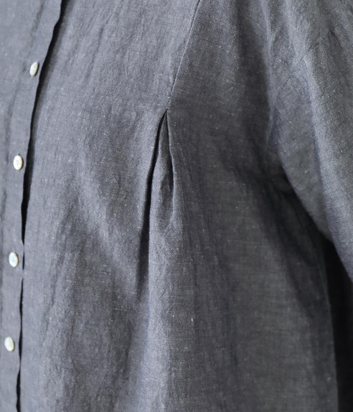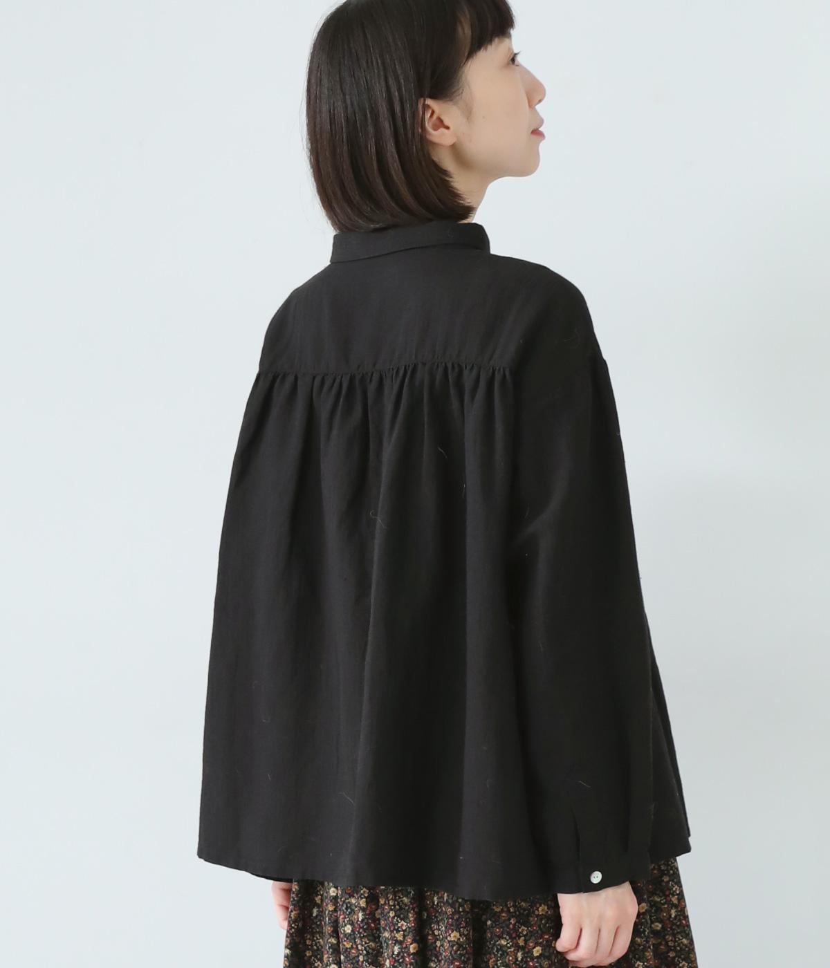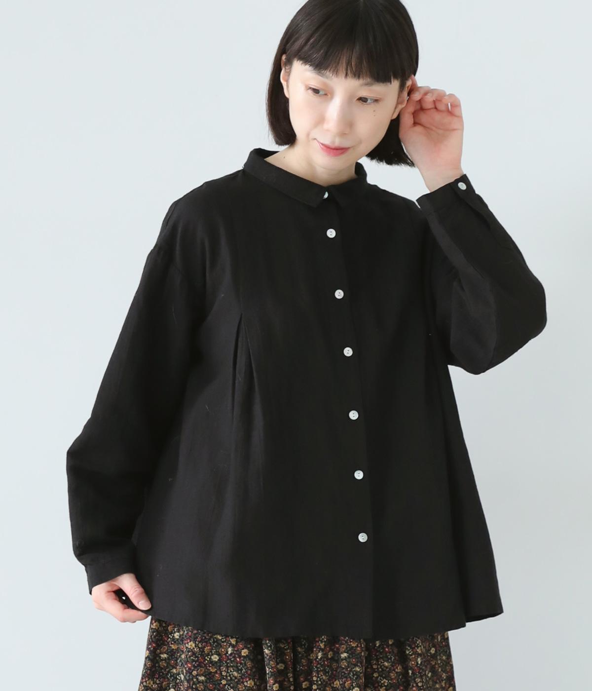 小さく控えめにデザインした襟が品のよさを漂わせるシャツ。前身頃にタックを、後ろには細かなギャザーをあしらって、ふんわりとした女性らしいシルエットに仕上げました。ややコンパクトな着丈ですっきりとしたバランスに。シンプルながらも細かなディテールにこだわりを感じる一着です。