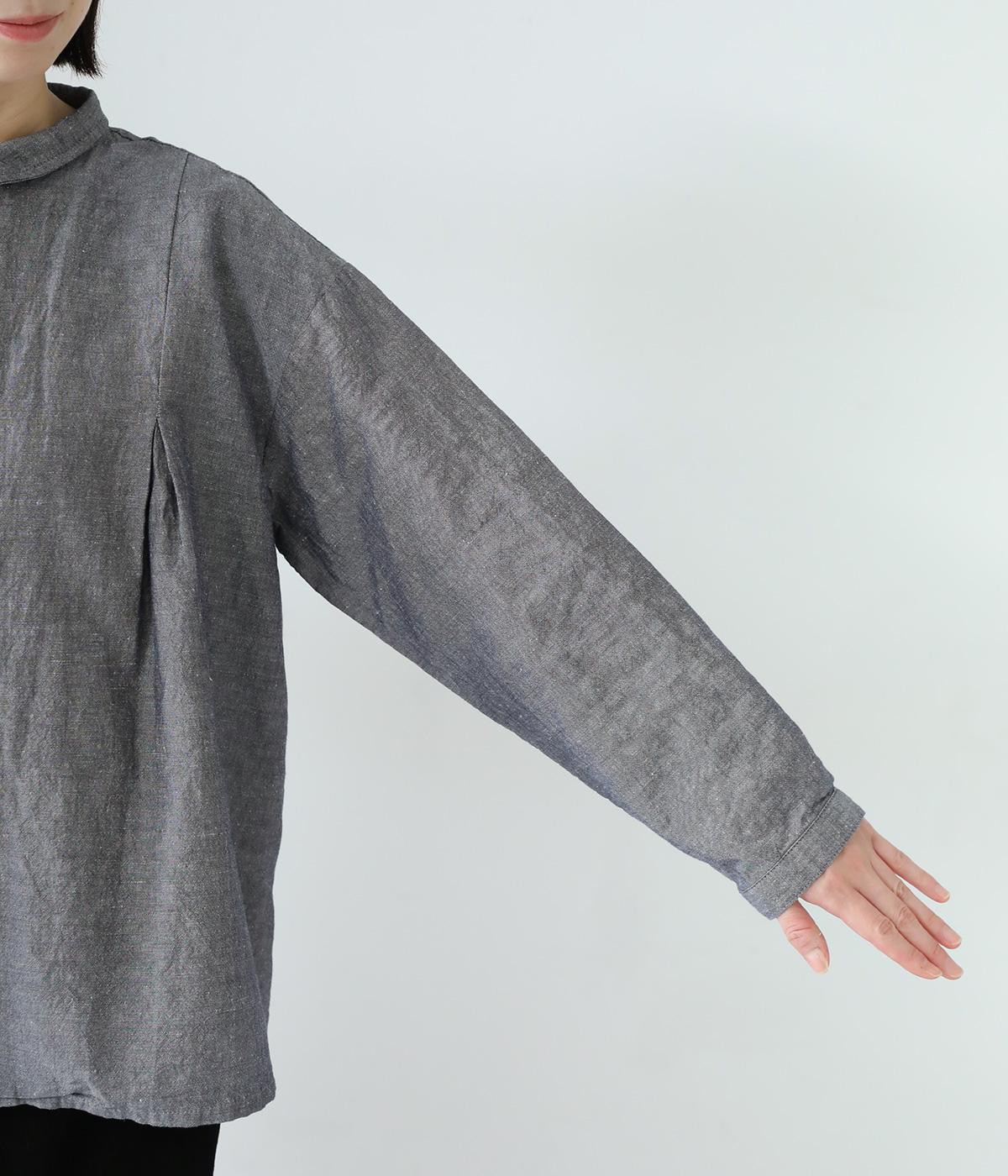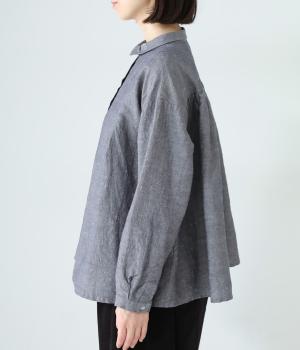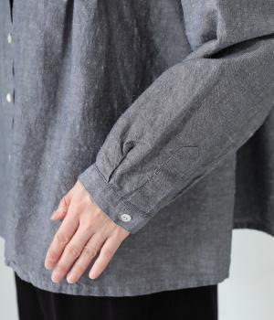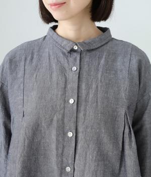 表面にネップの見えるナチュラルな佇まいと、ハリのある軽やかな風合いが魅力のコットンリネン生地。ニットやジャケットのインナーにも合わせやすいやや薄手の素材感です。