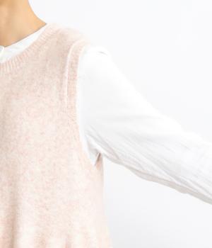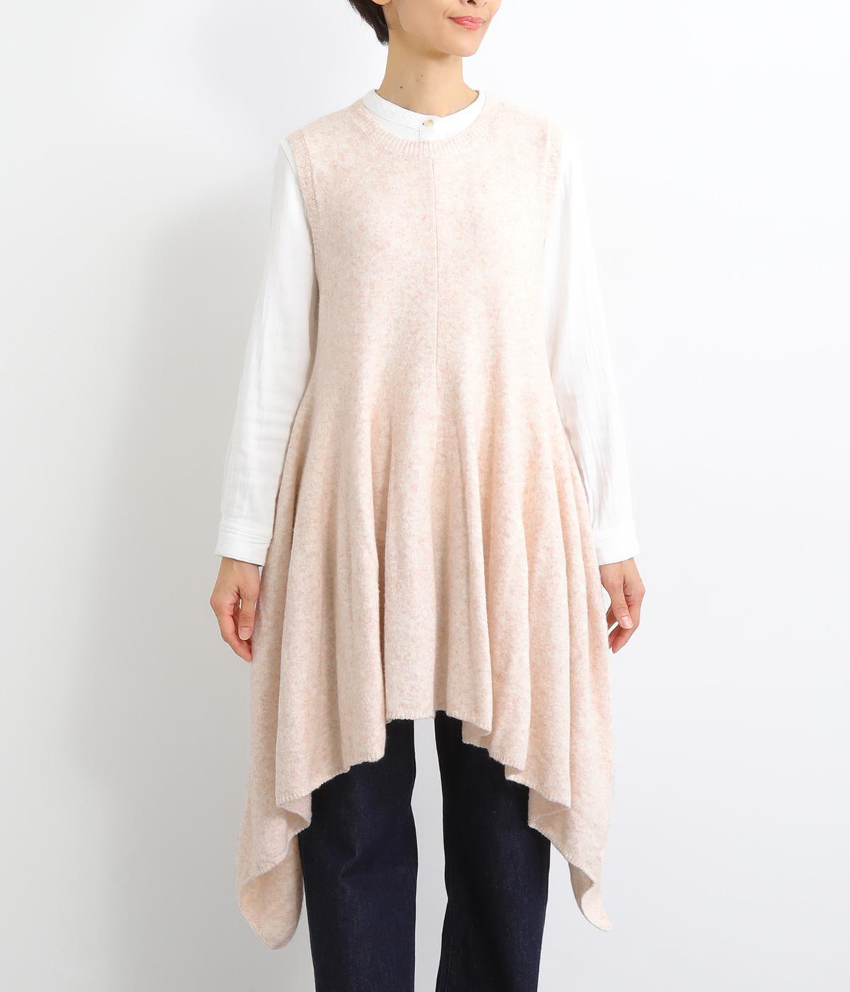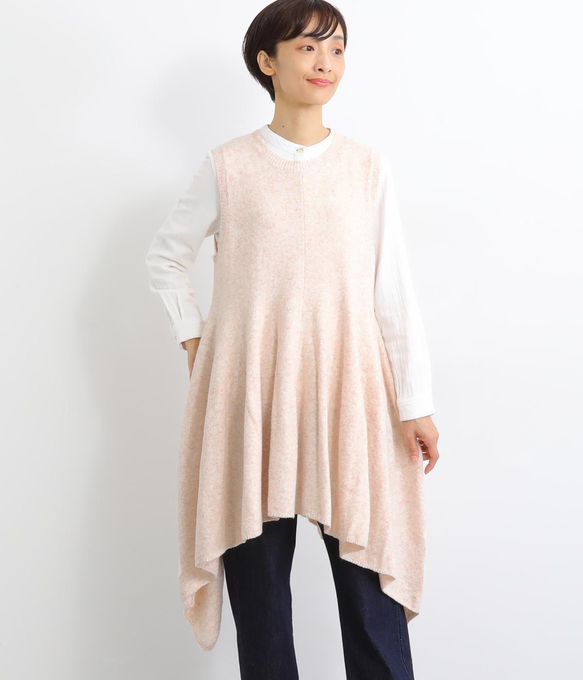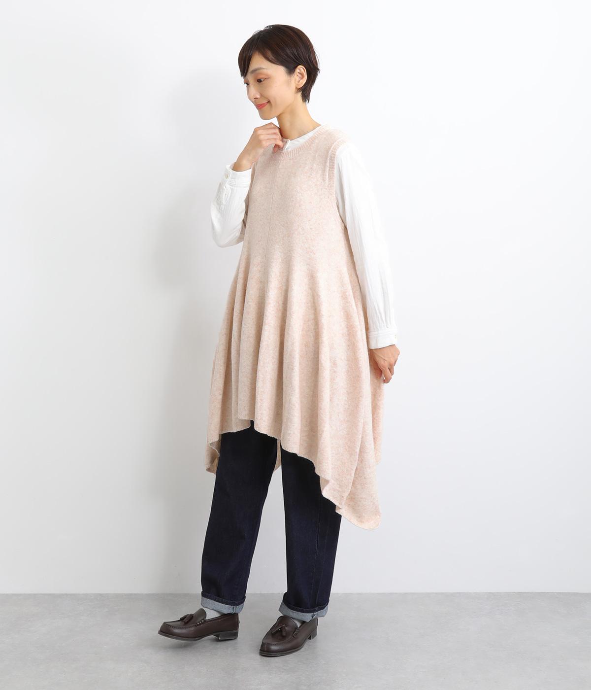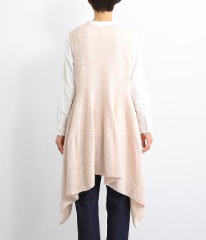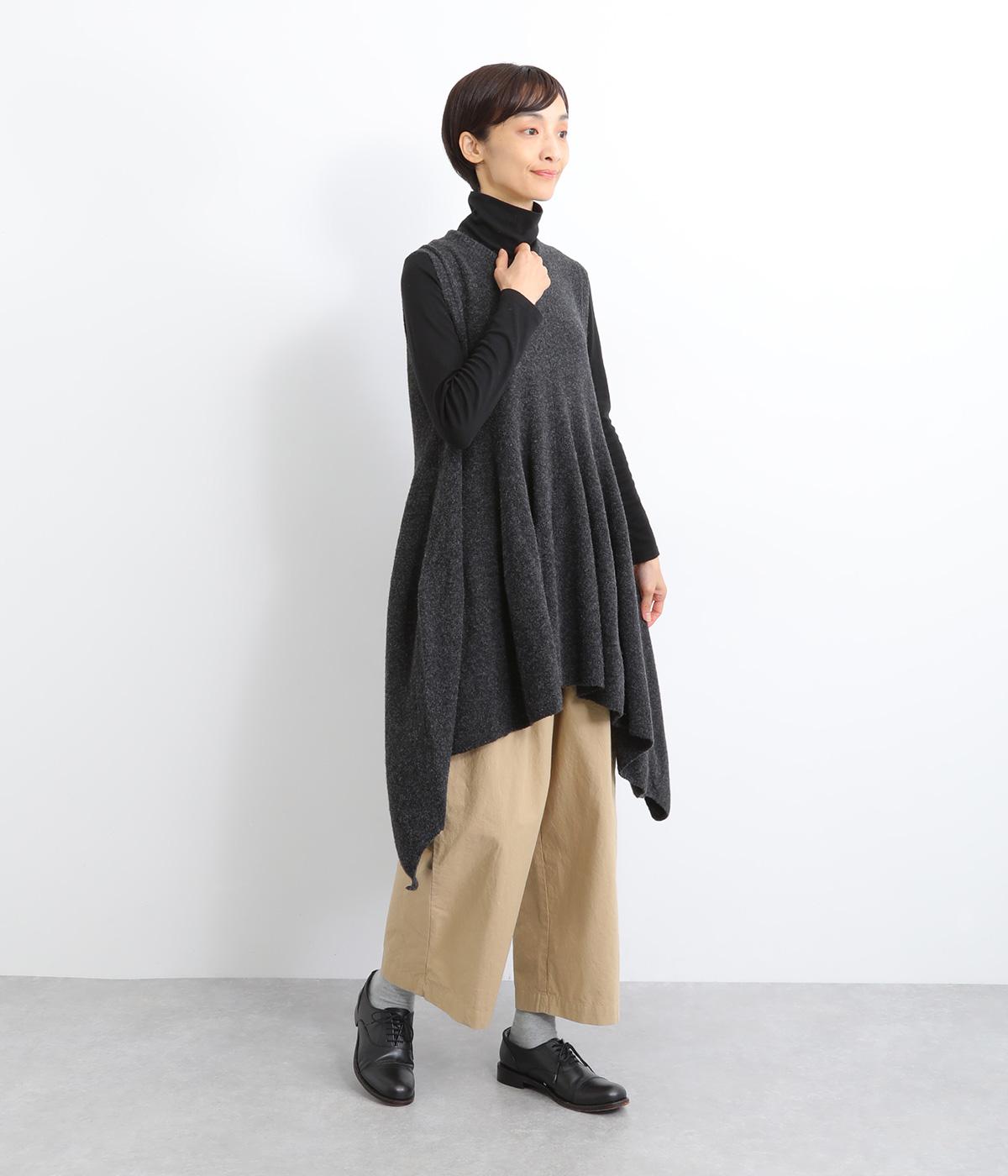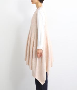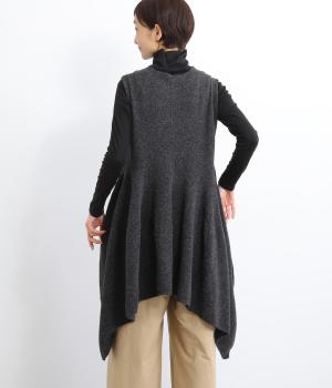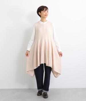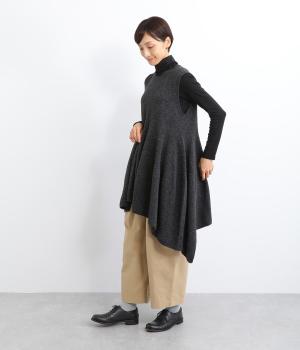 上はすっきりと、ウエストから下はドレープと共にふわりと広げたメリハリのあるシルエットが魅力です。両サイドの長い着丈がAラインを強調して着こなしを優雅に印象づけ。女性らしさが際立つ新鮮なレイヤードスタイルをたのしめます。