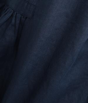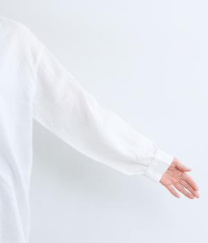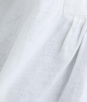 14番手リネン糸を使用した、ほどよい厚みとタフさが特徴の生地。麻ならではのハリコシがありながらも、着込むほどにくったりとしたやわらかな風合いに変化します。