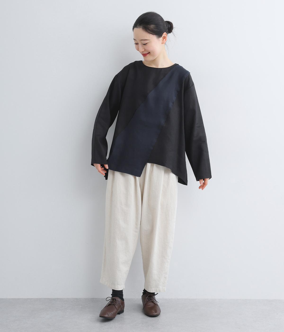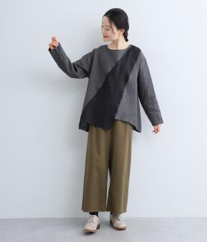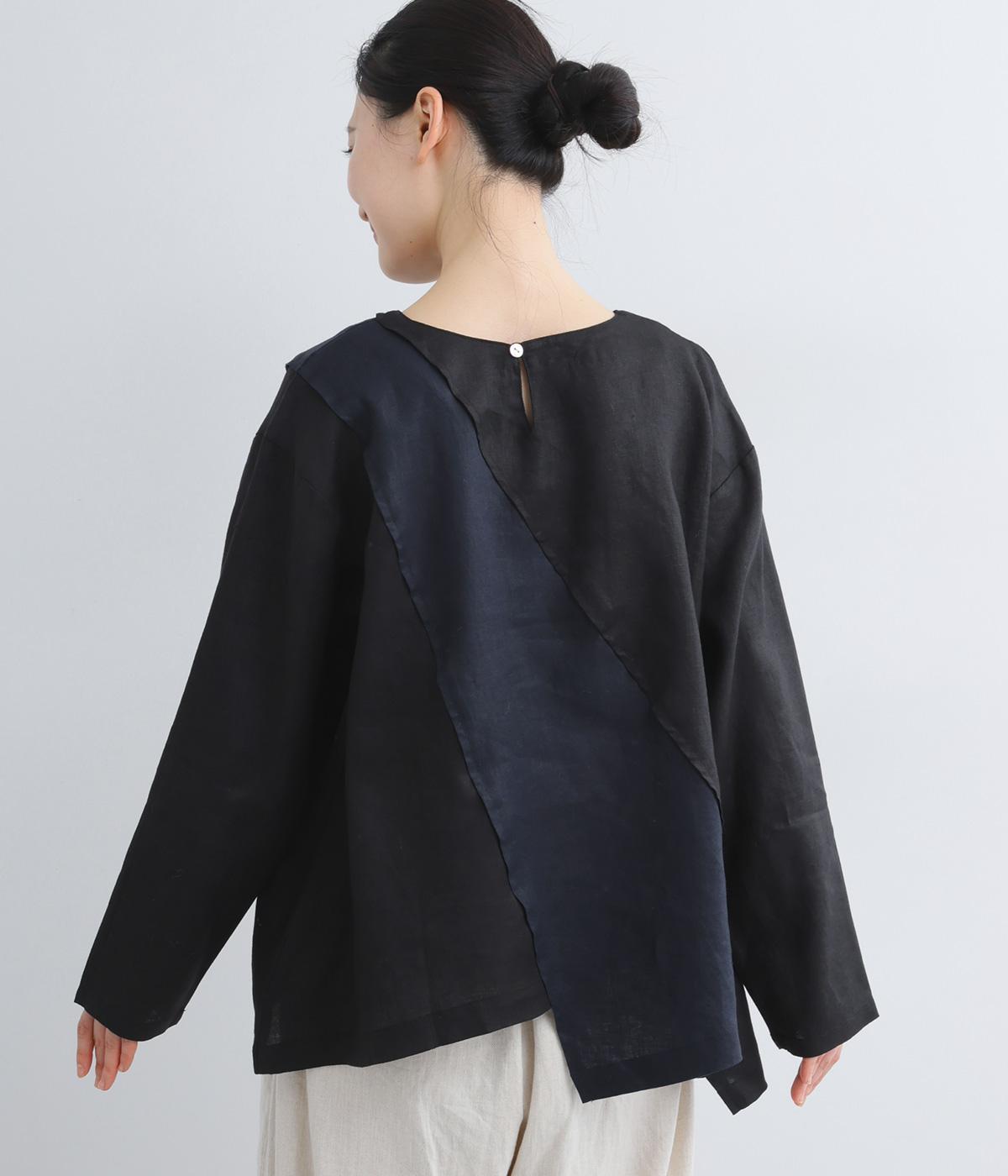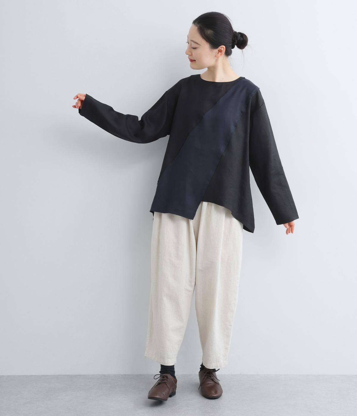前後に斜めに入れた配色切り替えがポイントのプルオーバー。シンプルながらも大胆なデザインが、着こなしをスタイリッシュに導きます。アシンメトリーなヘムラインがシルエットに動きをプラス。後ろネックには着脱をアシストする涙開きをつけました。